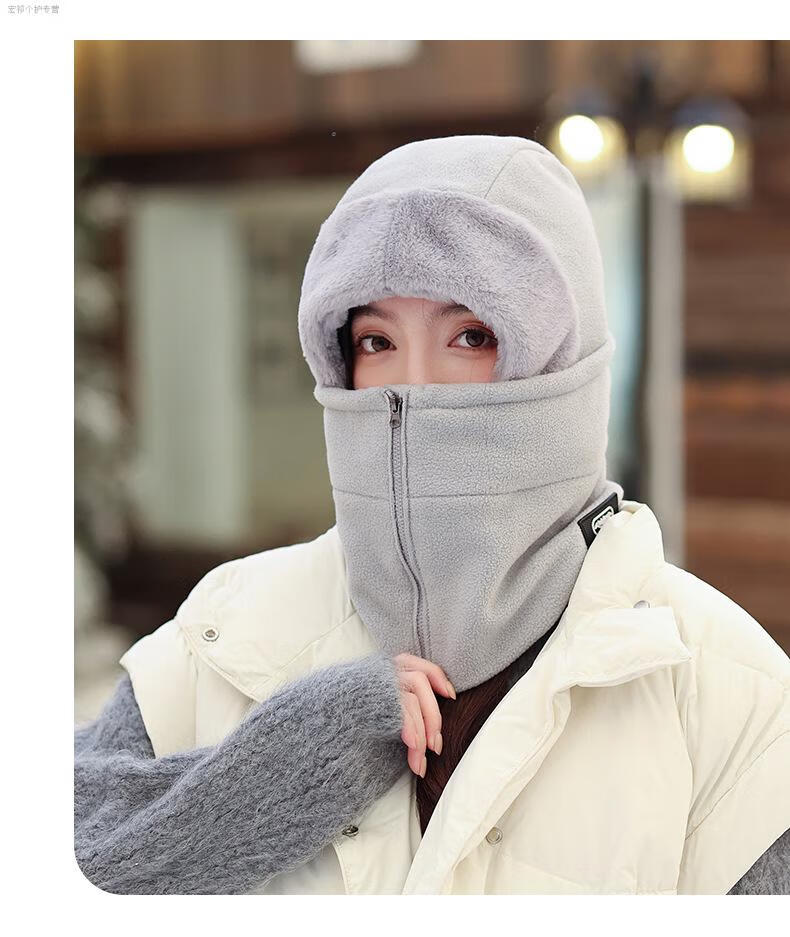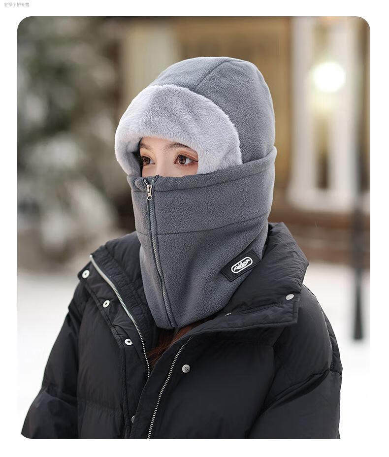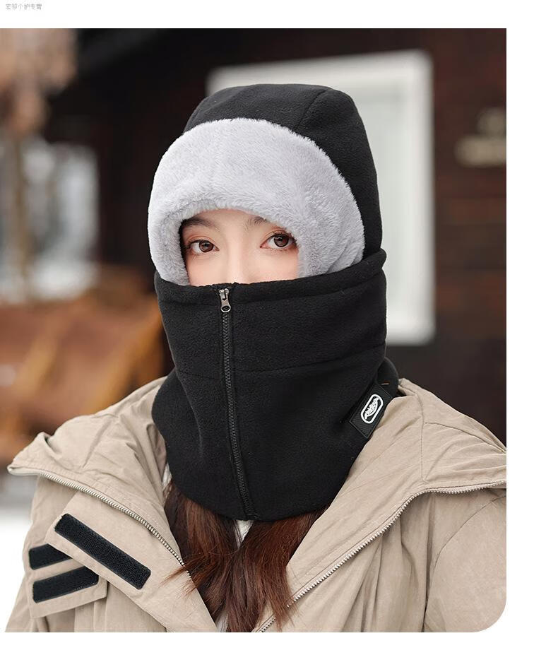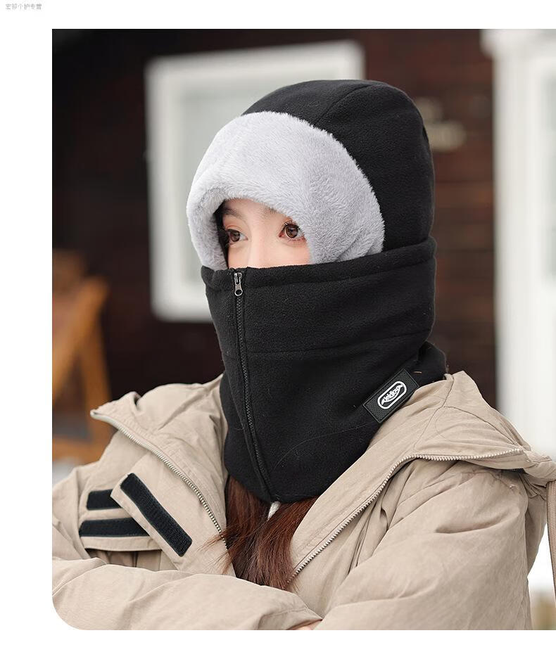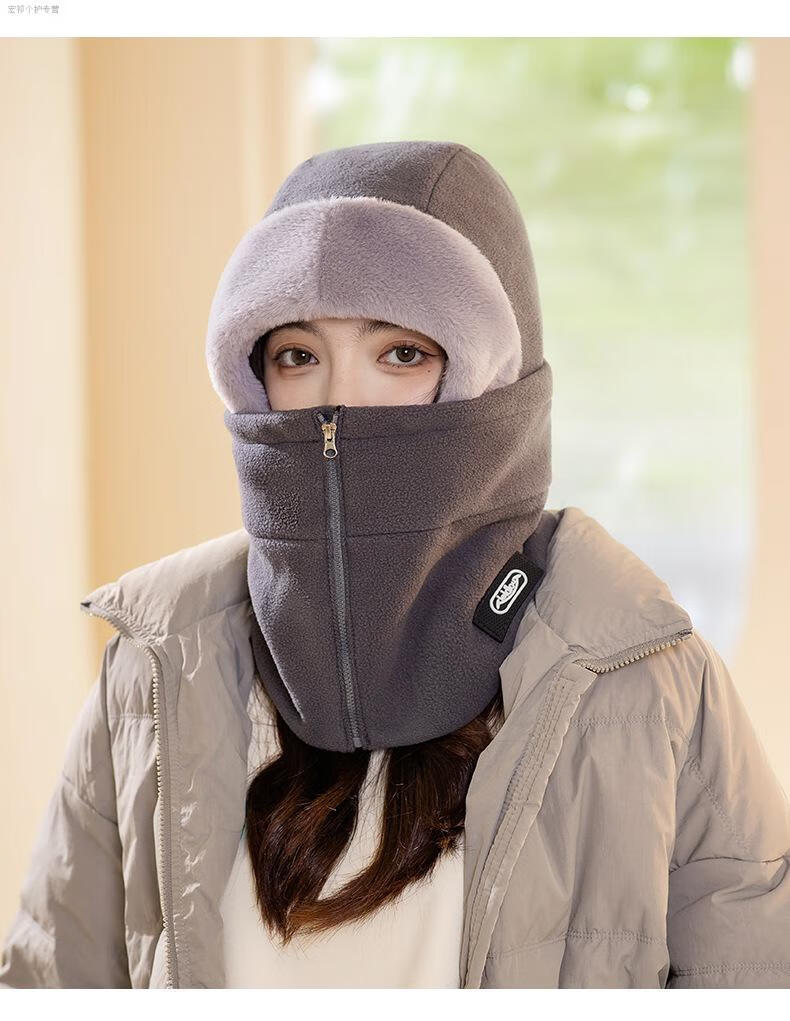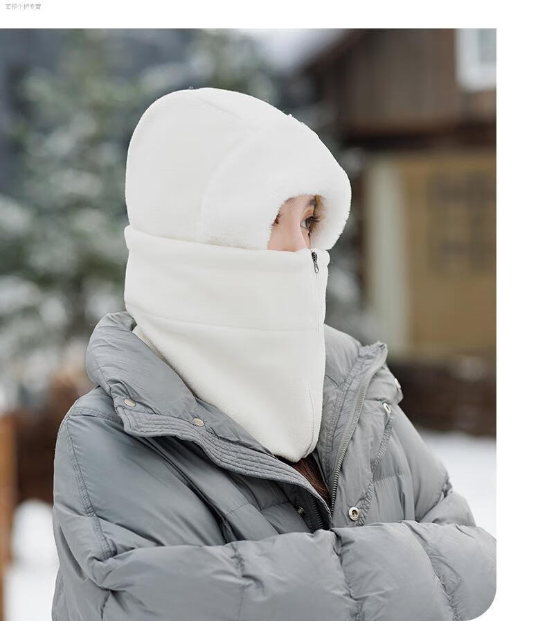 SkingCond Hat Women's Winter Cycling Electric Vehicle Warmth Artifact Windproof Mask Neck Collar One-piece Headgear Ear Protection Lei Feng Hat Men's Khaki Thickened One-size-fits-all