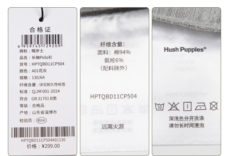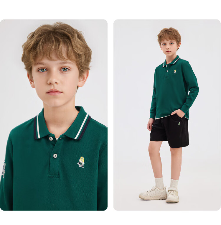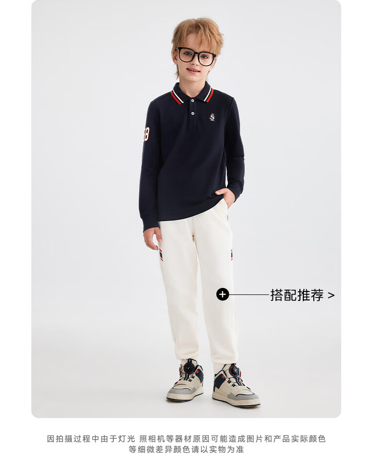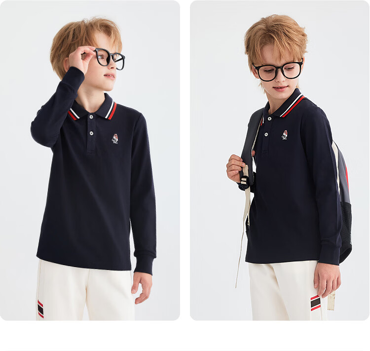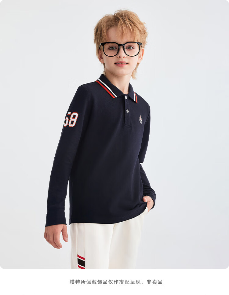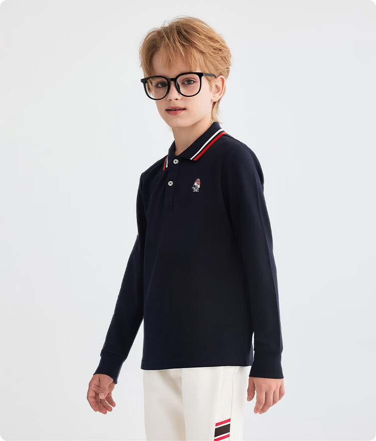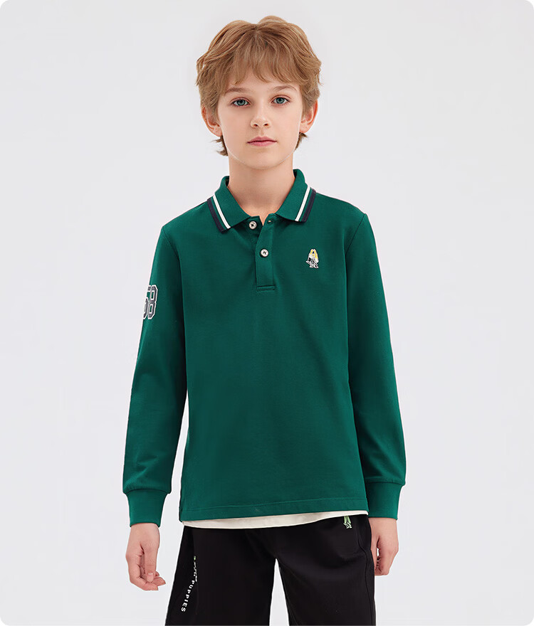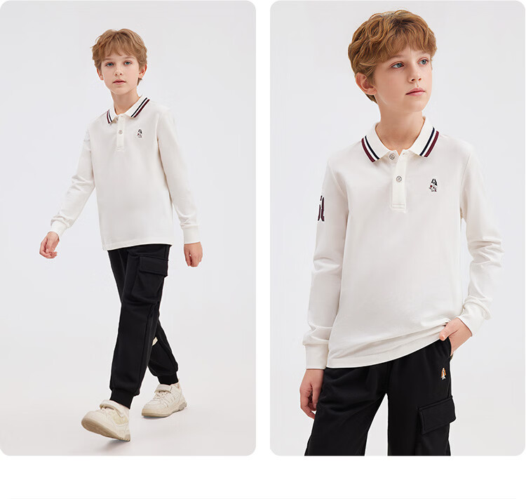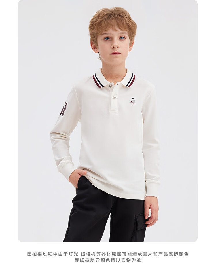 Hush Puppies children's clothing children's boys 2025 autumn new t-shirt simple classic casual versatile digital long-sleeved polo shirt original white 170 cm