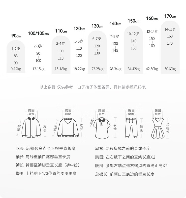 China (cm) 160-165/84-86 165-170 / 88-90 167-172 / 92-96 168-173 / 98-102 170-176 / 106-110