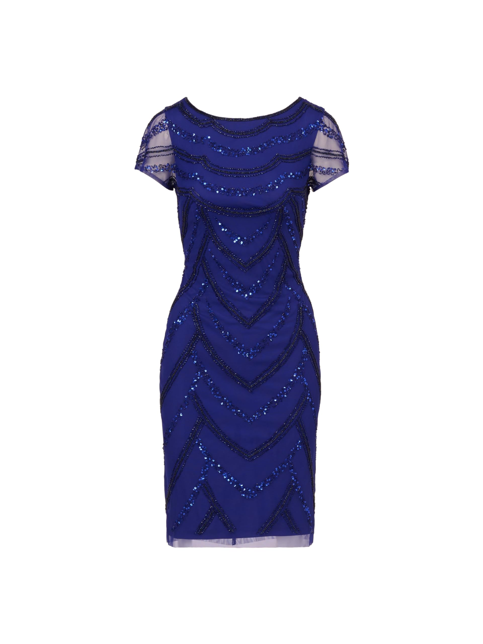 Adrianna Papell Women's Beaded Cocktail Dress Dark Blue Violet 12