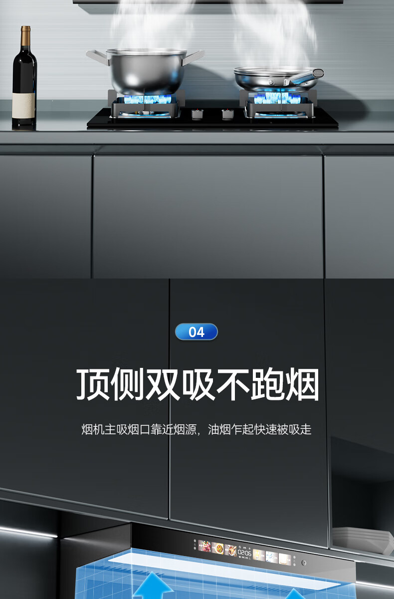 Xinfei range hood door-to-door installation, first-class energy efficiency, large suction power, household top side double suction, large air volume, real wave intelligent control, automatic cleaning range hood, 7-shaped range hood, smoke stove set + 90 wide voice control hood + dazzling fire stove liquefied gas