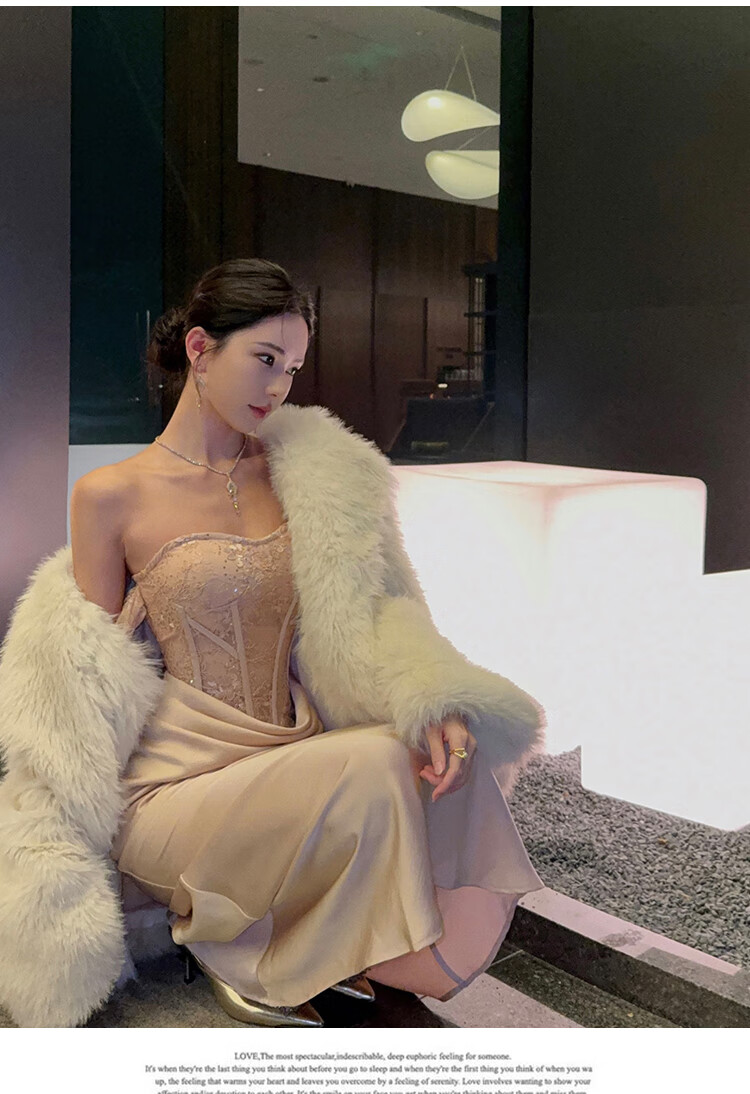 YIOU party host birthday dress design suspender skirt autumn new style tube top long skirt birthday skirt 9662 pink M
