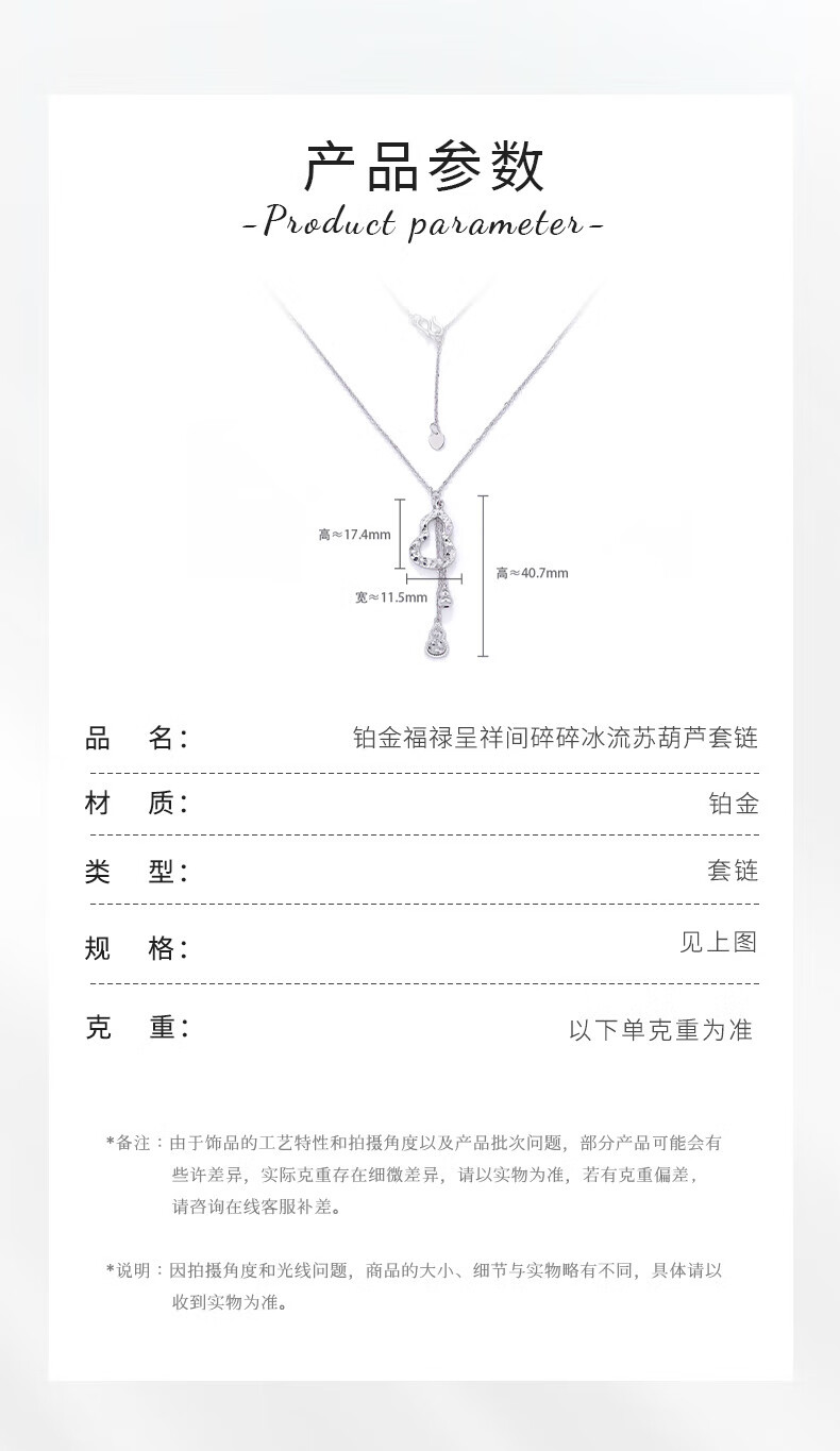 Beijing Gold Trading Center Co., Ltd. Platinum Crushed Ice Gourd Chain/Pearl Letter V/Small Waist/Unicorn/Rotating Vajra/Spirit Snake About 2.26g/Platinum Freshwater Pearl Letter V Chain