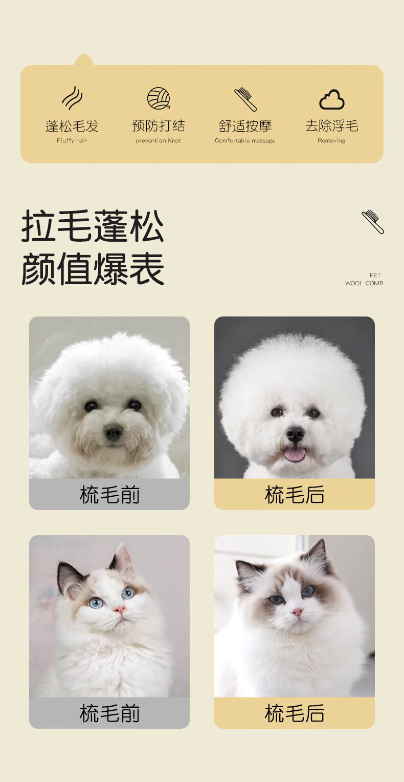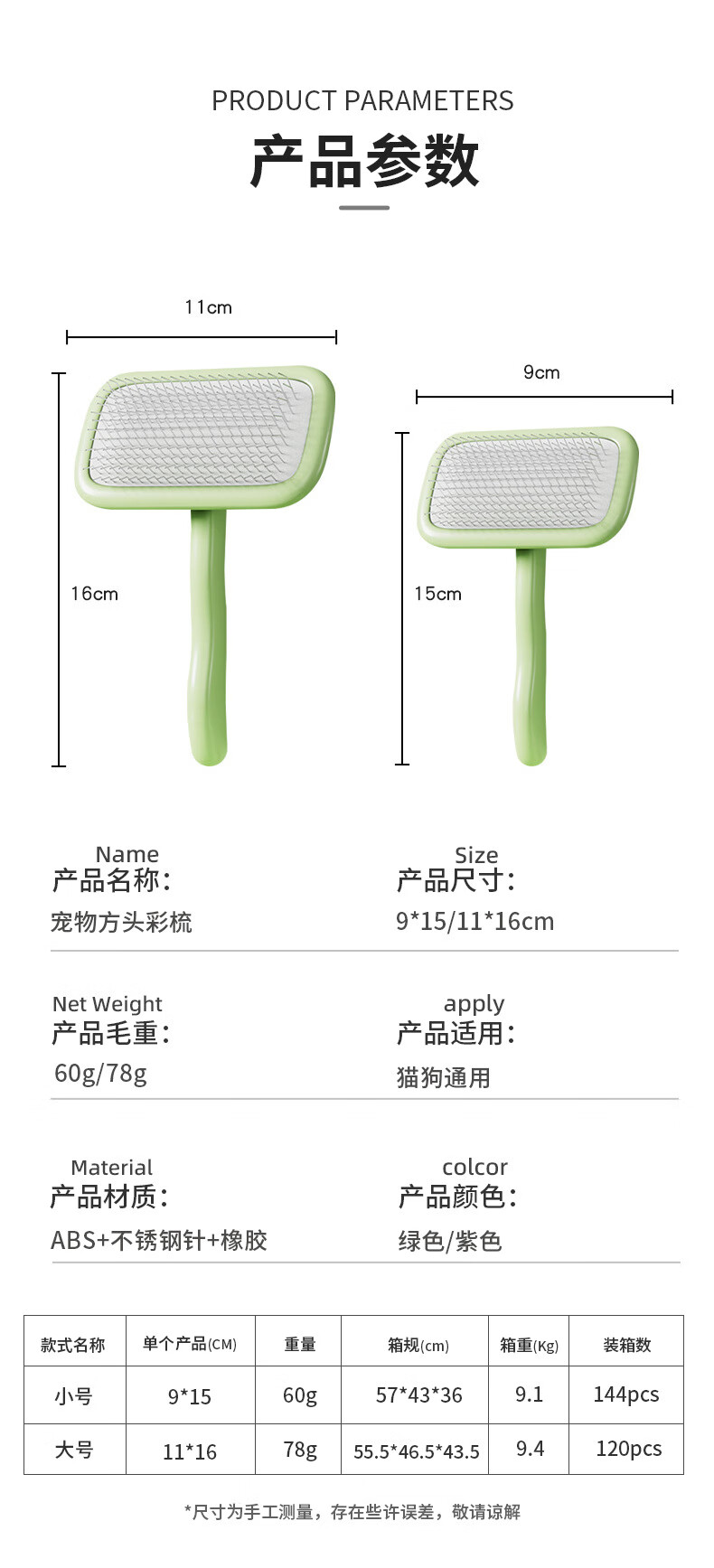 Meowlis pet dog comb Bichon comb special hair comb small dog fluffy hair cleaning beauty needle comb supplies small round head green pet grooming comb