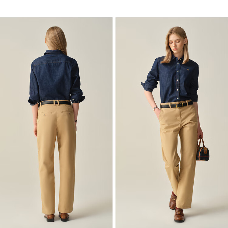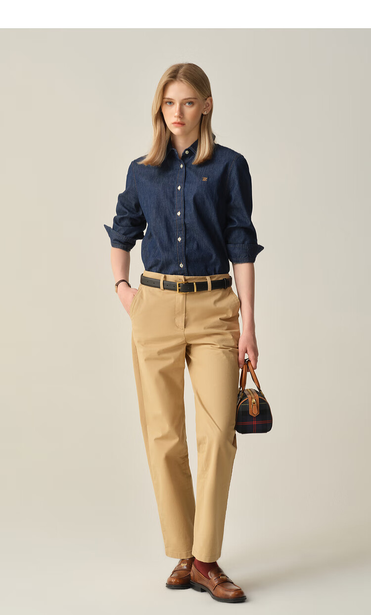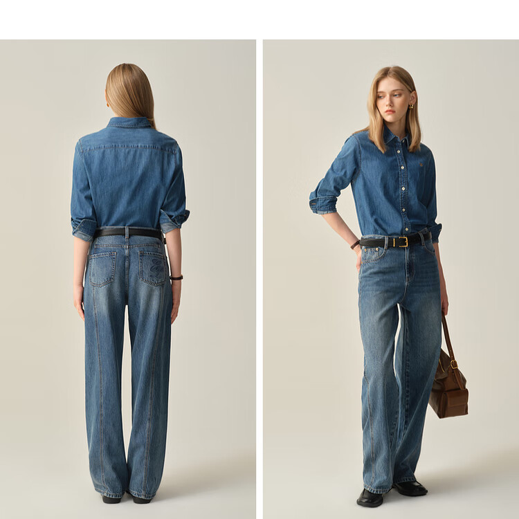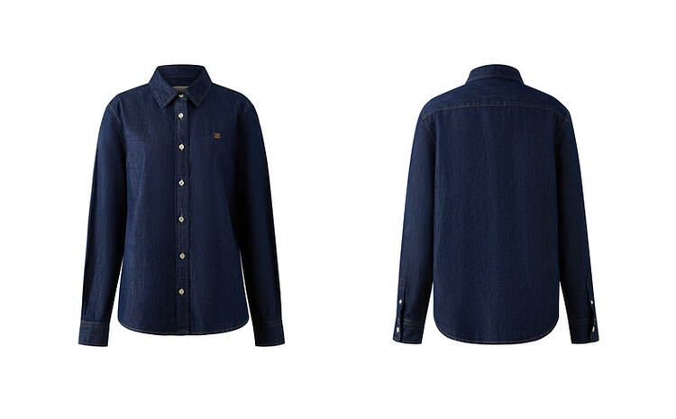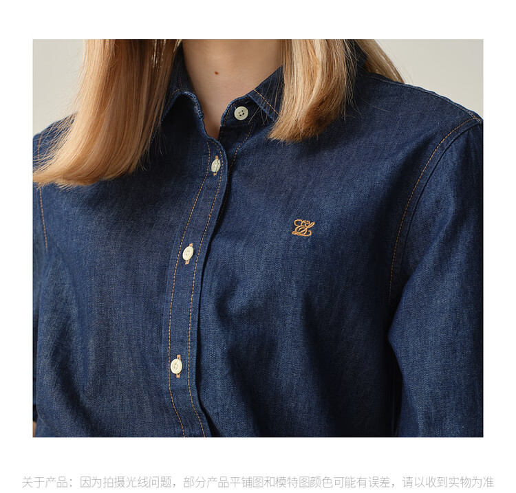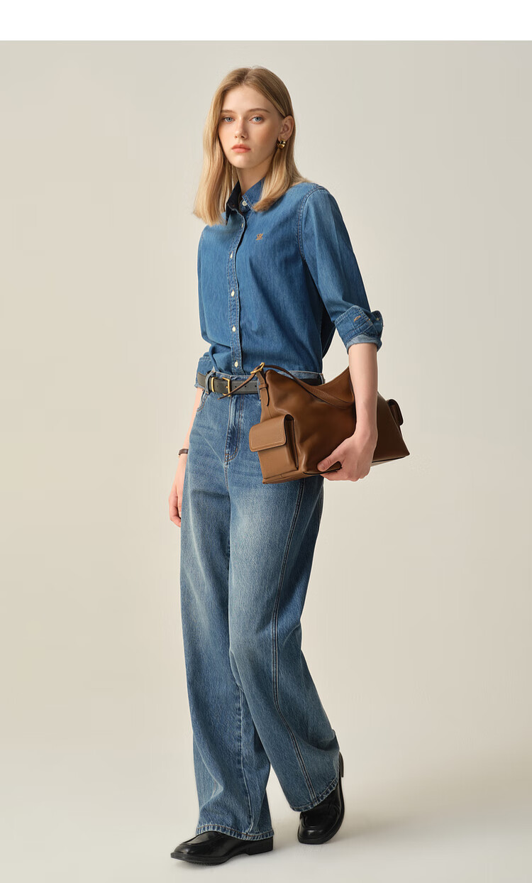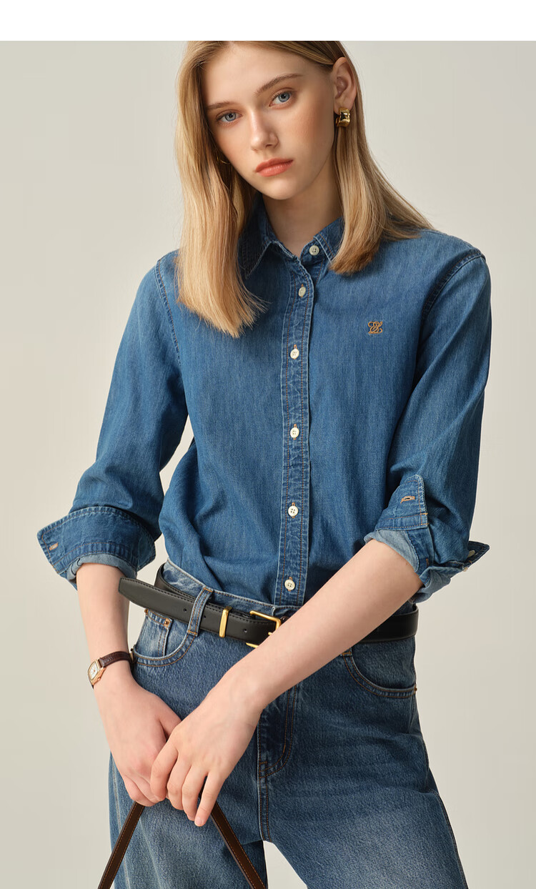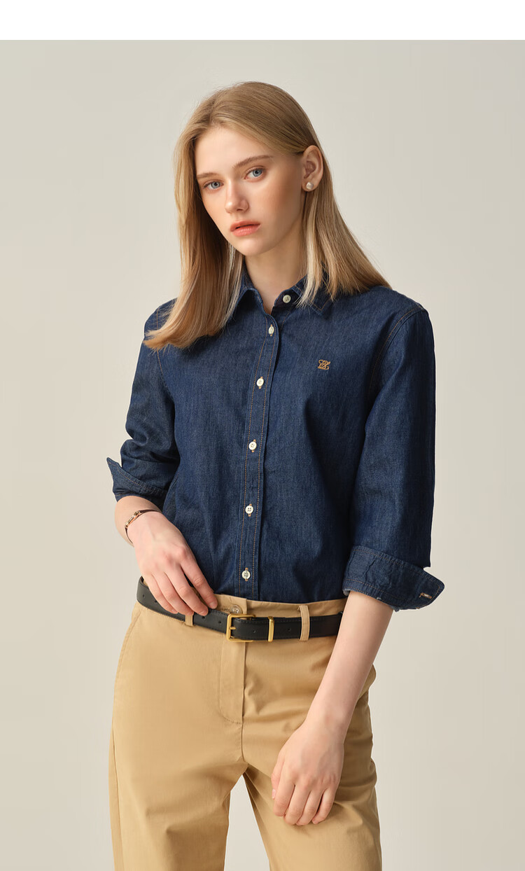 ELAND Shirt Women's Old Money Style Right Shoulder Small Lapel Denim Shirt Top 2025 Autumn Dark Denim Color 160