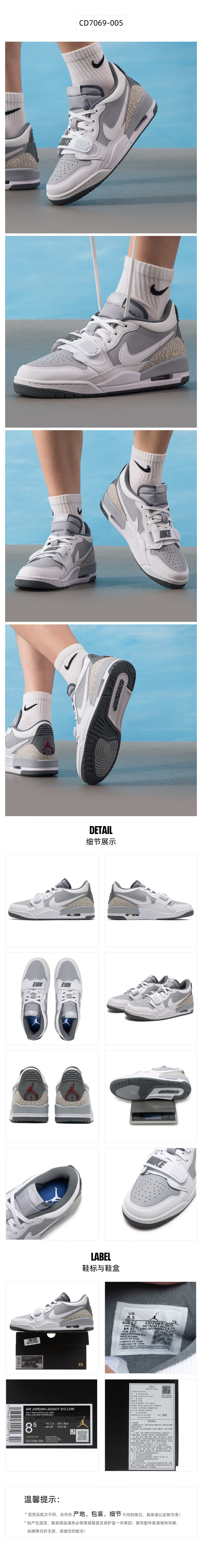 NIKE Men's Sports Shoes AIR JORDAN LEGACY 312 Sports Shoes Wear-Resistant Non-Slip Cushioning Basketball Shoes CD7069-005 40