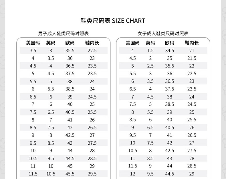 China (cm) 36 - 37 38 - 39 40 - 42 43 - 44 45 - 47