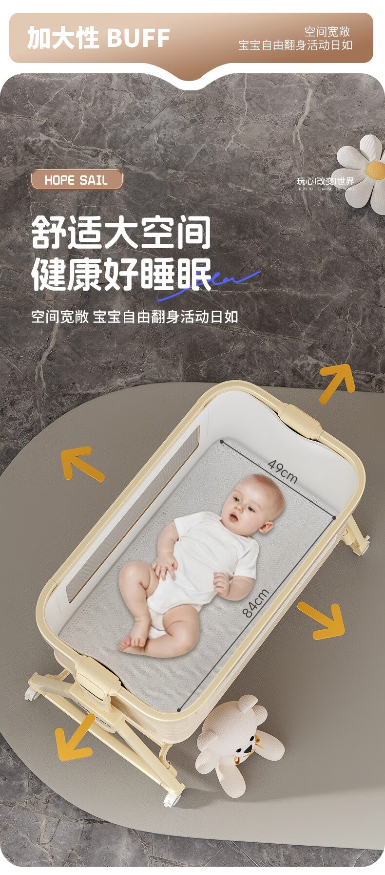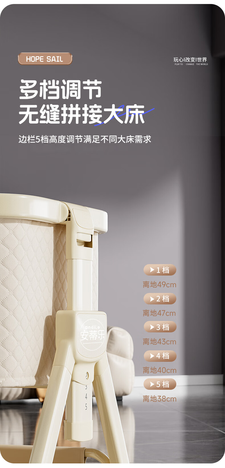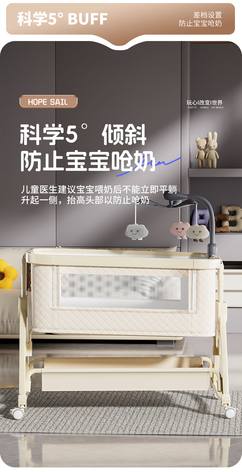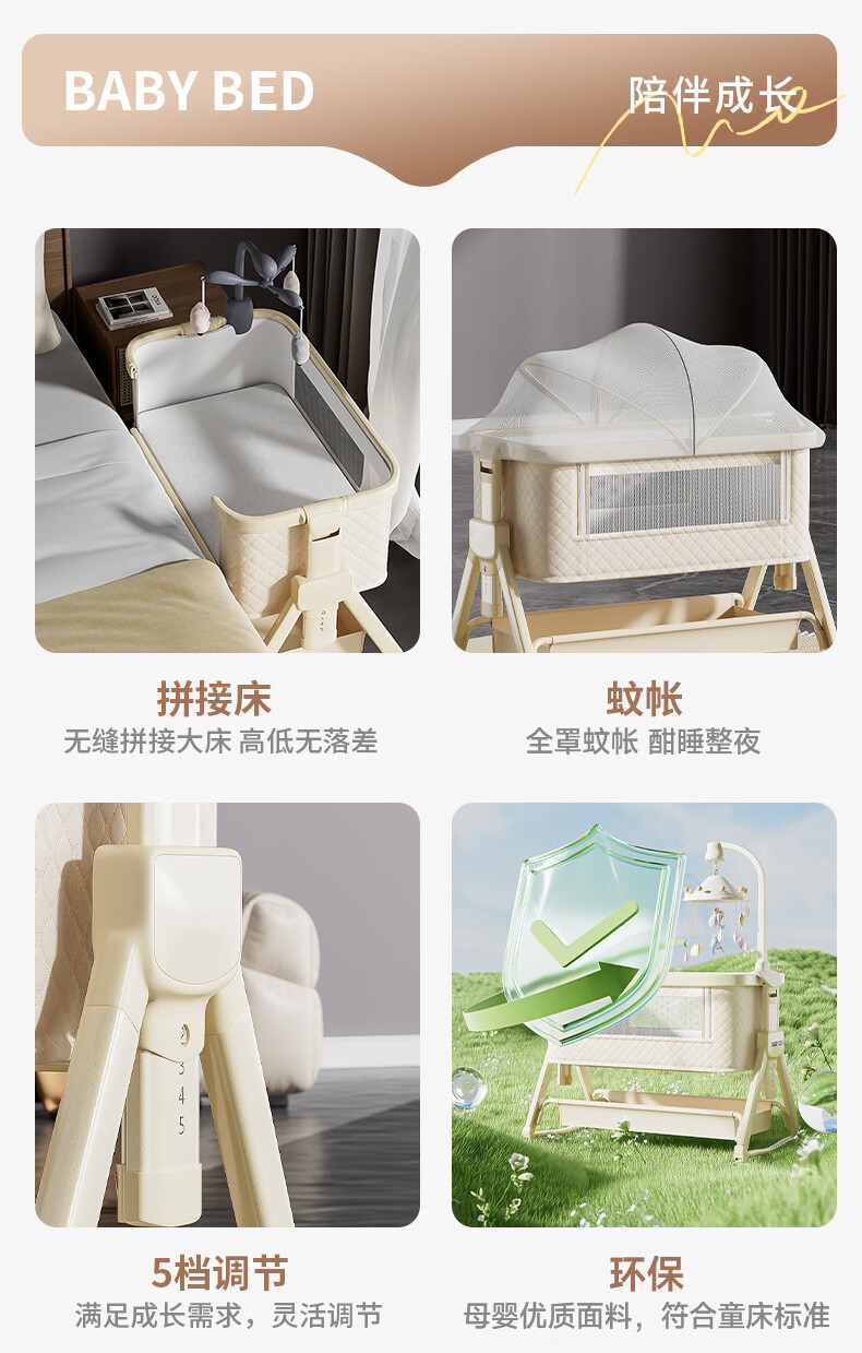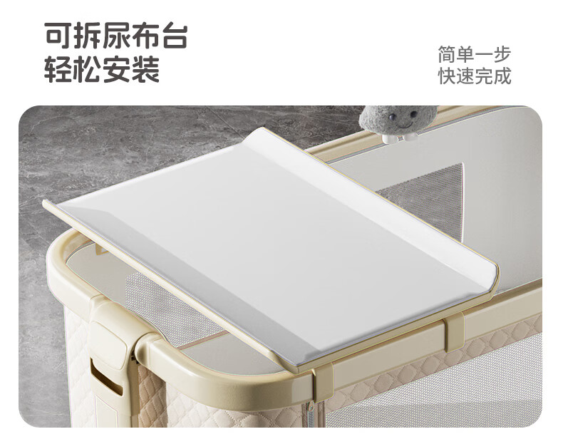 Antile crib multi-functional foldable and splicable 0-3 year old baby rocking bed with changing table Morandi white 4.8CM latex coconut palm pad + mosquito net changing table + bed bell multi-functional crib baby rocking bed spliced large bed