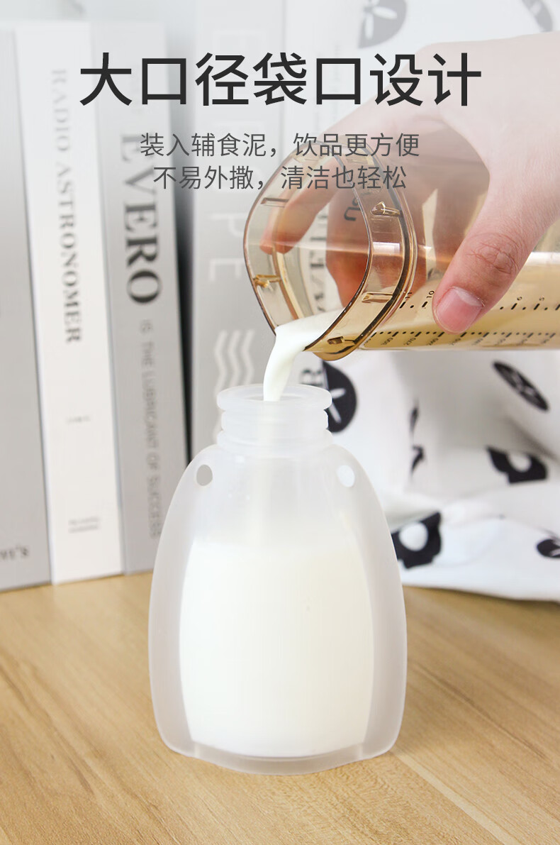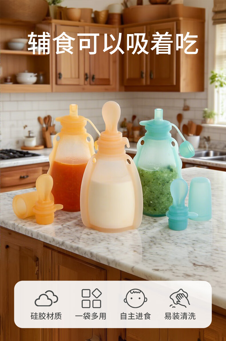 Zuozhixun rice cereal suction bag, puree bag, baby food bag, bottle, silicone soft spoon, baby rice cereal artifact food bag, orange food bag 180ml, with straight drinking head + food spoon + straw, 1 pack