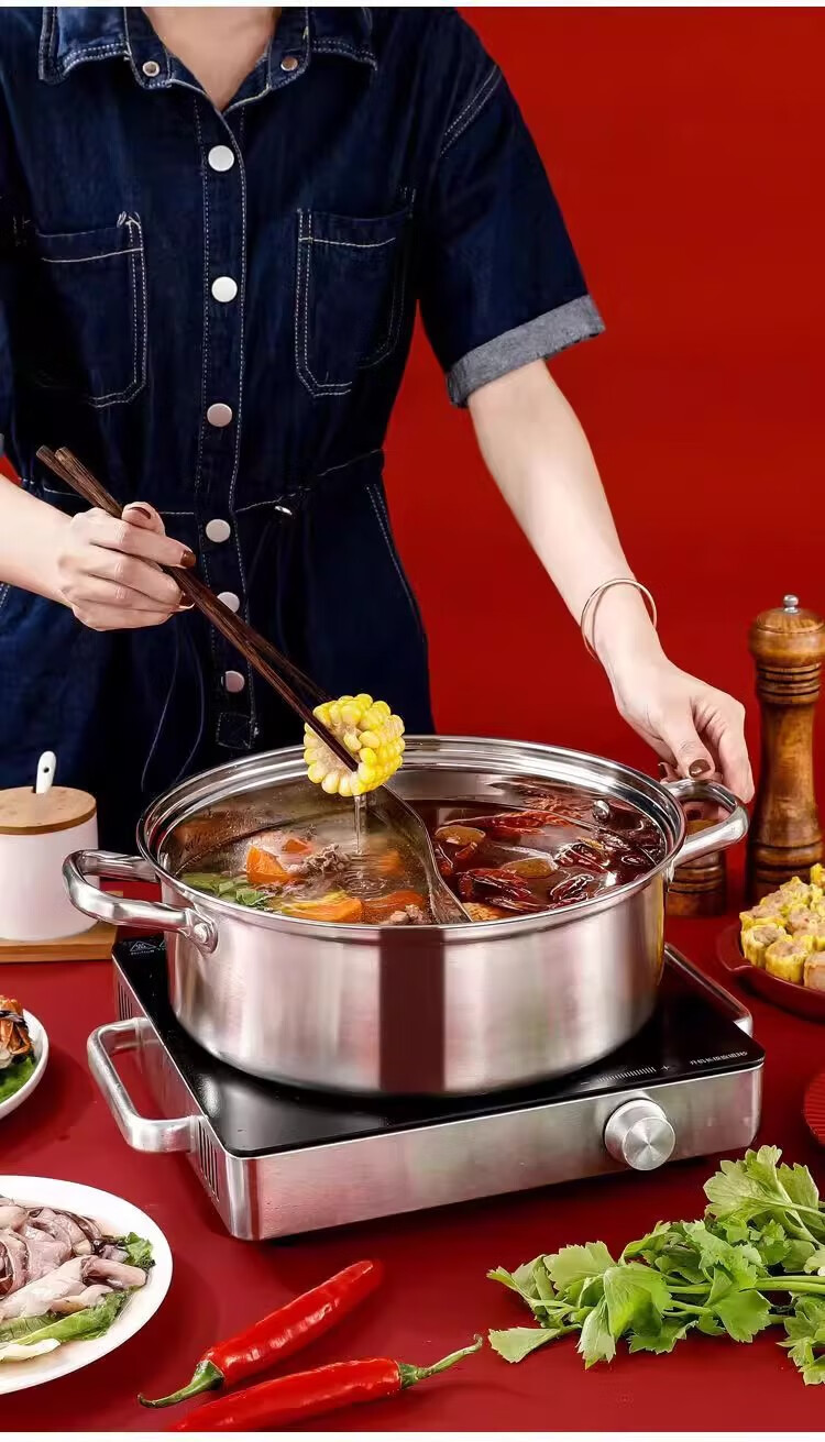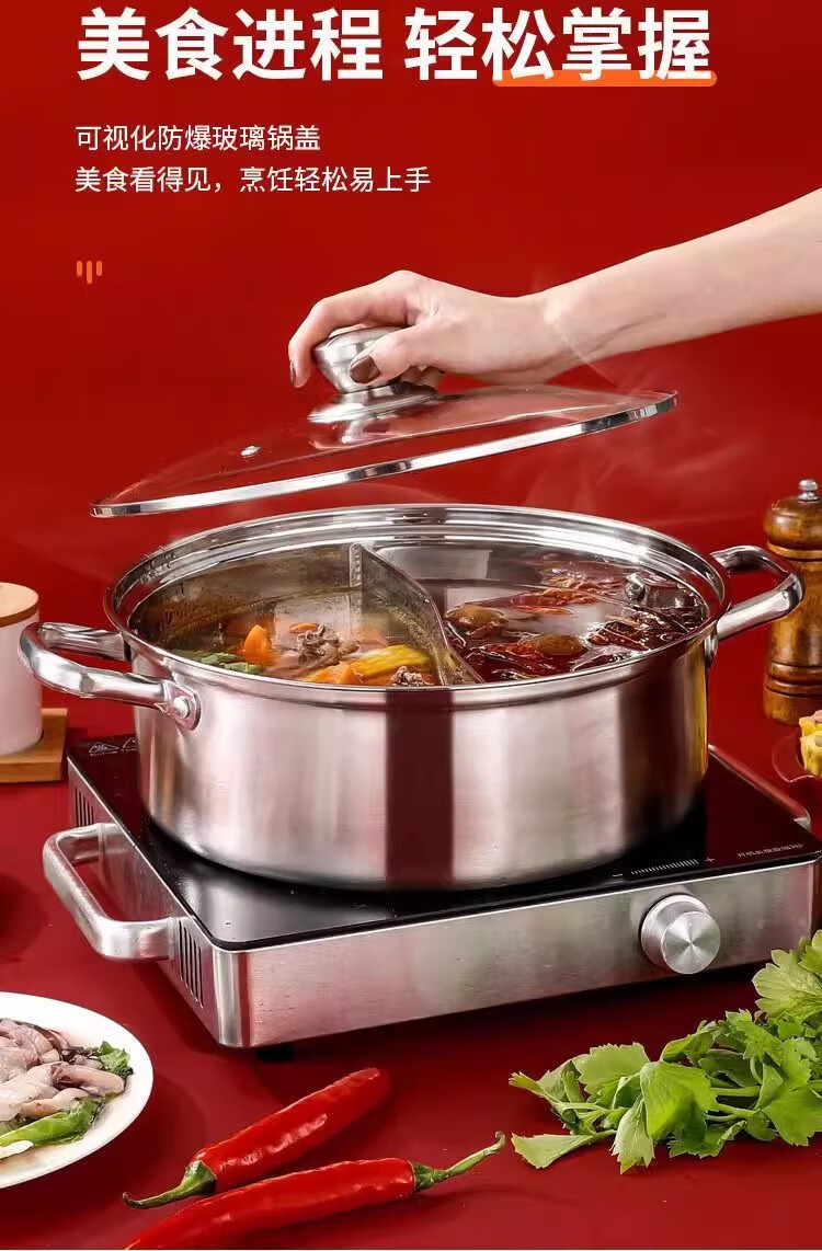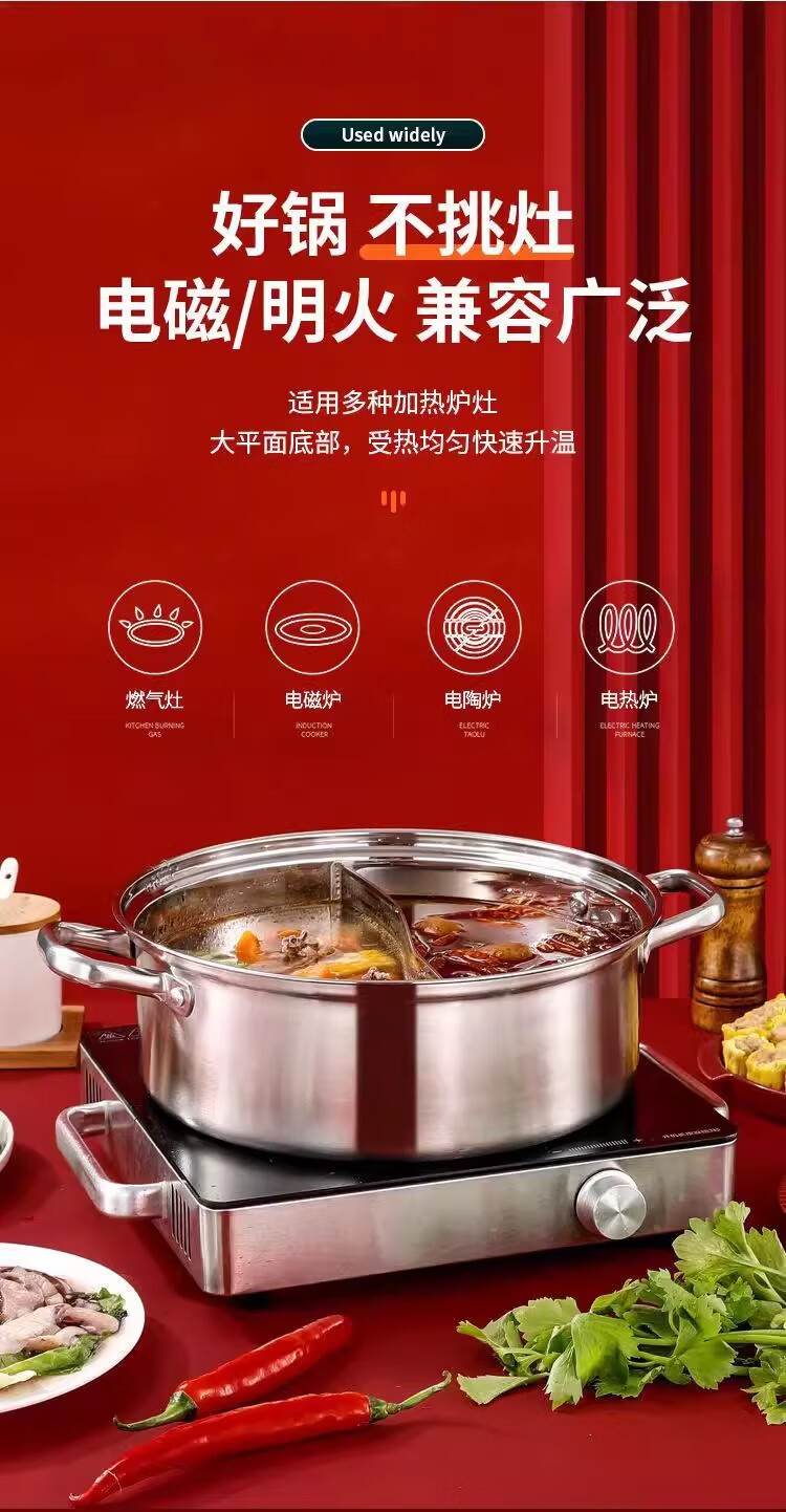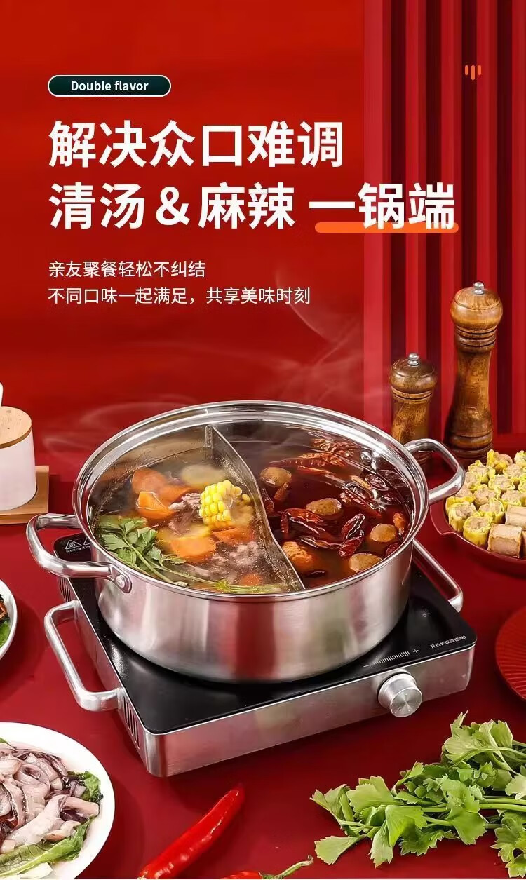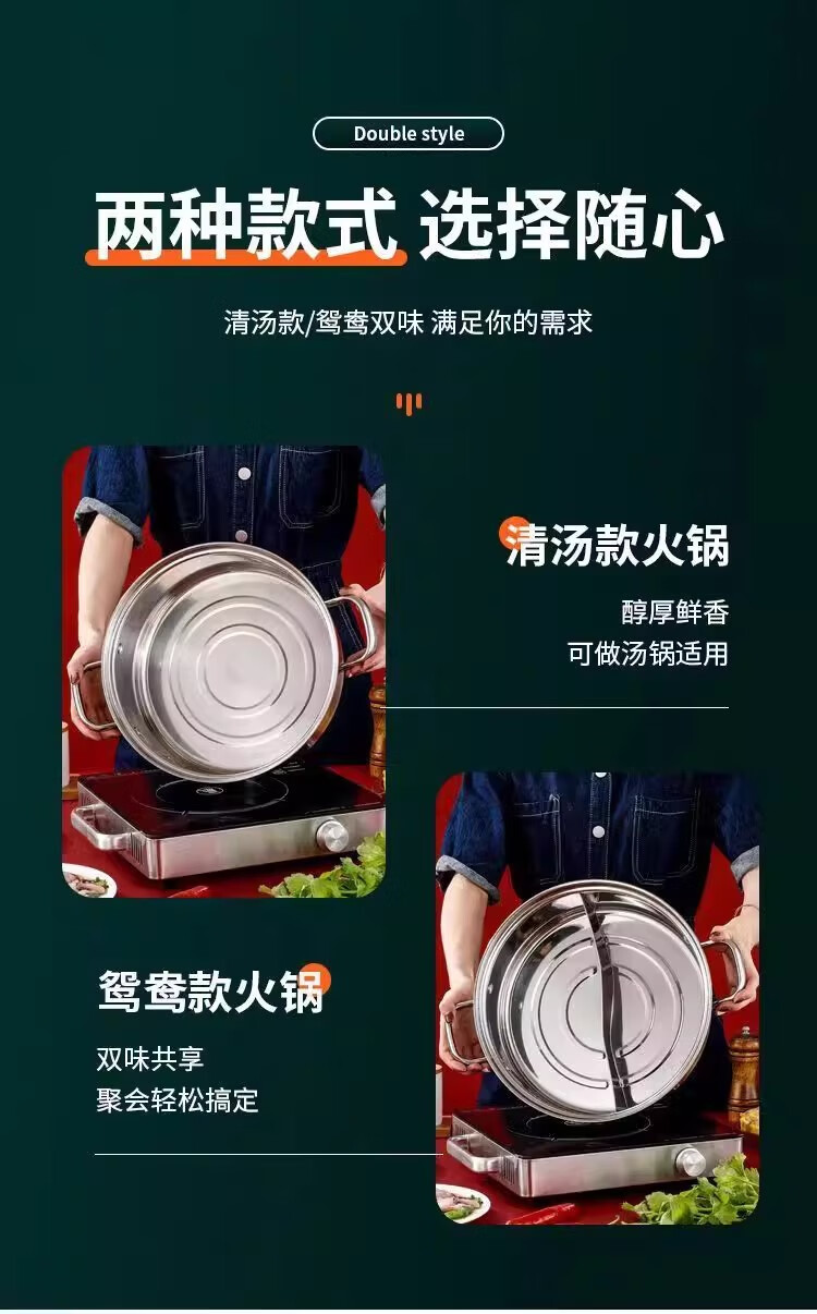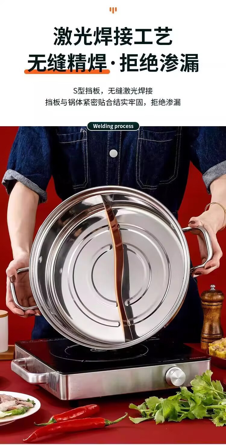 Extra thick 304 stainless steel hot pot Yuanyang pot induction cooker soup pot household outdoor cassette stove special hot pot pot Extra thick 304 Yuanyang pot 32cm