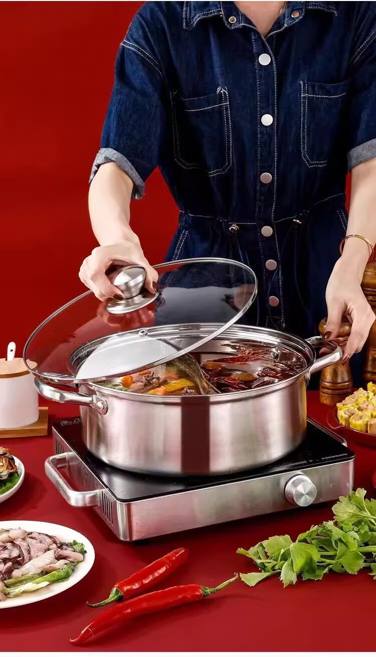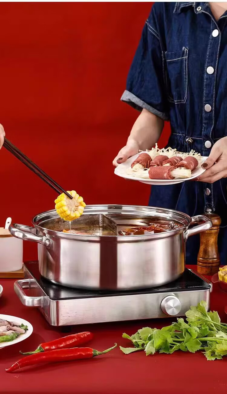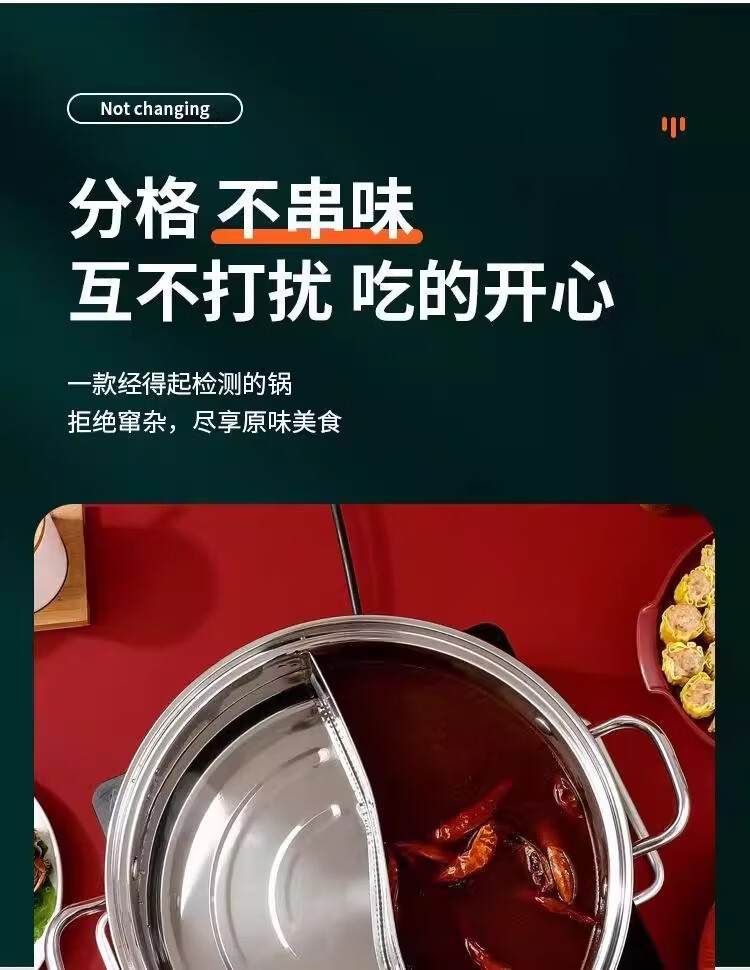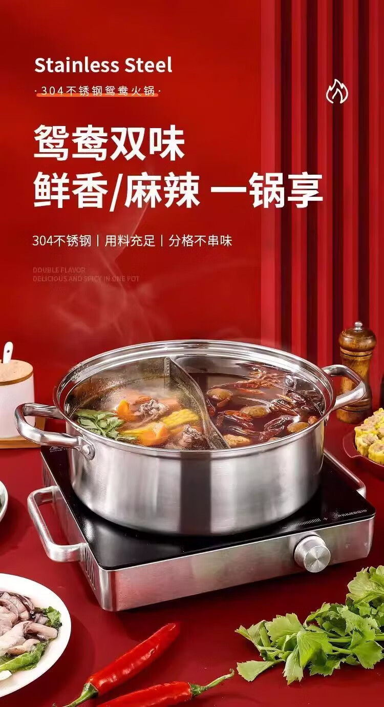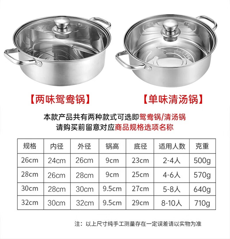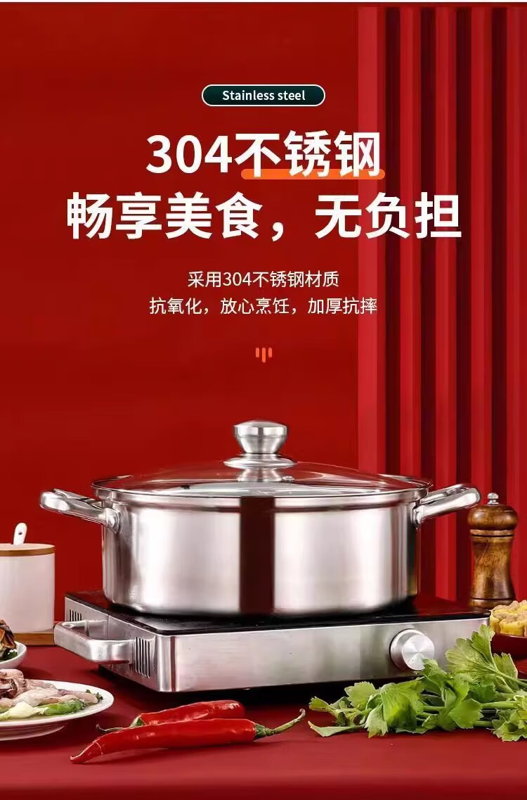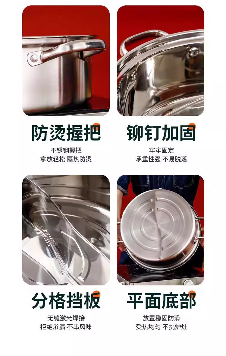 Extra thick 304 stainless steel hot pot Yuanyang pot induction cooker soup pot household outdoor cassette stove special hot pot pot Extra thick 304 Yuanyang pot 32cm