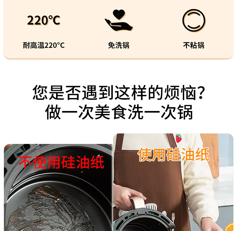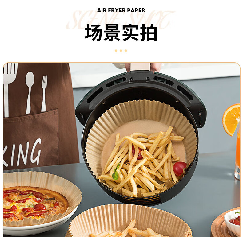 Jidaocook air fryer special paper silicone oil paper plate paper tray round oil-absorbing paper food pad paper 50 pieces retro logs