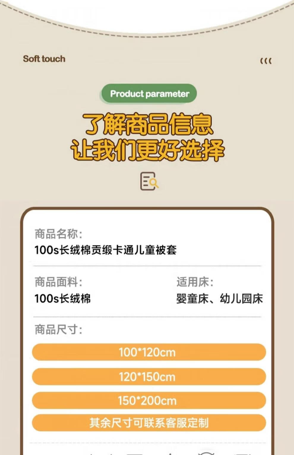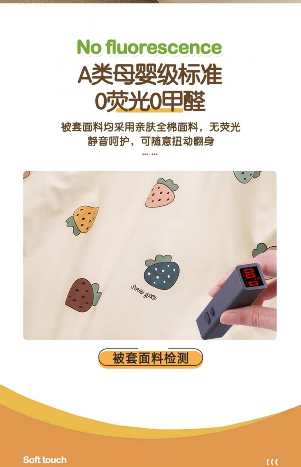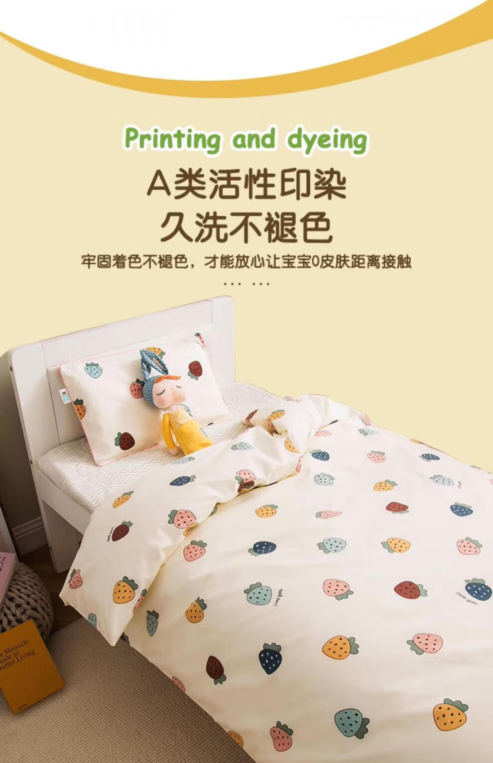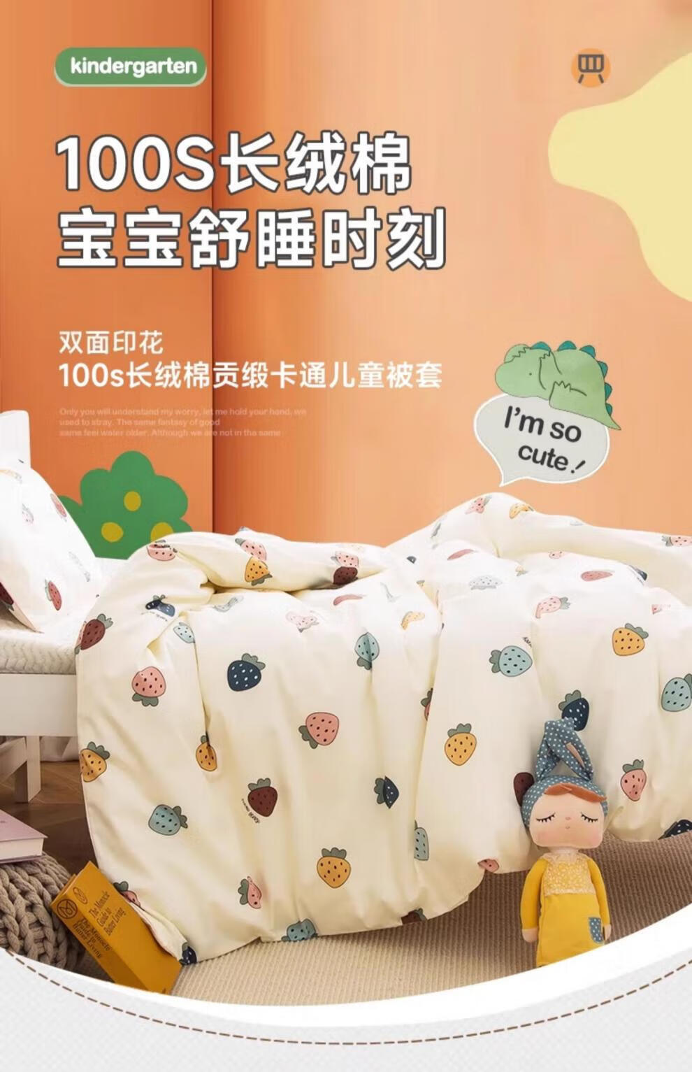 He Jiagong 100-count pure cotton children's quilt cover single piece 1.2m 1.5m bed cotton cartoon baby kindergarten quilt Strawberry Komachi long-staple cotton soft and breathable 100-count cotton children's quilt cover 60cm*120cm