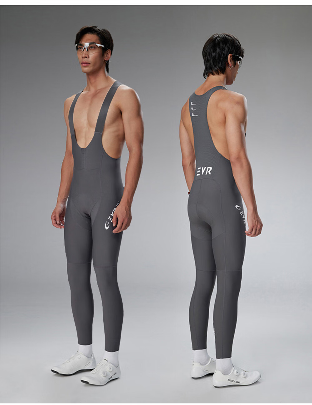 EVR autumn and winter double arrow cycling pants men's fleece suspender trousers fleece warm road bicycle Ascent series standard speed-dark gray-fleece XL