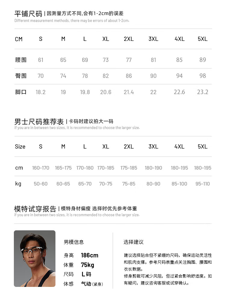 China (cm) 160-165/84-86 165-170 / 88-90 167-172 / 92-96 168-173 / 98-102 170-176 / 106-110