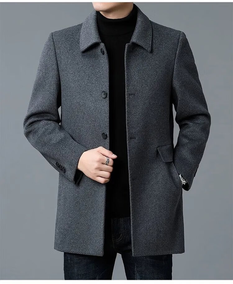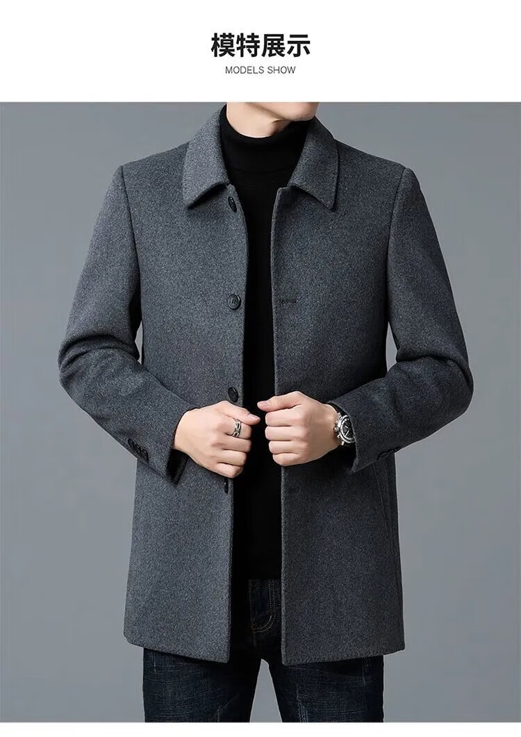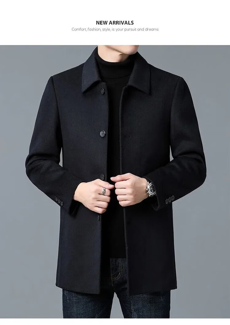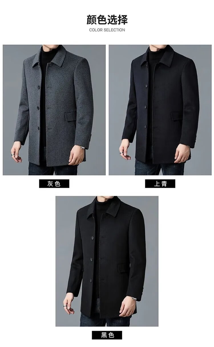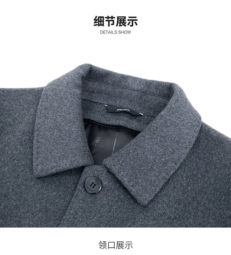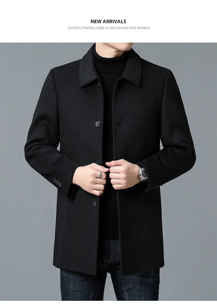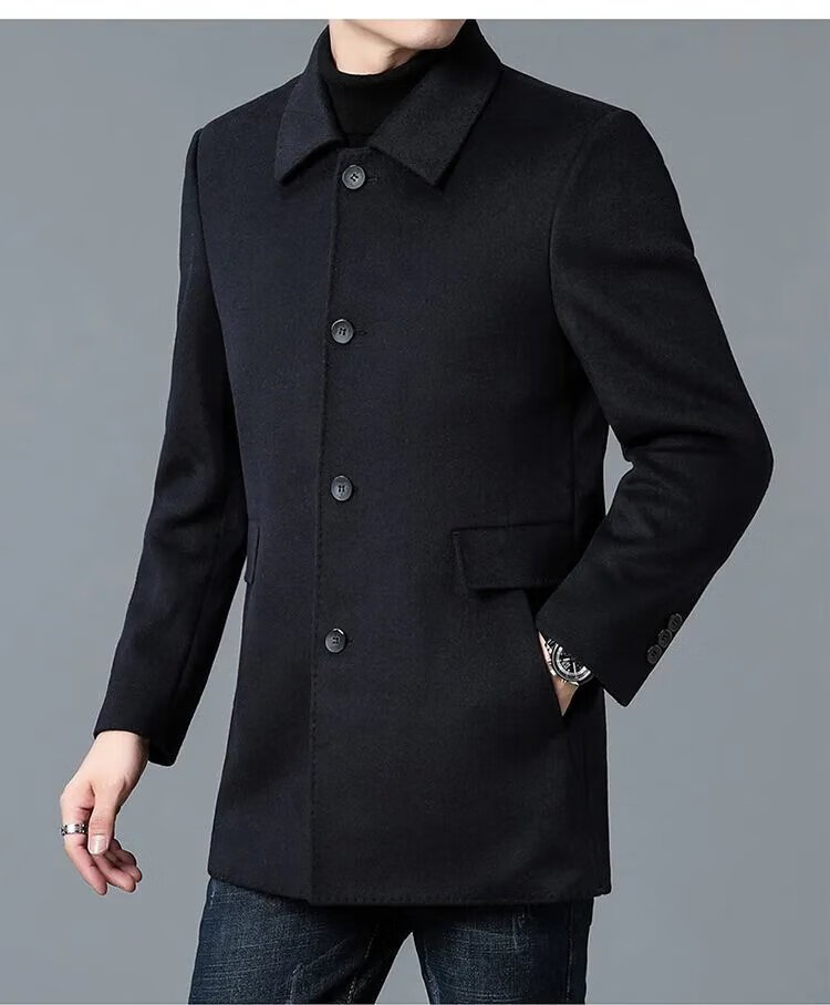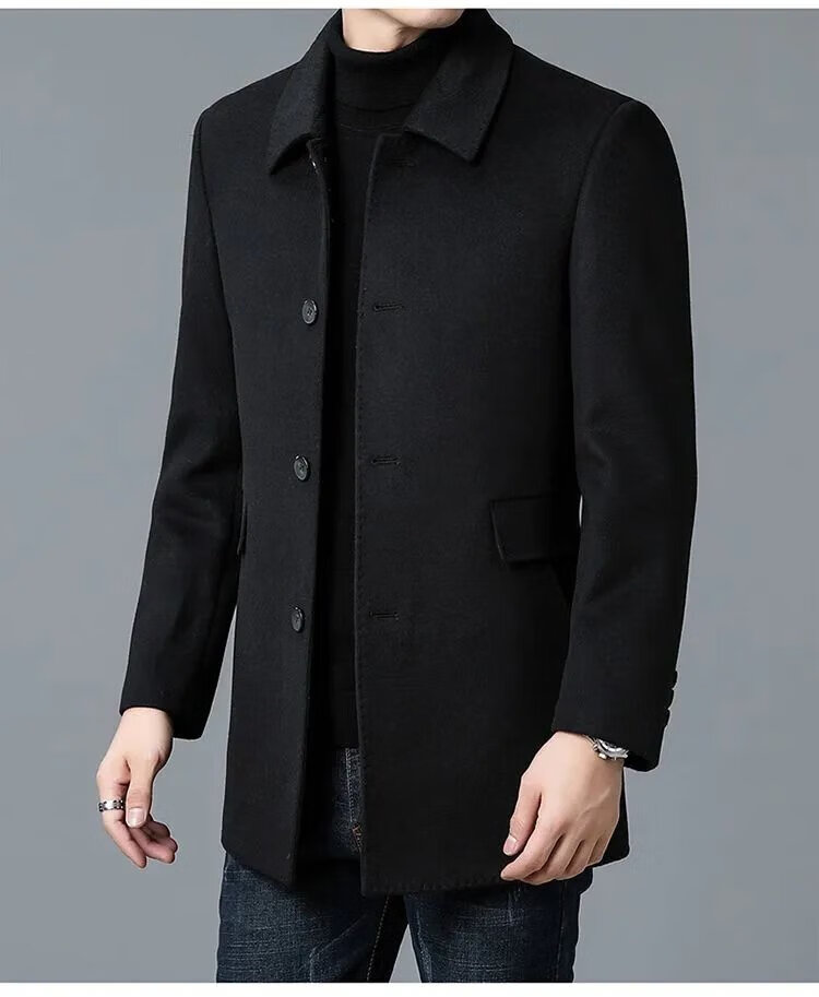 Pierre Cardin high-end Korean style coat men's medium-length thickened double-sided woolen windbreaker daddy winter lapel coat black XL 130-150Jin Jin equals 0.5 kg