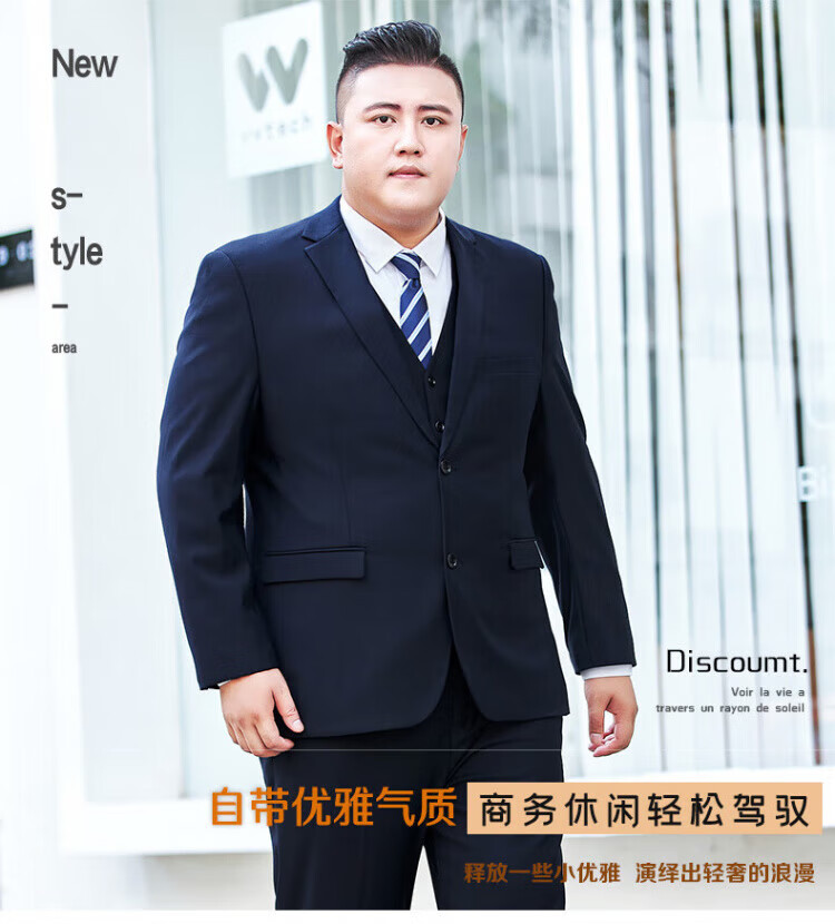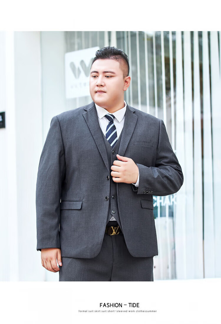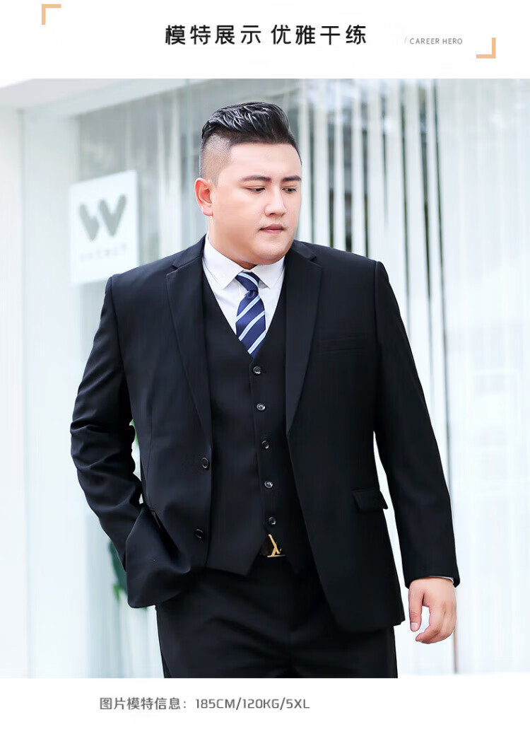 ROMON Plus Size Men's Suit Suit Plus Fat Fat Man Business Formal Wear Professional Loose Suit Jacket Wedding Dress Double Button Black Single Suit XL