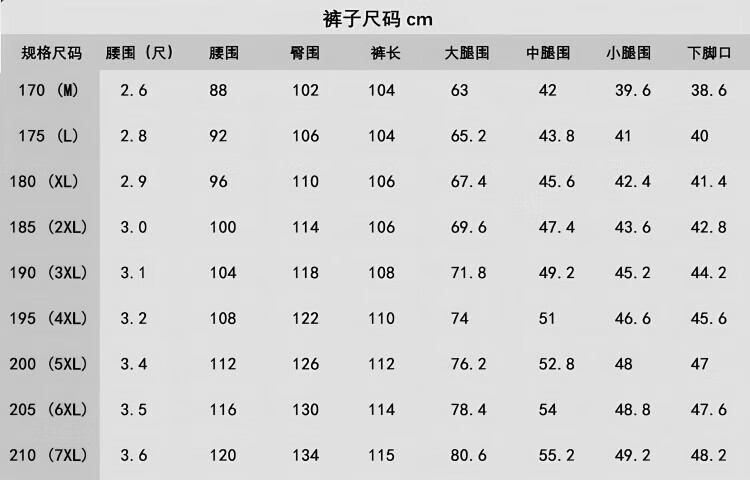 Outseam (cm) 99 cm 101.5 cm 104 cm 106.5 cm 109 cm