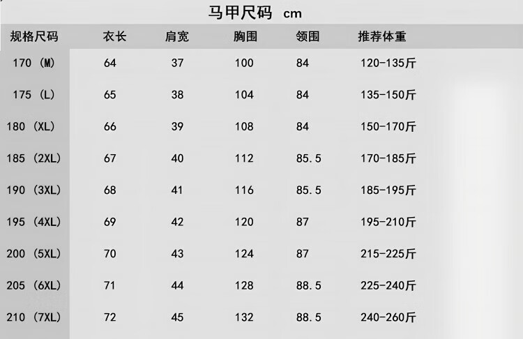 China (cm) 165 / 88-90 170 / 96-98 175 / 108-110 180 / 118-122 185 / 126-130