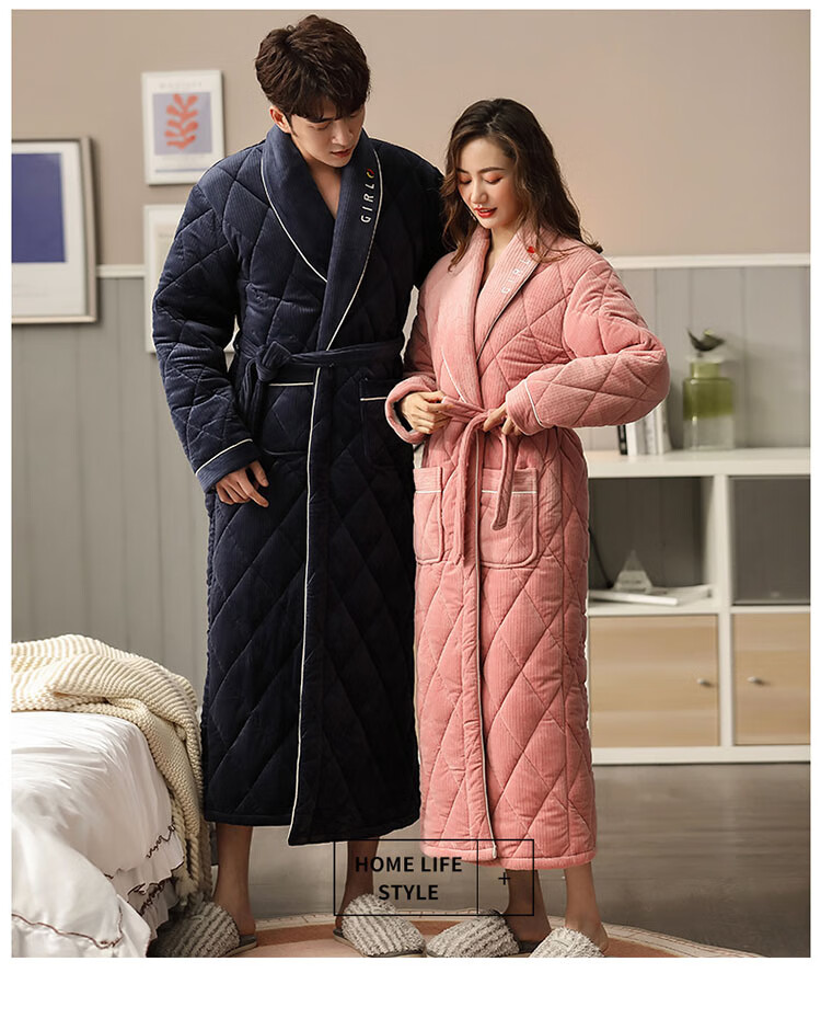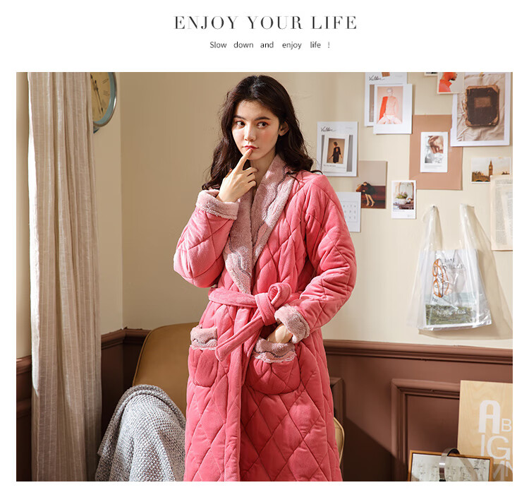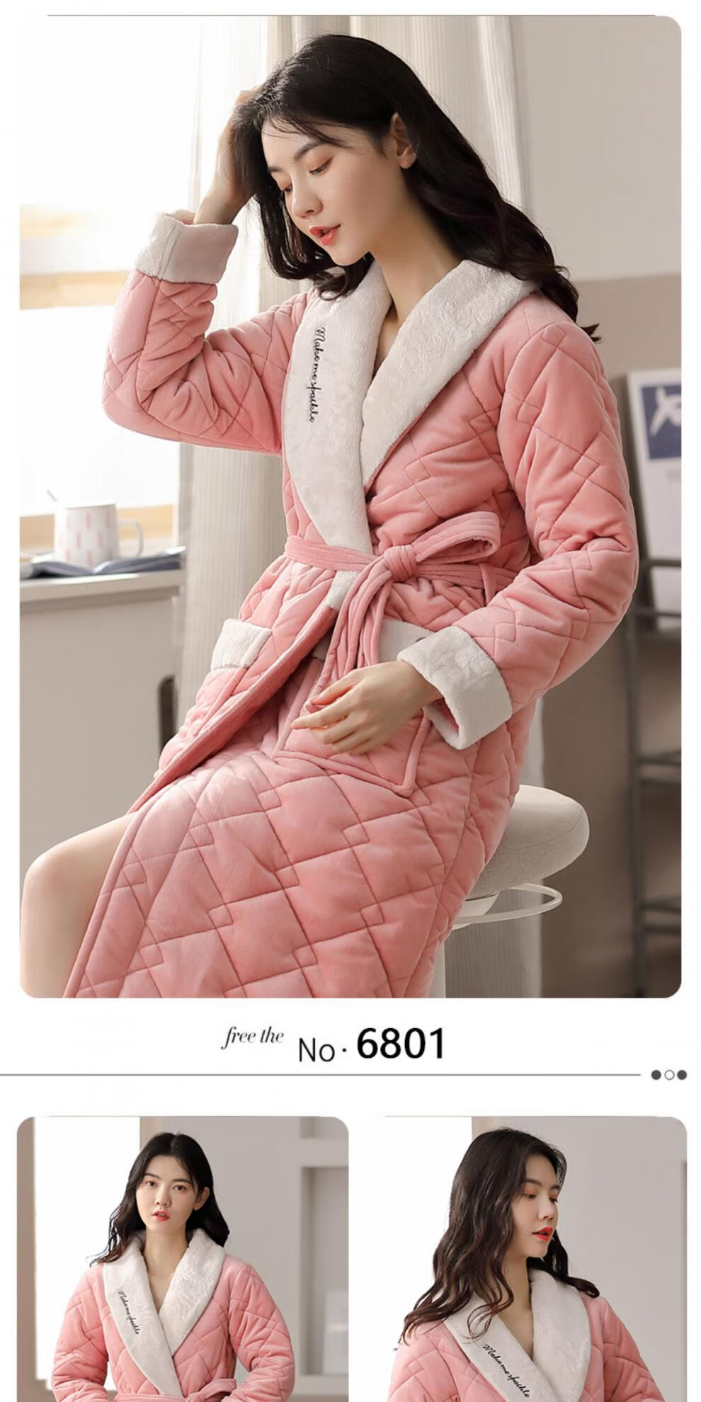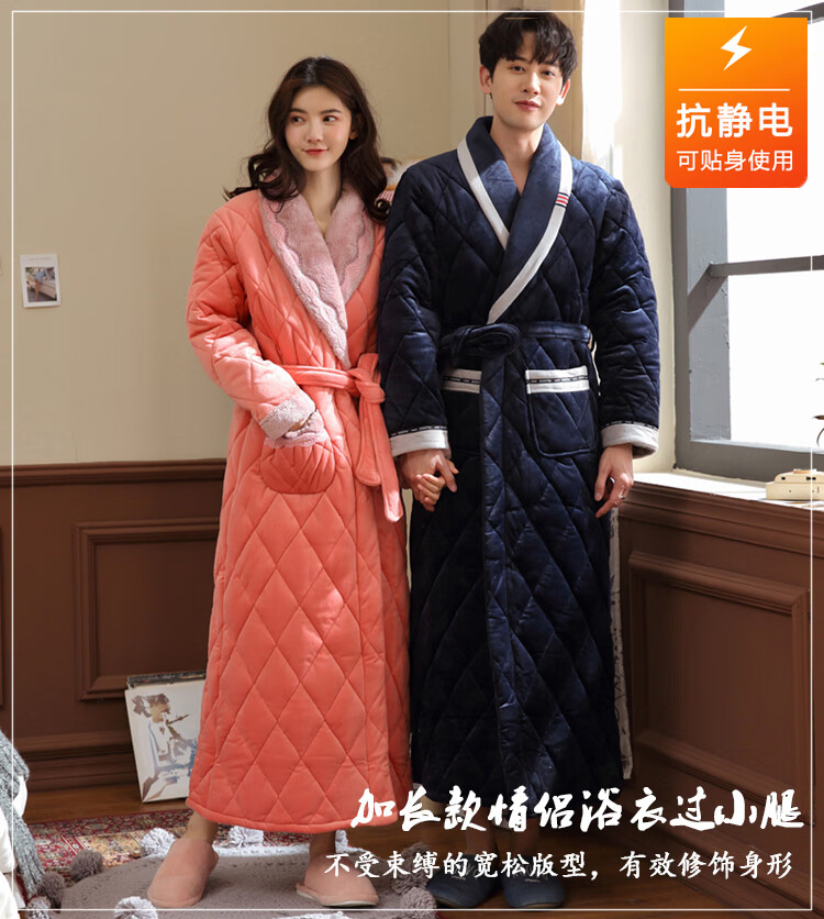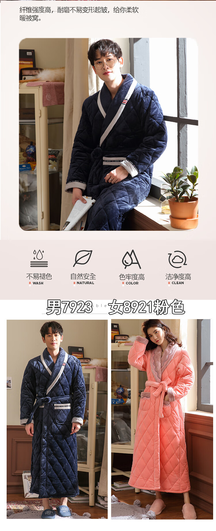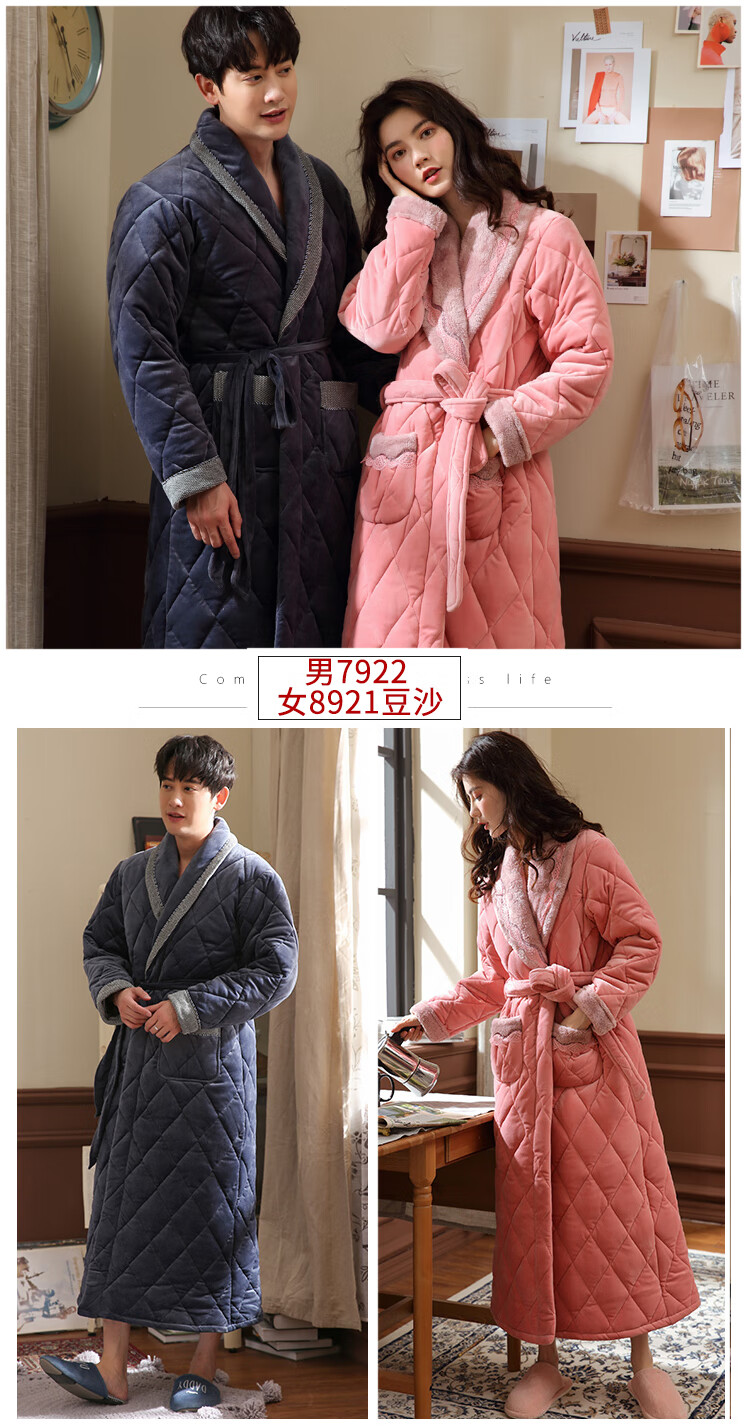 Yalujia Cotton Nightgown Women's Autumn and Winter Thickened and Velvet 2025 New Couple's Pajamas Winter Men's Coral Velvet Bathrobe 8921 Pink XL Three-Layer Long Warm