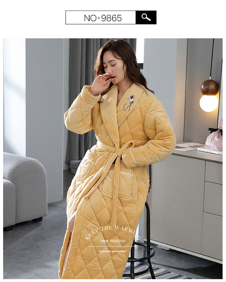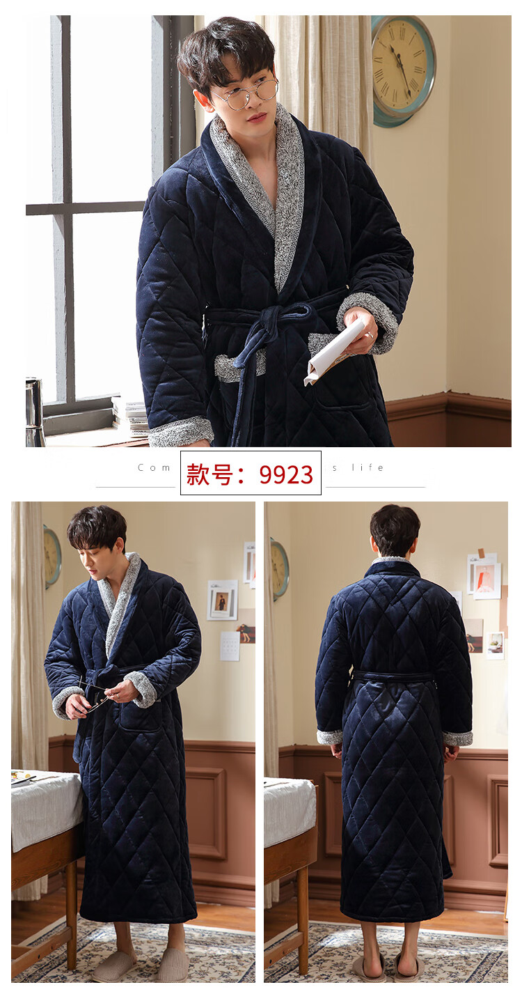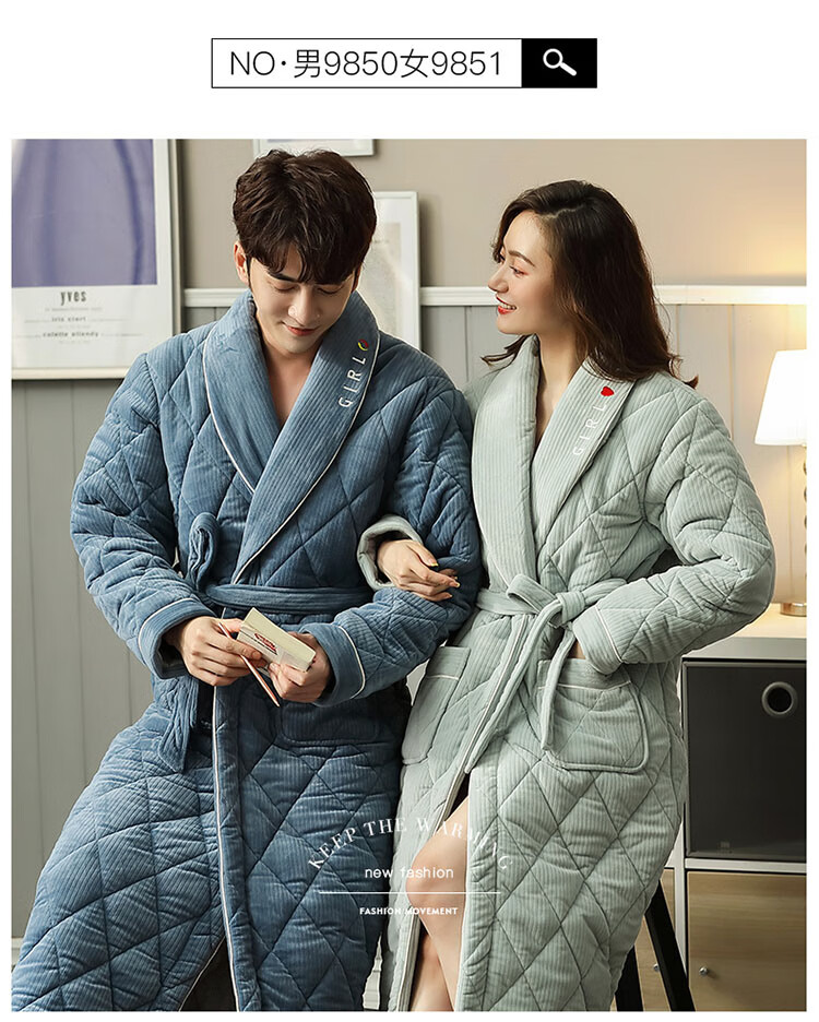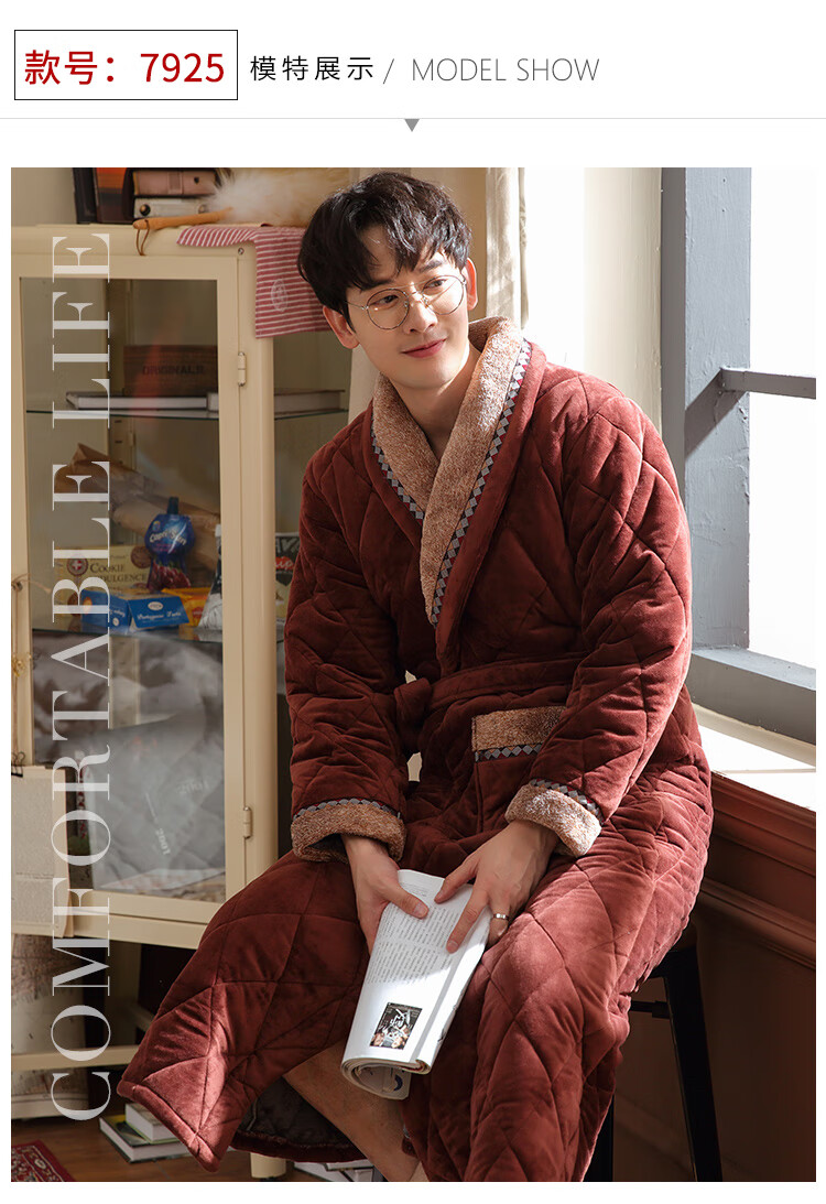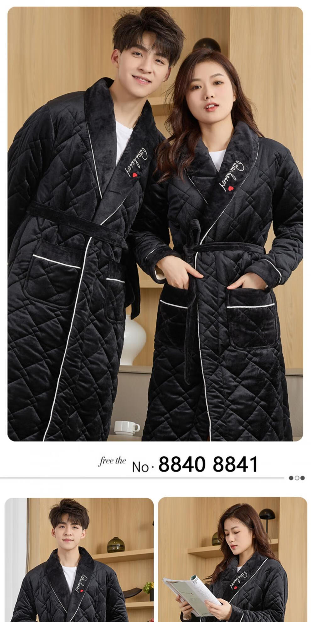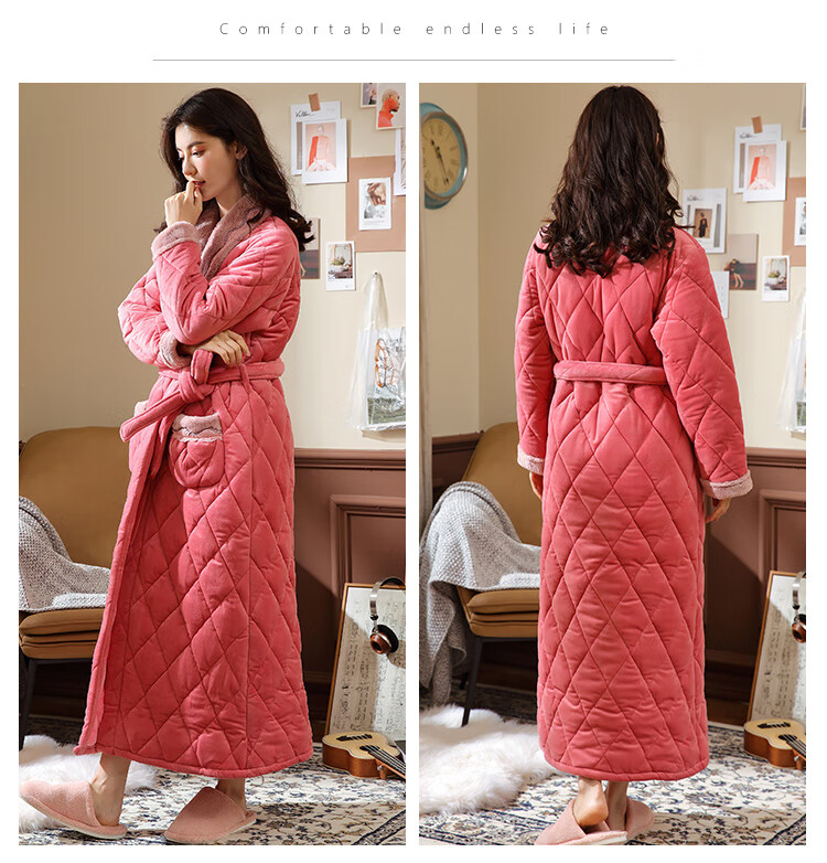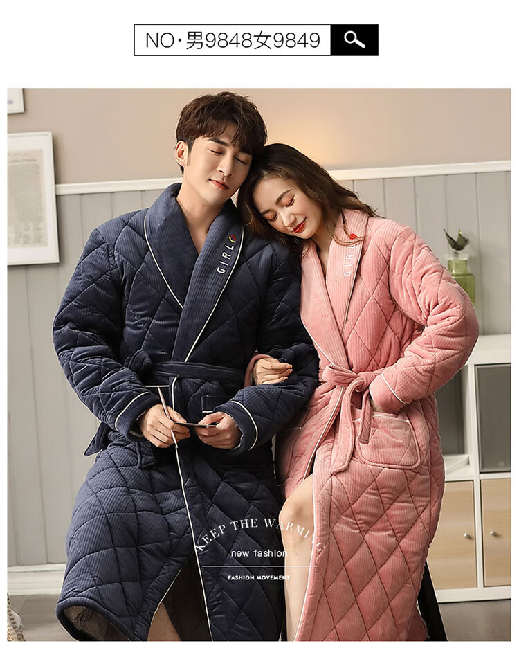 Yalujia Cotton Nightgown Women's Autumn and Winter Thickened and Velvet 2025 New Couple's Pajamas Winter Men's Coral Velvet Bathrobe 8921 Pink XL Three-Layer Long Warm