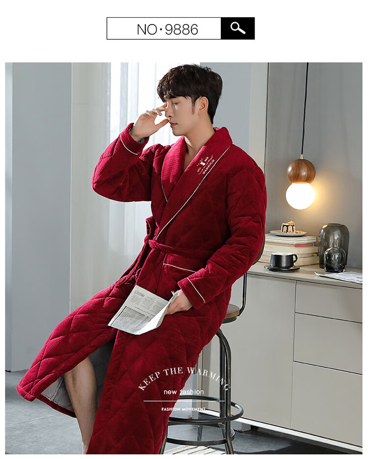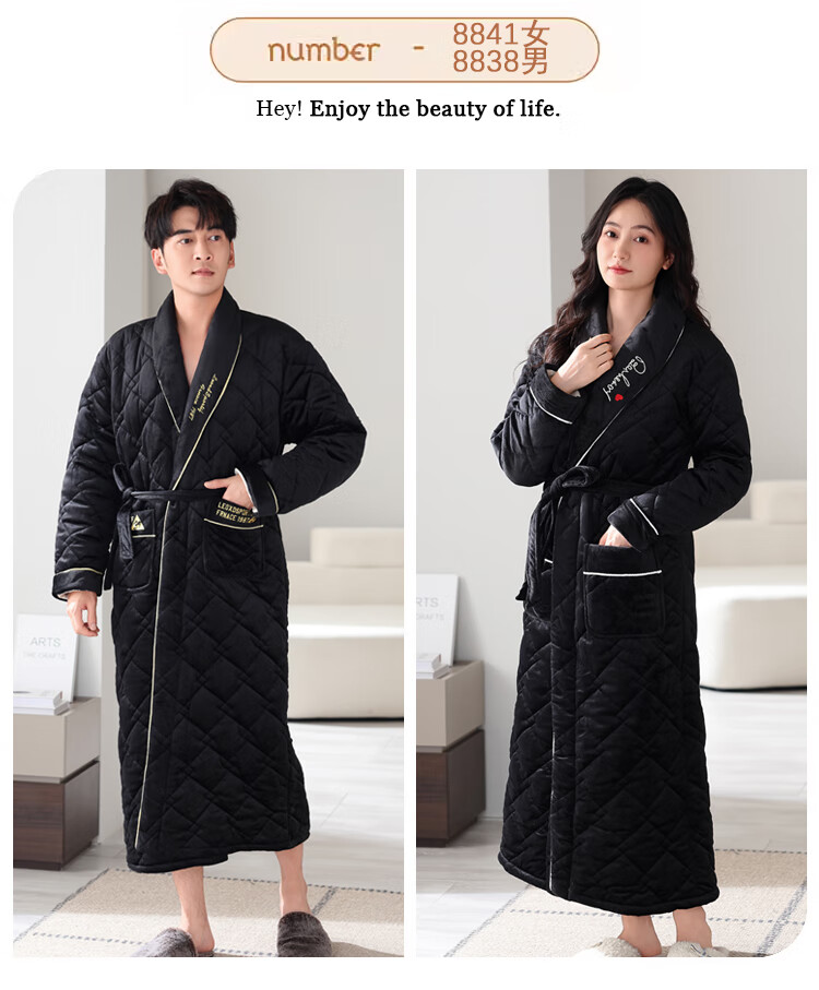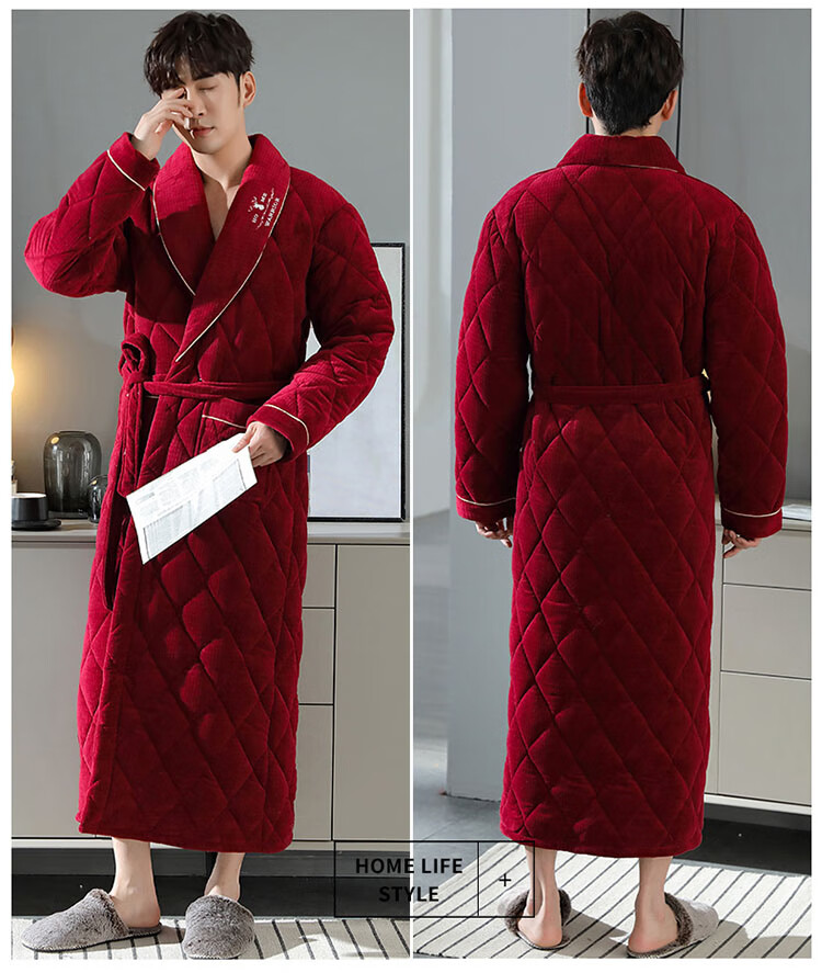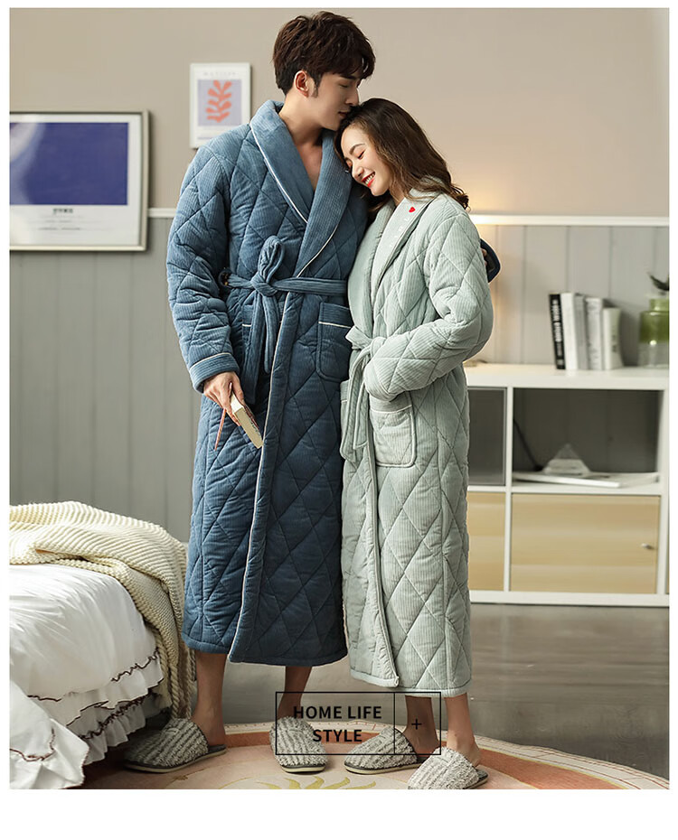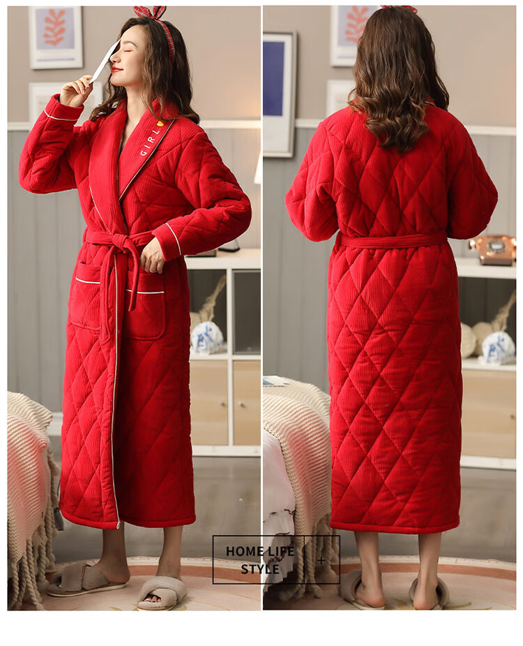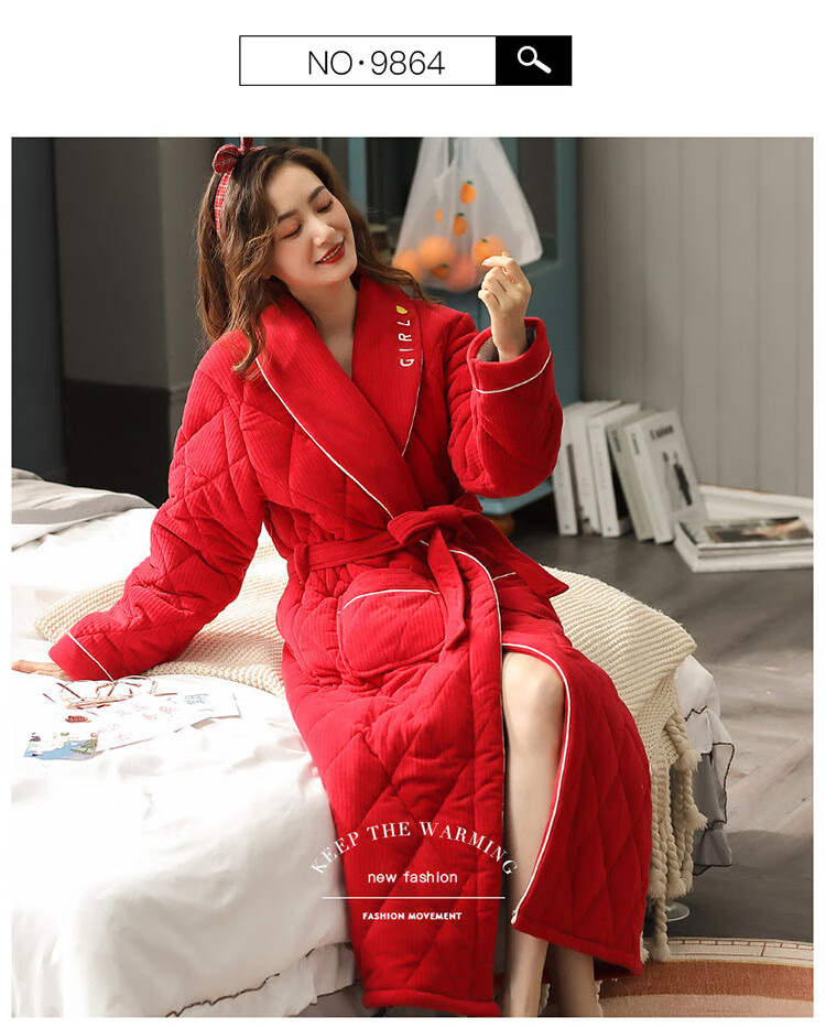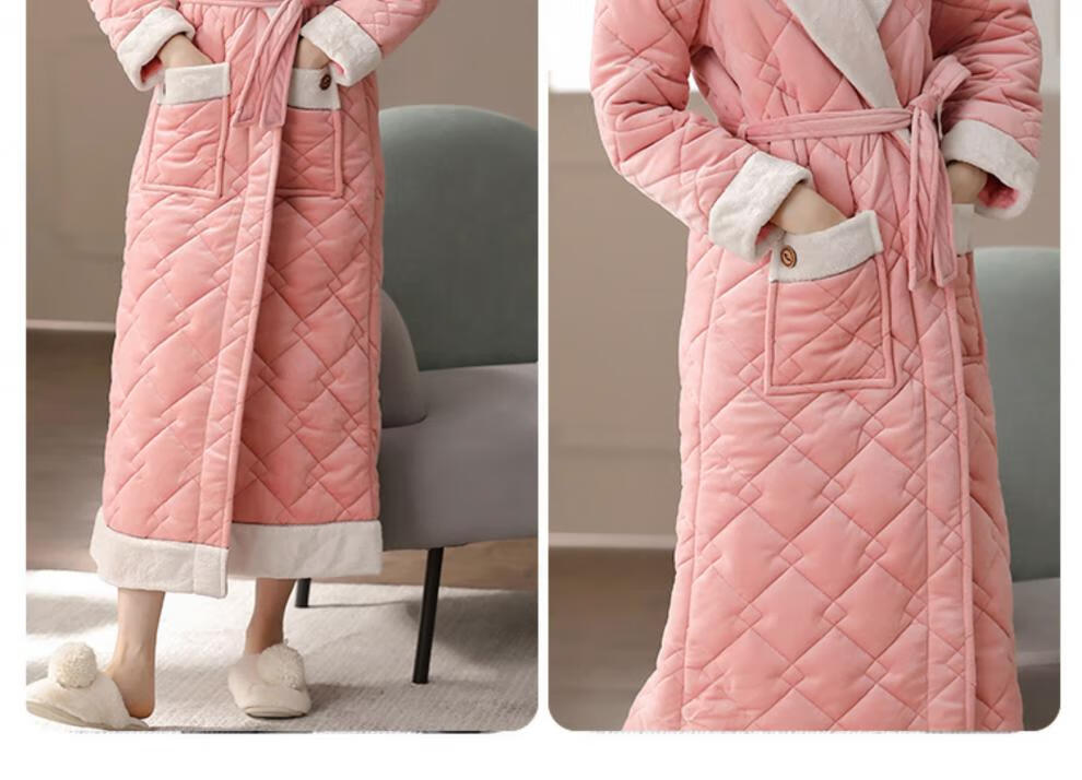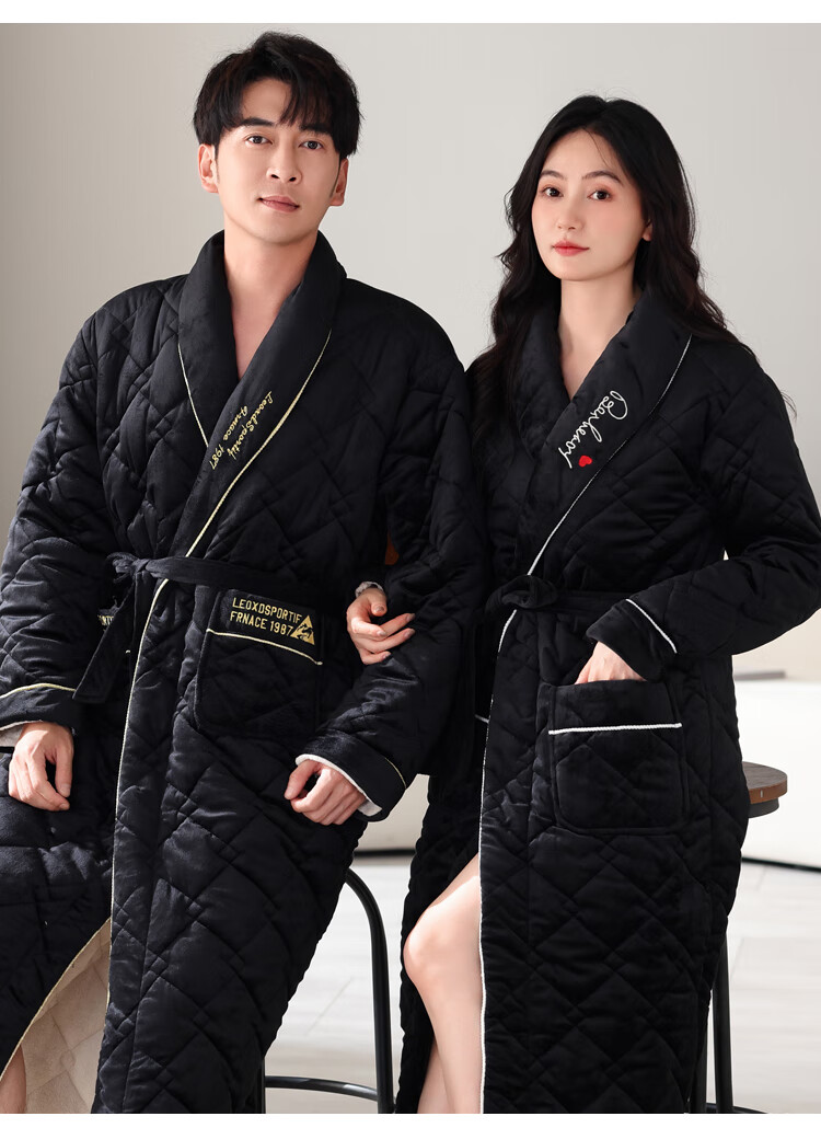 Yalujia Cotton Nightgown Women's Autumn and Winter Thickened and Velvet 2025 New Couple's Pajamas Winter Men's Coral Velvet Bathrobe 8921 Pink XL Three-Layer Long Warm