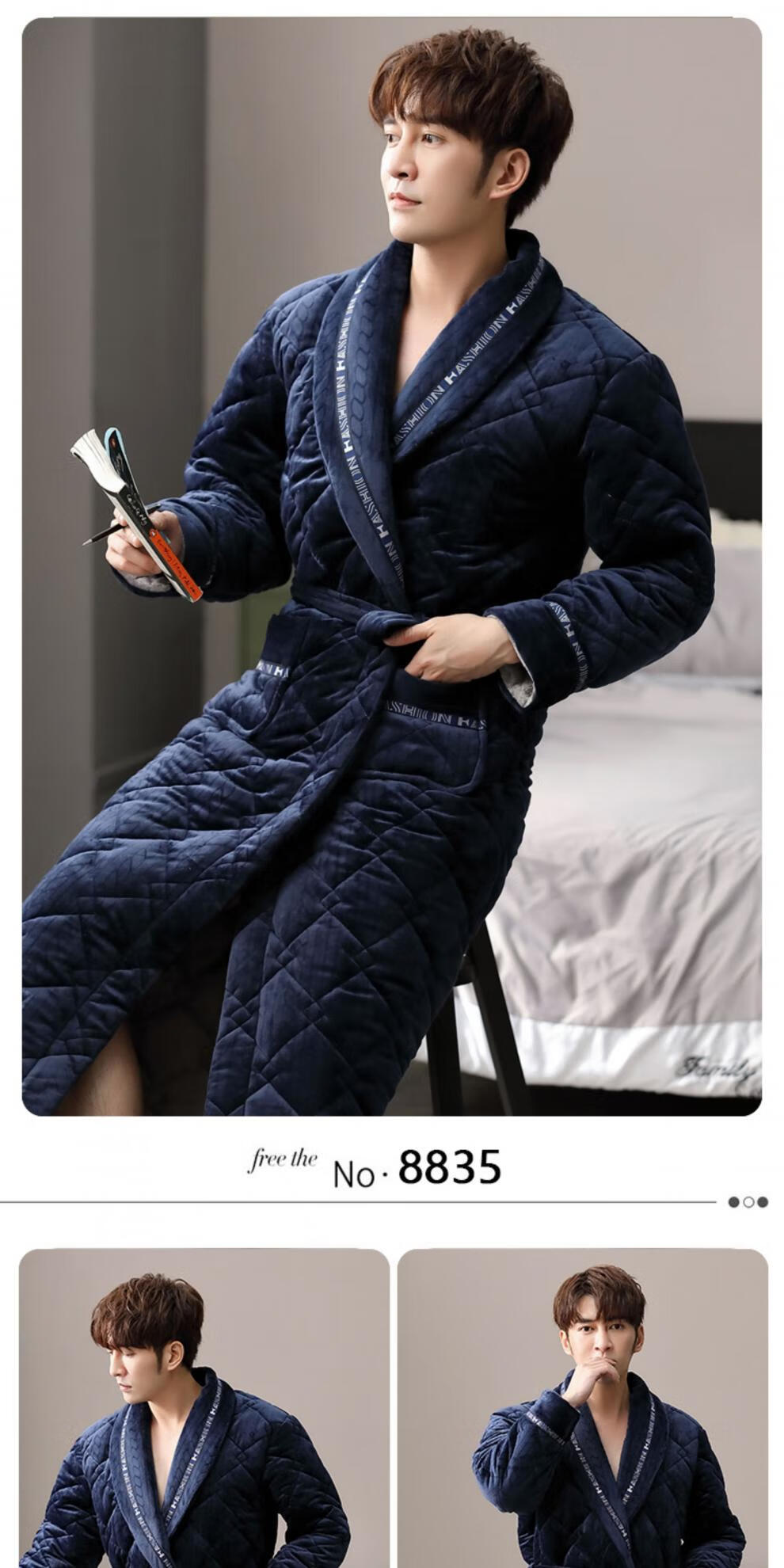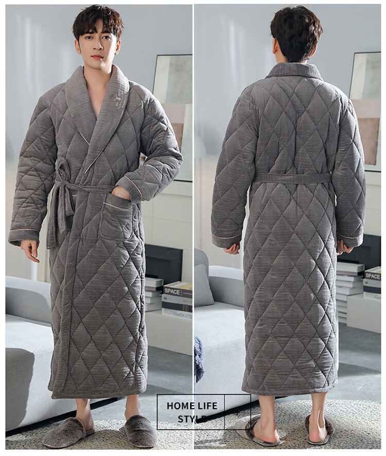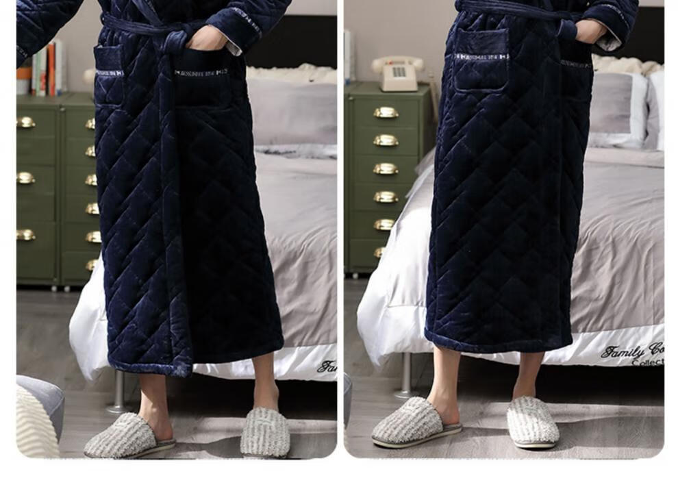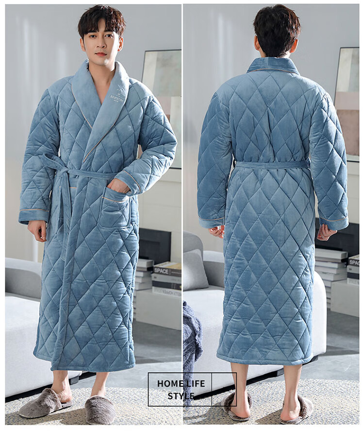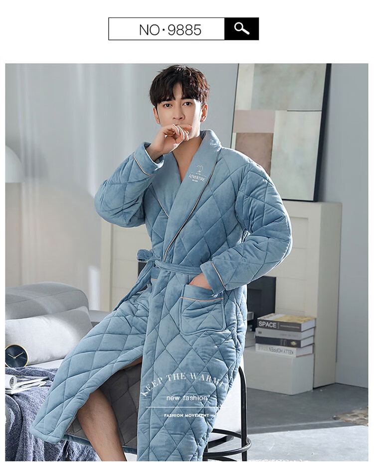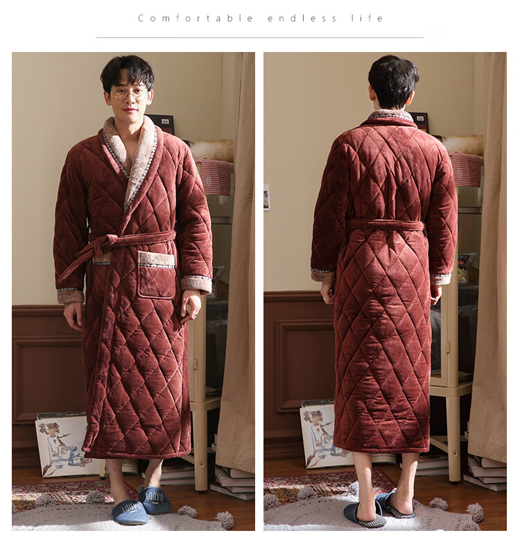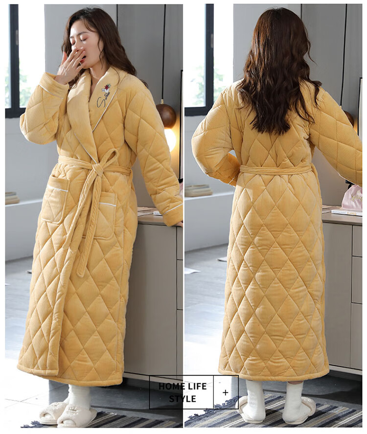 Yalujia Cotton Nightgown Women's Autumn and Winter Thickened and Velvet 2025 New Couple's Pajamas Winter Men's Coral Velvet Bathrobe 8921 Pink XL Three-Layer Long Warm