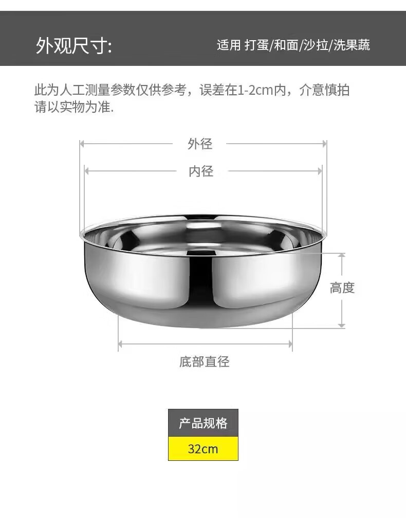 Pangdonglai stainless steel and basin extra thick household kitchen sink thickened soup pot hot pot extra thick stainless steel kneading cylinder 1 pack 30~32cm