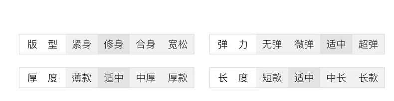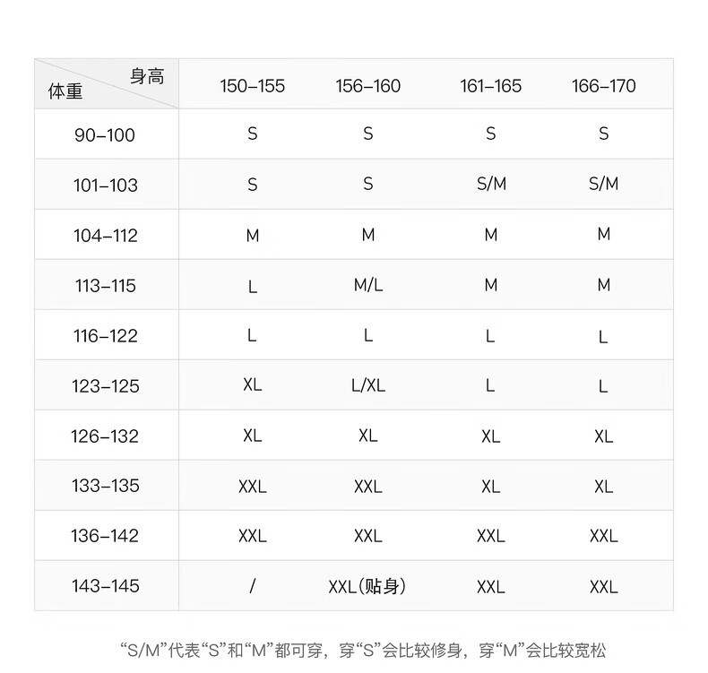 China (cm) 160-165/84-86 165-170 / 88-90 167-172 / 92-96 168-173 / 98-102 170-176 / 106-110