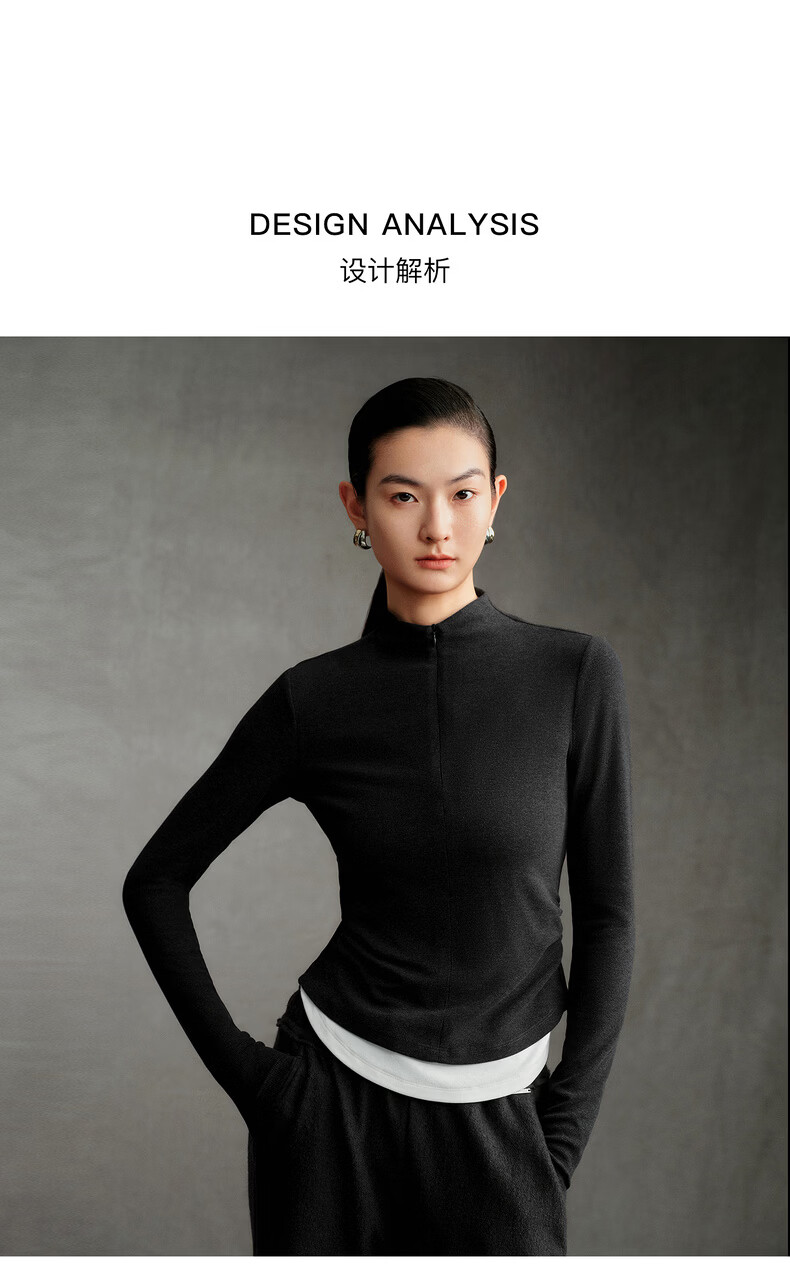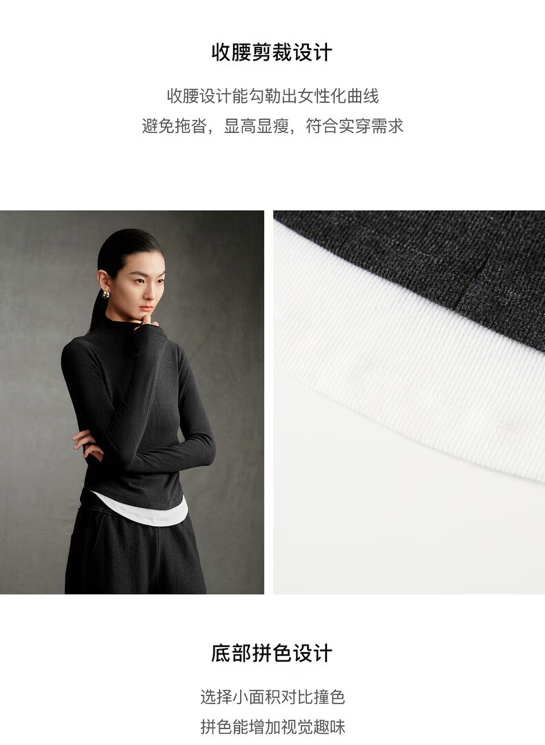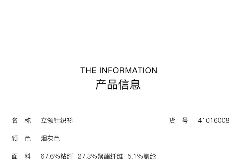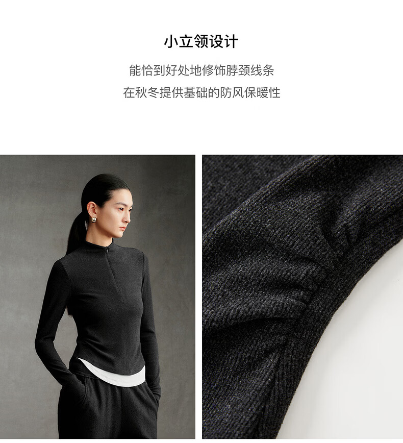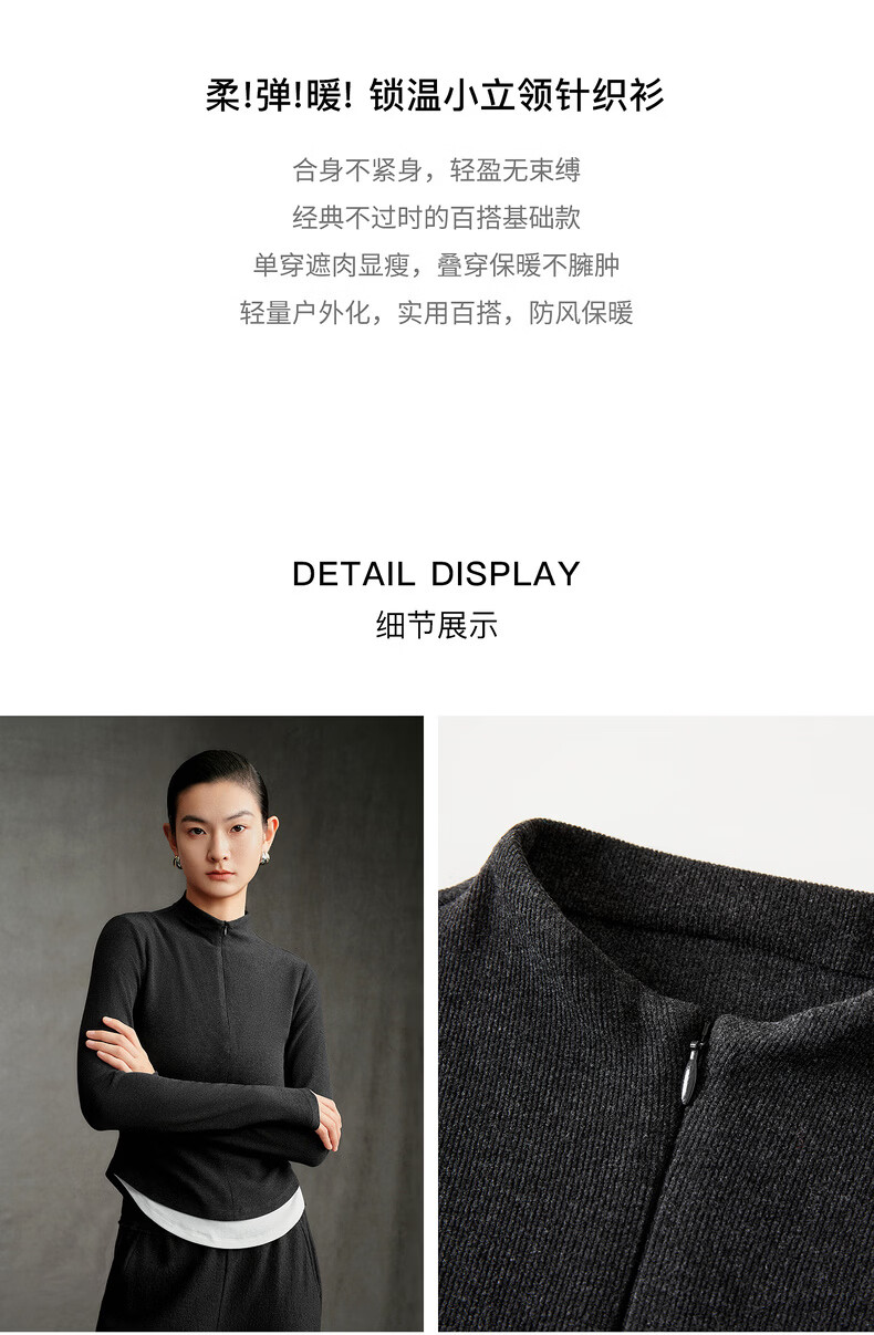 Enos Yashi Shopping Mall Same Style 2025 Winter New Versatile Slim Waist Stitching Stand Collar Sweater Women 41016008 Smoke Gray L