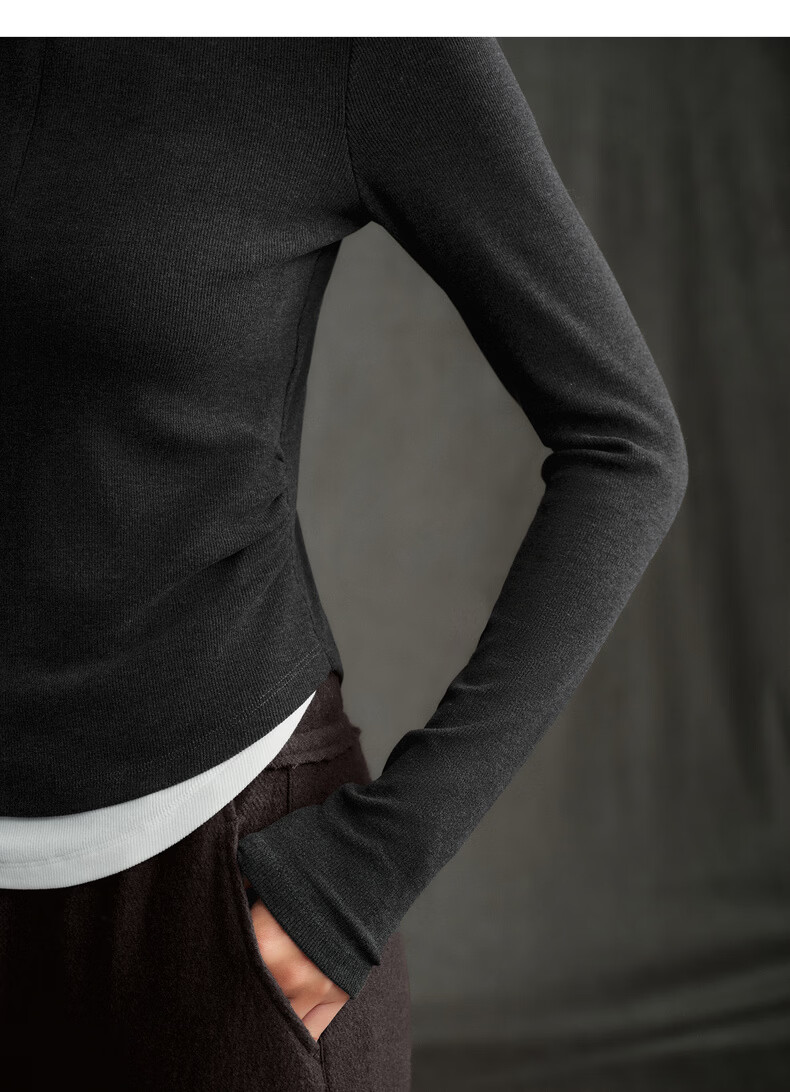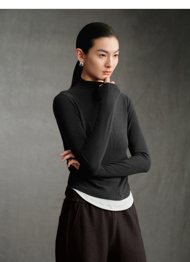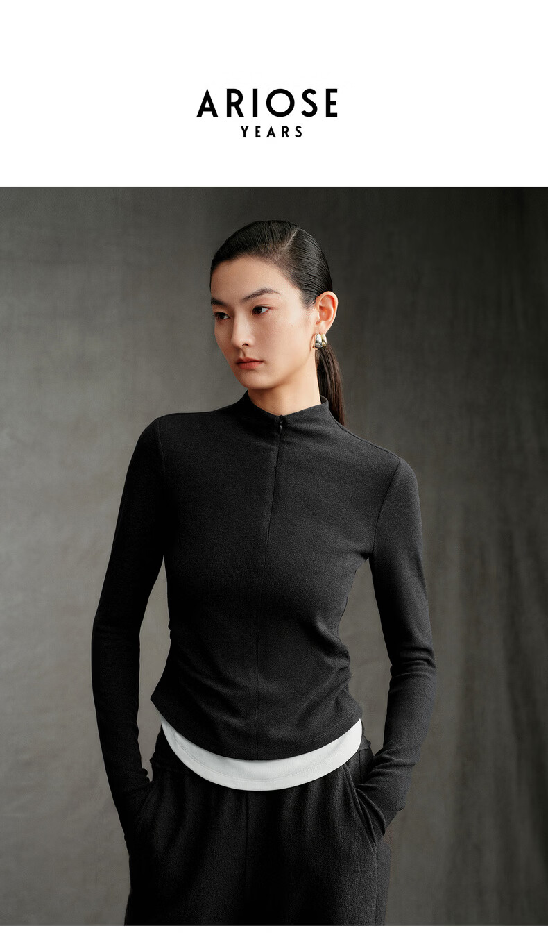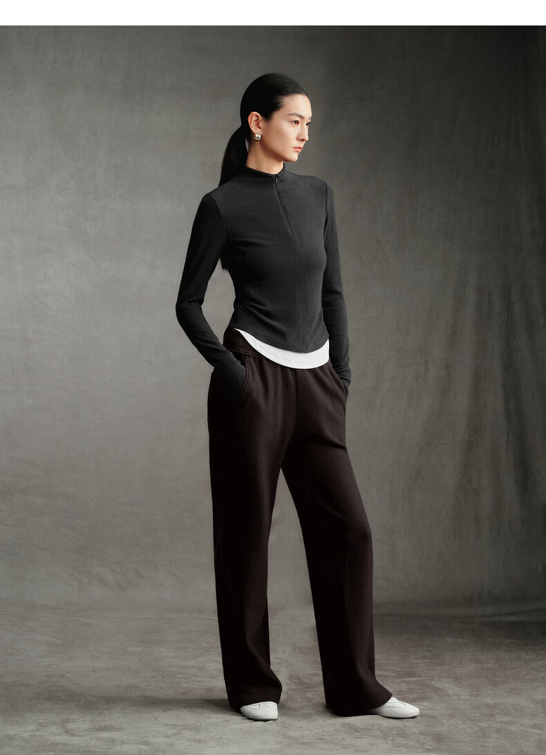 Enos Yashi Shopping Mall Same Style 2025 Winter New Versatile Slim Waist Stitching Stand Collar Sweater Women 41016008 Smoke Gray L