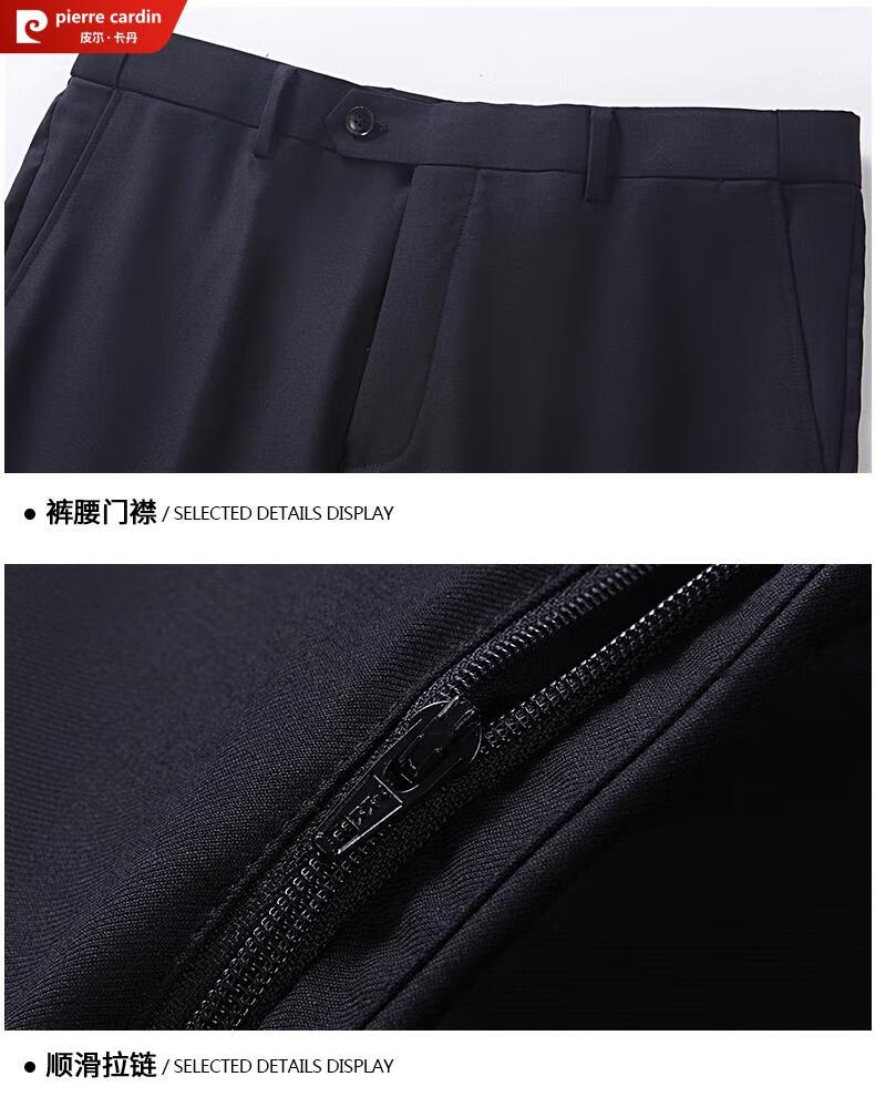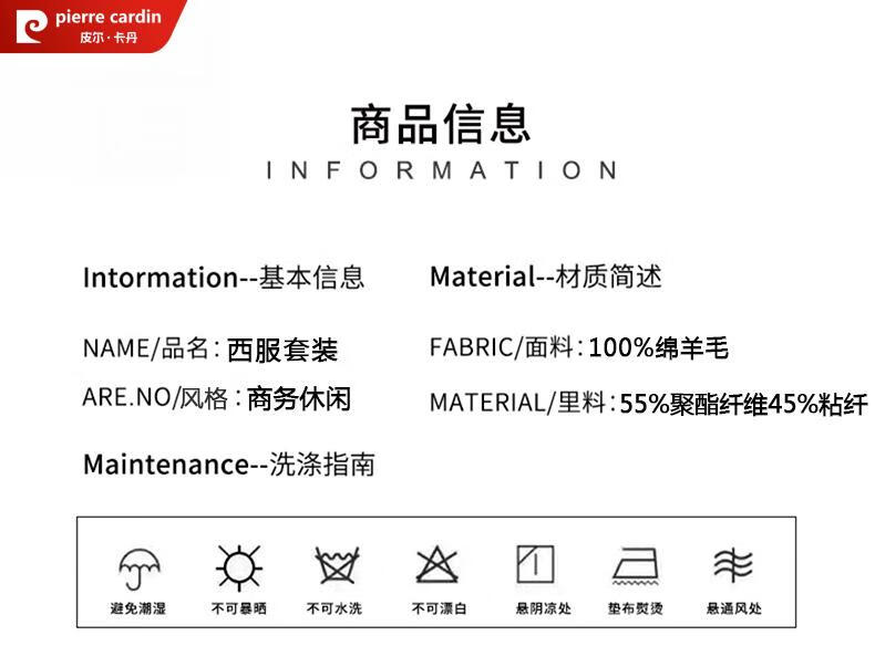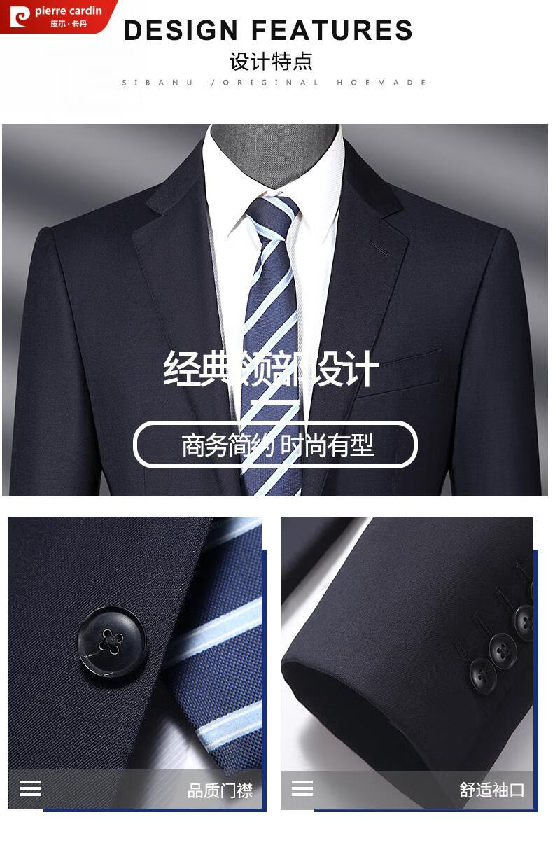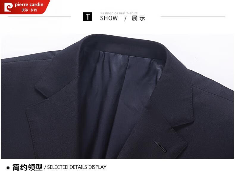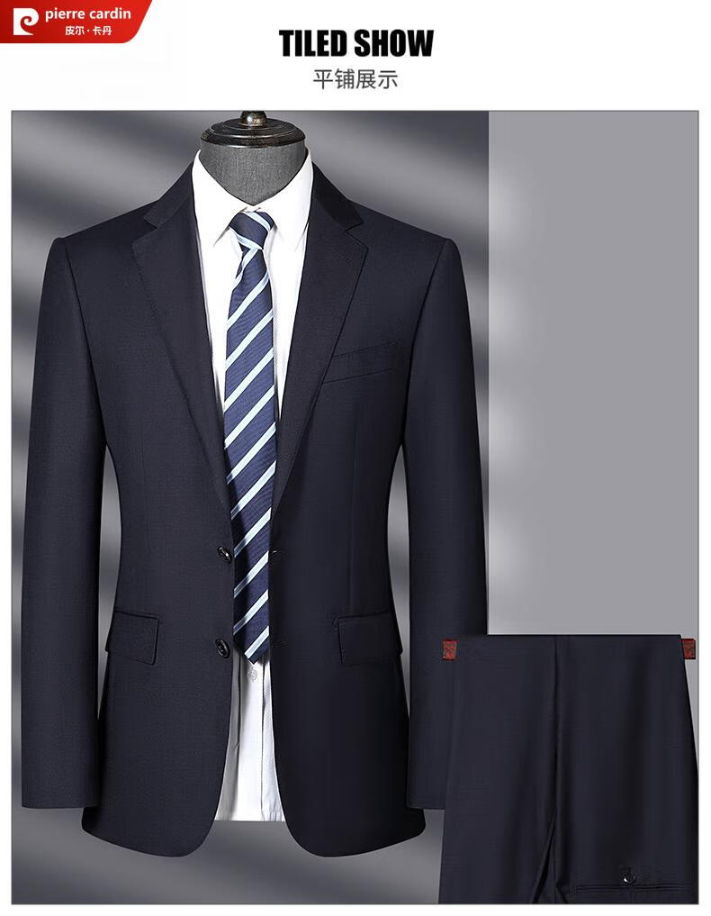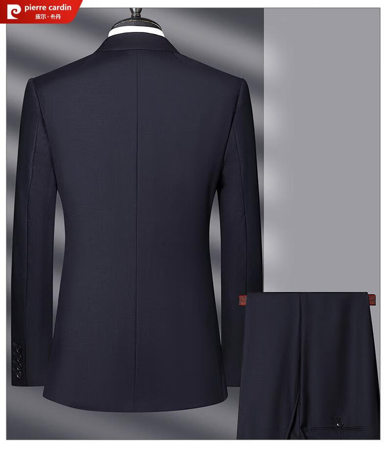Pierre Cardin French haute couture 100% worsted wool suit suit for men, business formal straight trousers, double slit suit jacket, navy blue M 170