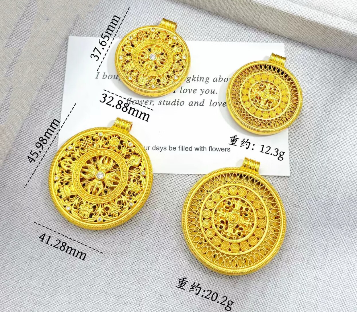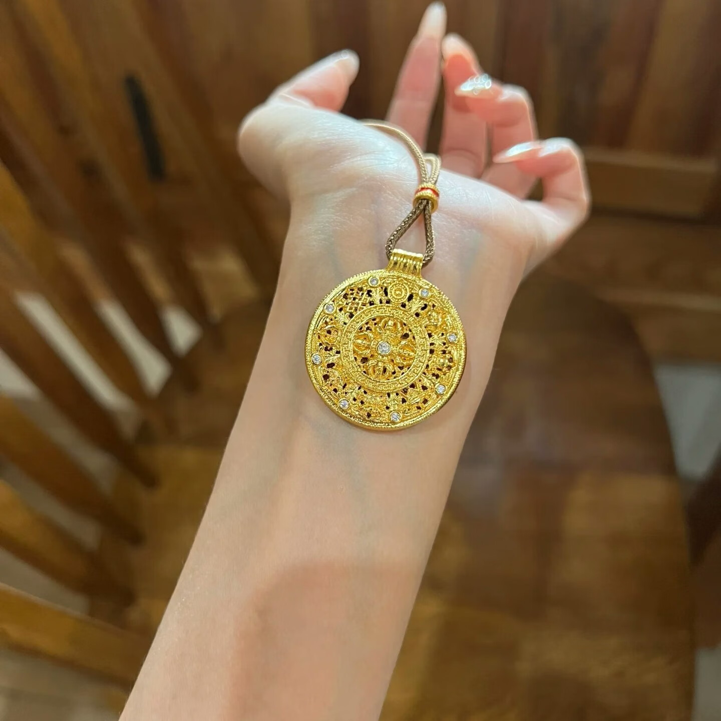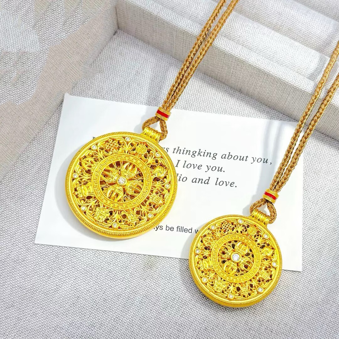 Wear Ruyi Diamond Eight Treasure Compass Sand Gold Pendant Simulated Gold Cross Necklace Filigree Sweater Alchemy Shop Women Large Diamond Eight Treasure Compass + Ruyi Rope