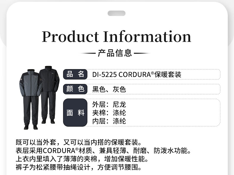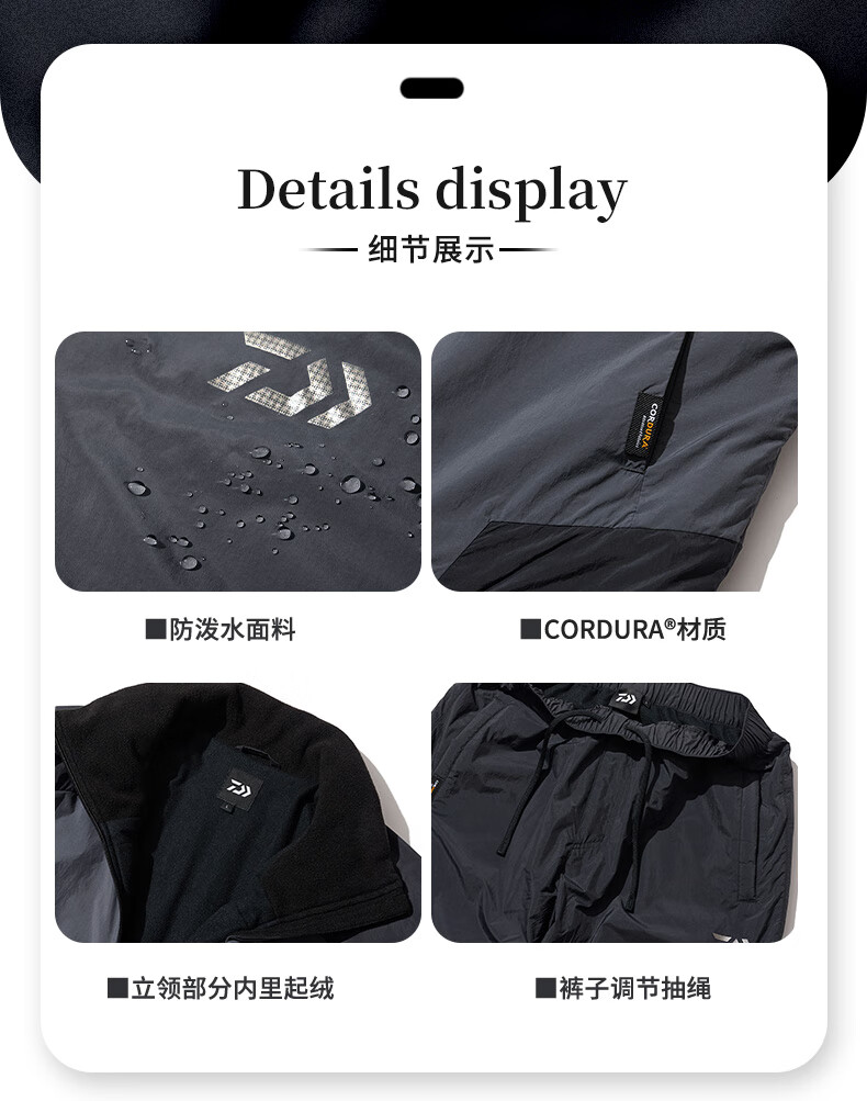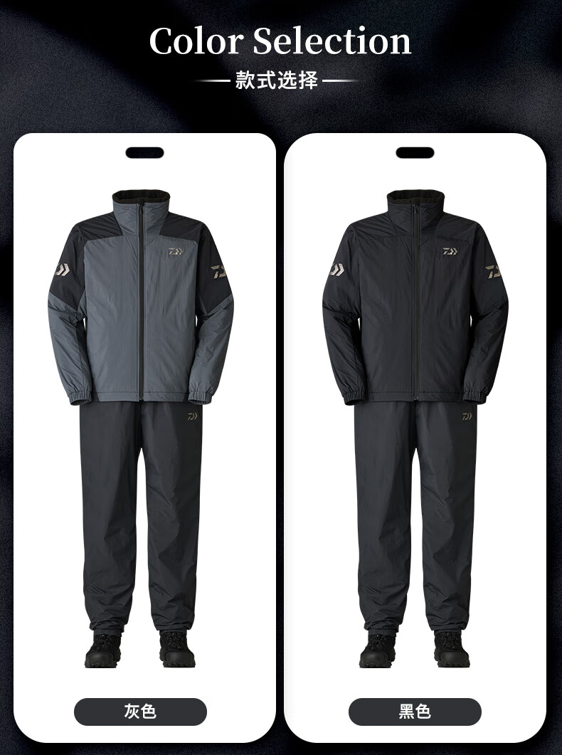 DAIWA 25 Autumn and Winter DI-5225 Wear-resistant and warm fishing clothing, cold-proof quilted jacket and trousers suit, black M