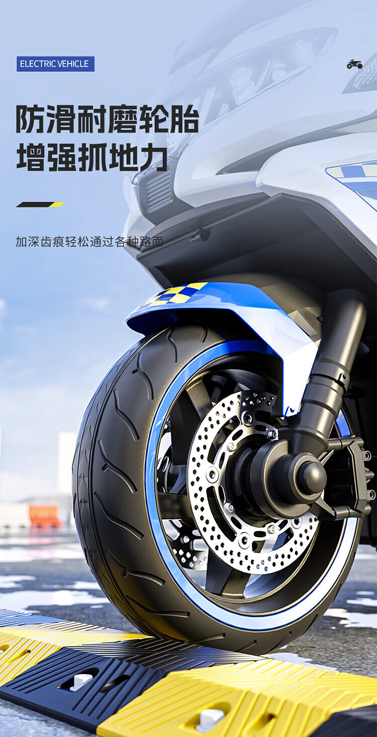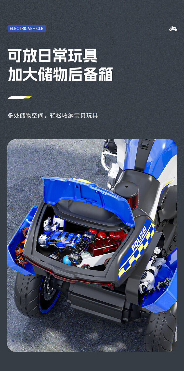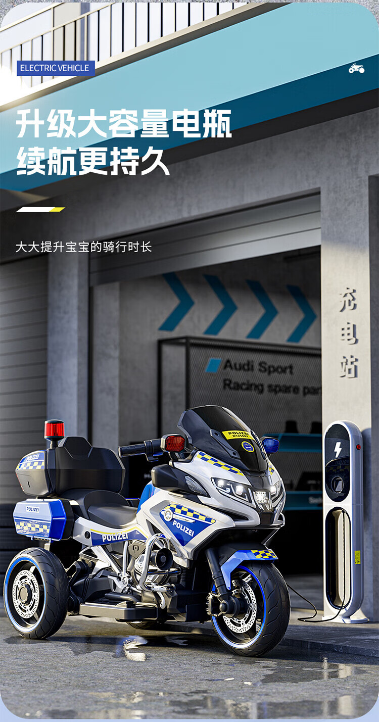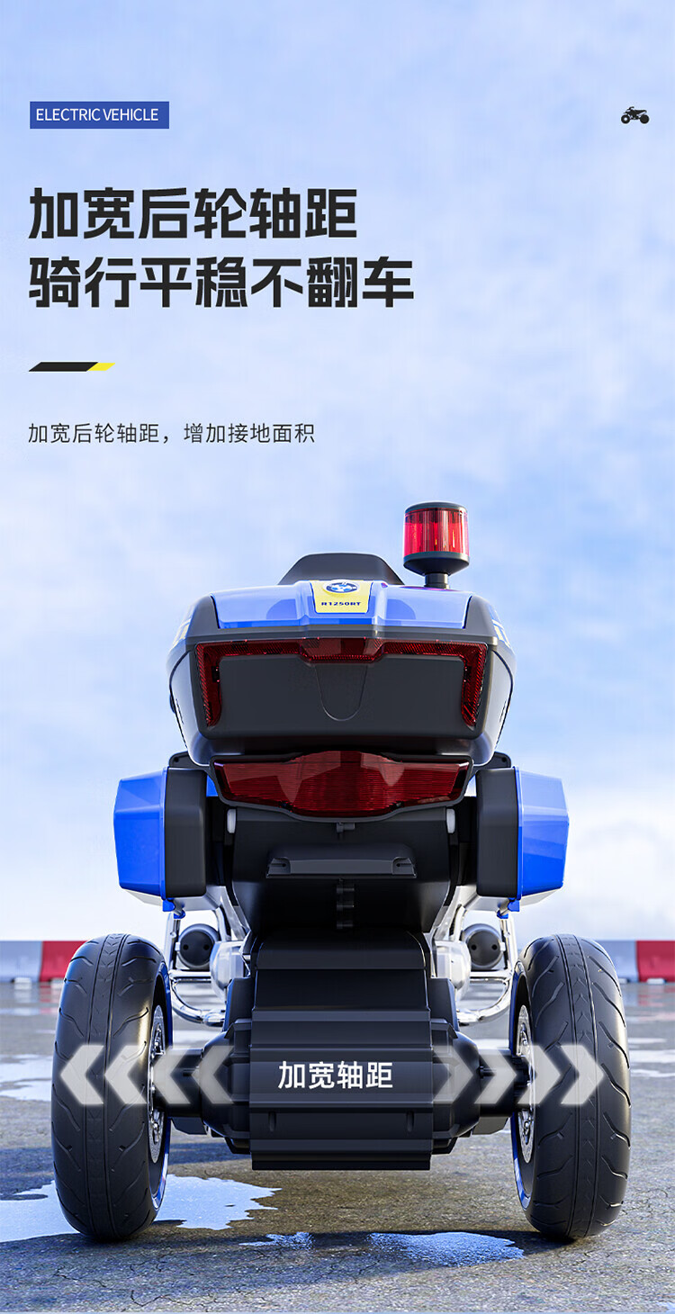 Junlebao children's electric motorcycle three-wheeled super large police car can seat two adults, boys and girls, baby parent-child toy car, high-end green + hand-tightened throttle + 12V9A battery + wheel light leather seat + alarm, dual drive