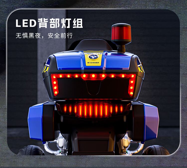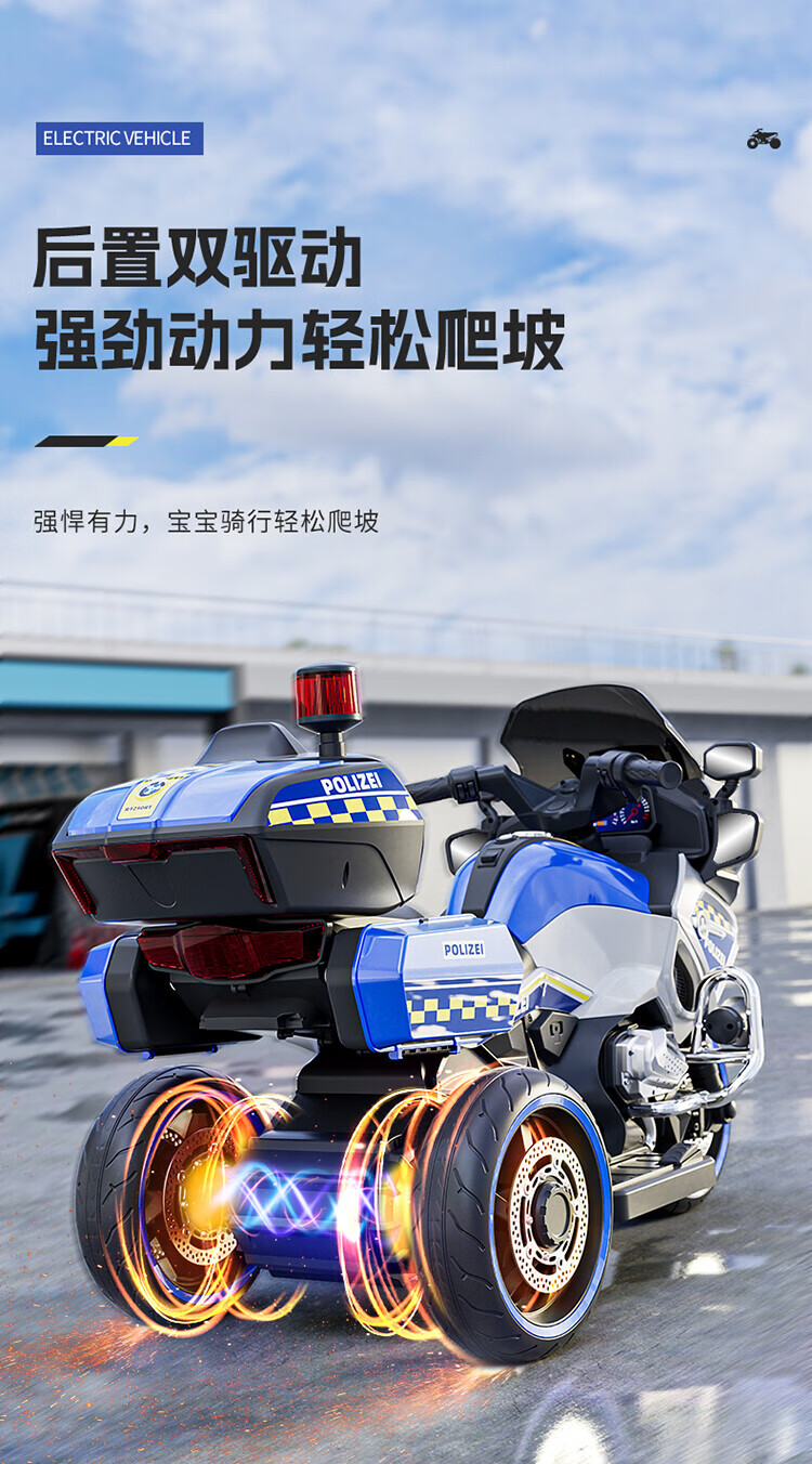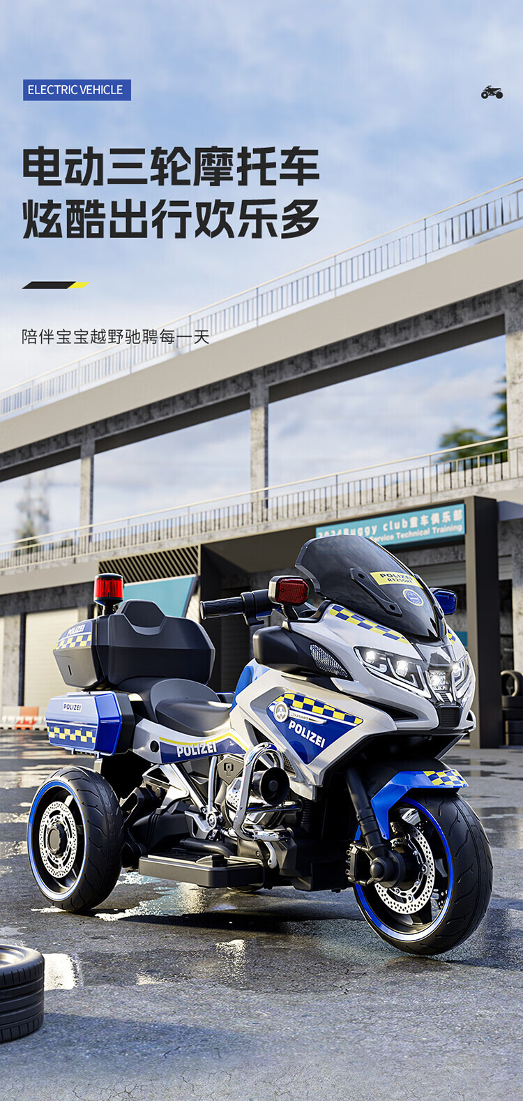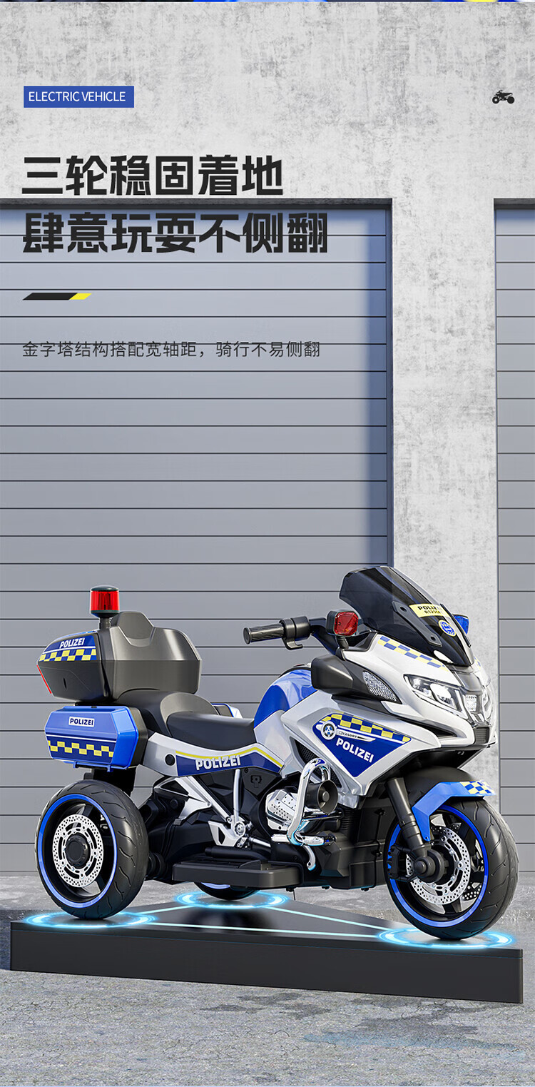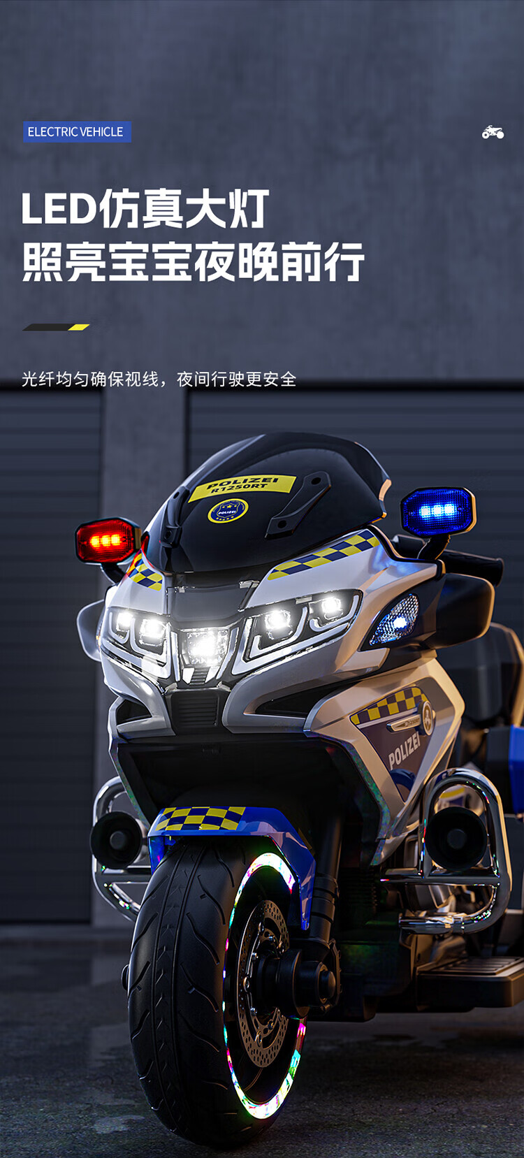 Junlebao children's electric motorcycle three-wheeled super large police car can seat two adults, boys and girls, baby parent-child toy car, high-end green + hand-tightened throttle + 12V9A battery + wheel light leather seat + alarm, dual drive