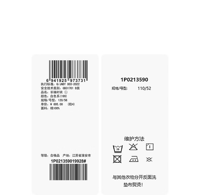 Jnby by JNBY The same style as the show, new Jiangnan Buyi children's long-sleeved shirt H-shaped loose 25 winter boys 1P0213590 199/white 140 cm