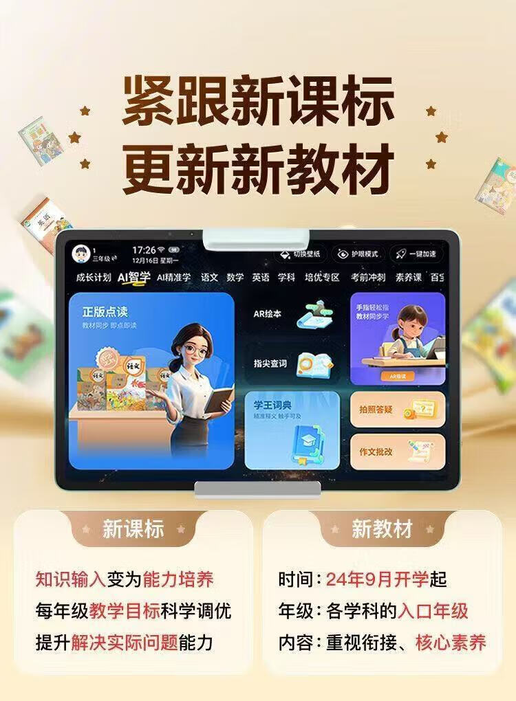 IFLYTEK AI Intelligent Learning Machine 2025 Primary School, Junior High and High School General Tablet English Reading Machine Tuhao Gold Textbook Synchronous Reading + Famous Teachers’ Lectures + (Lifetime Free) Standard Version Reading Pen + 12 Cores + 12G Operation + 256G