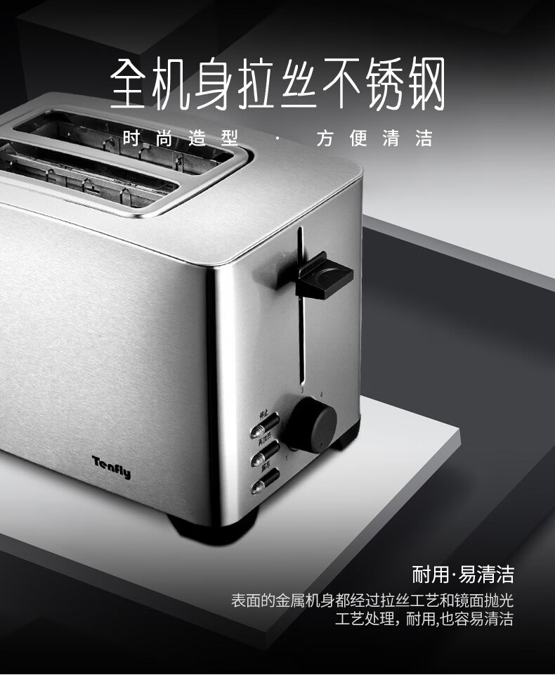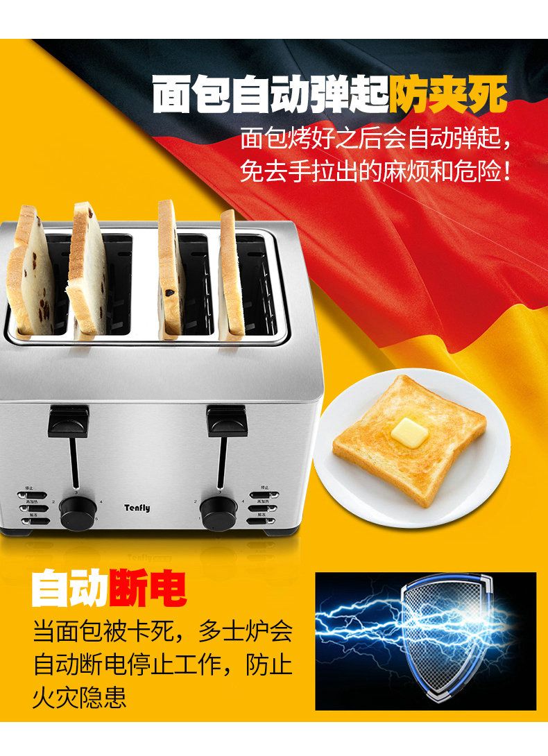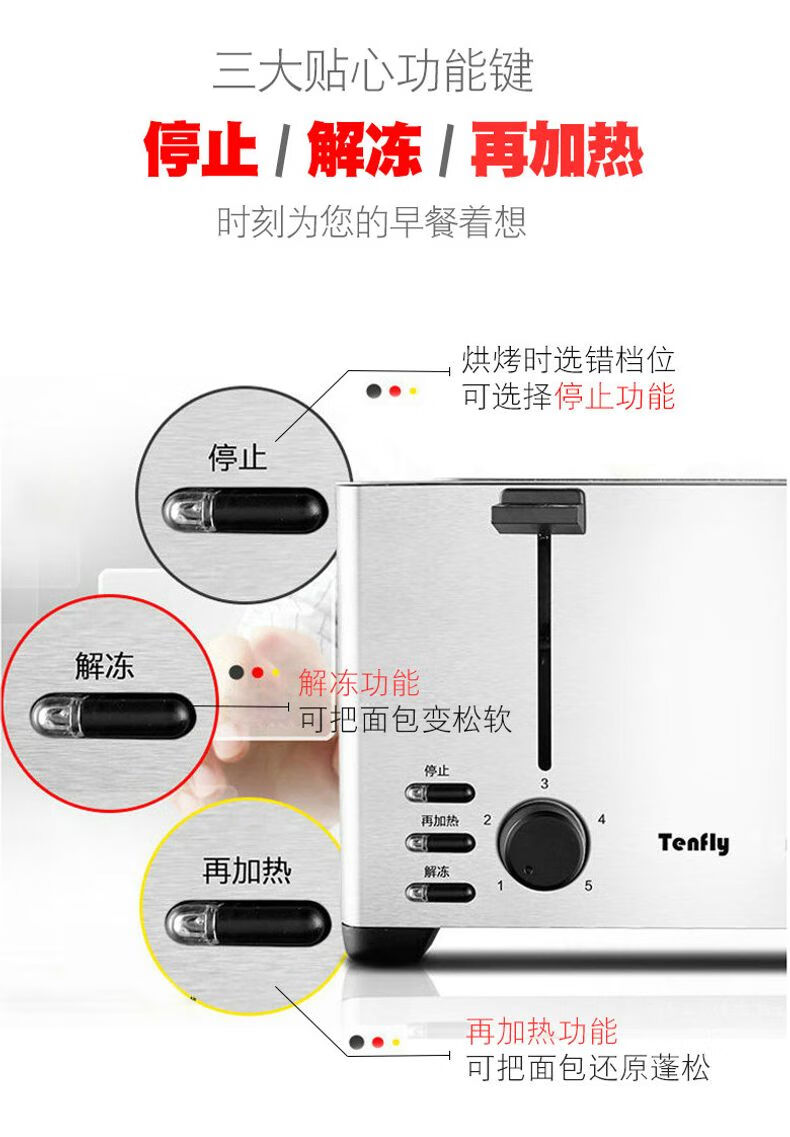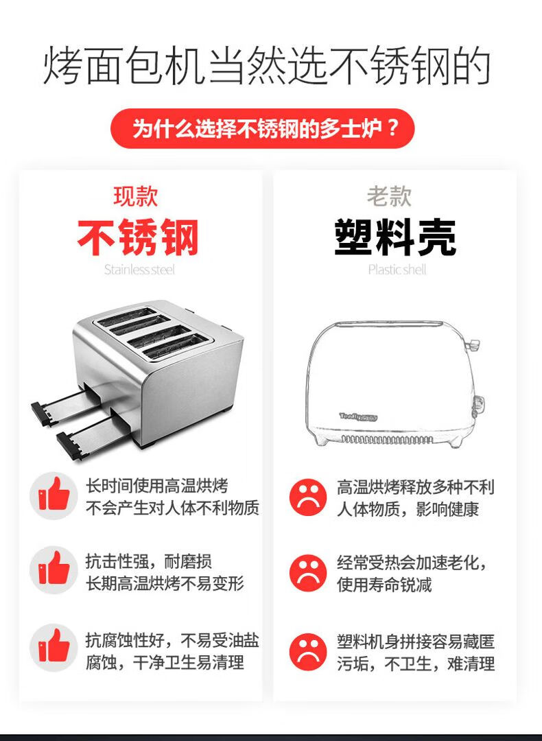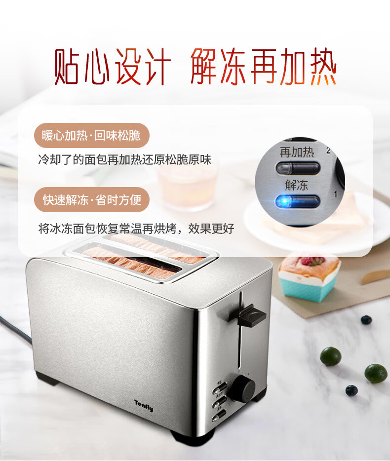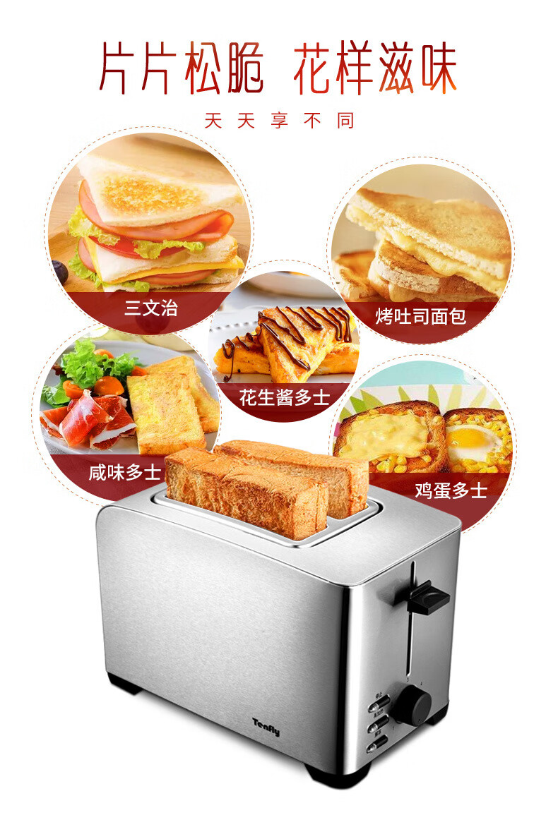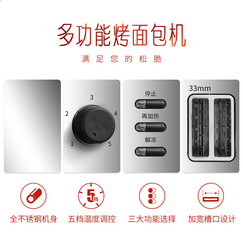 Bread machine breakfast machine Toaster Toaster Toaster Household snack machine Stainless steel body Household small fully automatic wide slot snack machine Double slot bread machine One-click defrosting-8012B