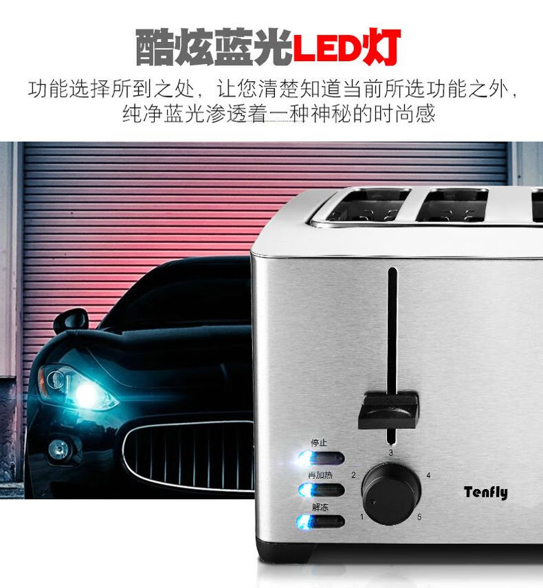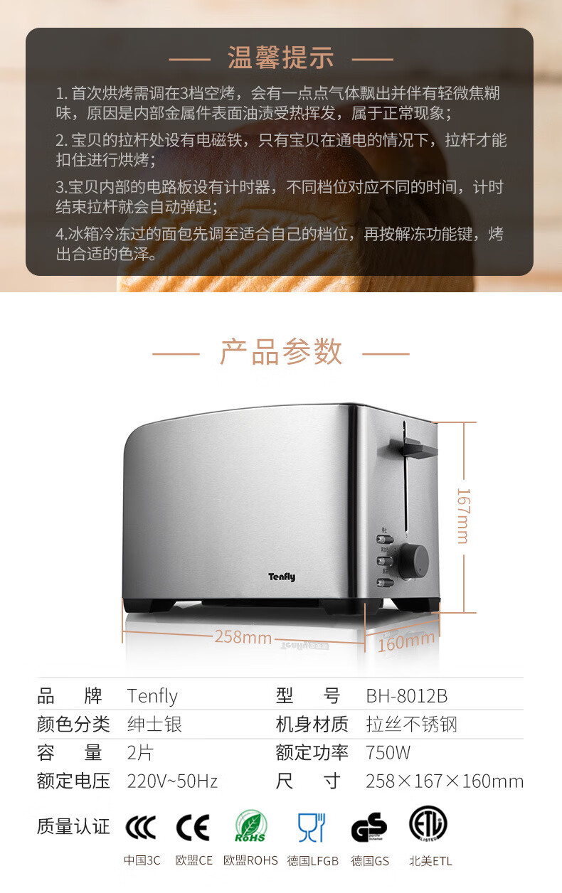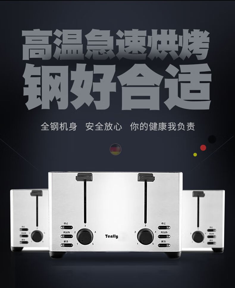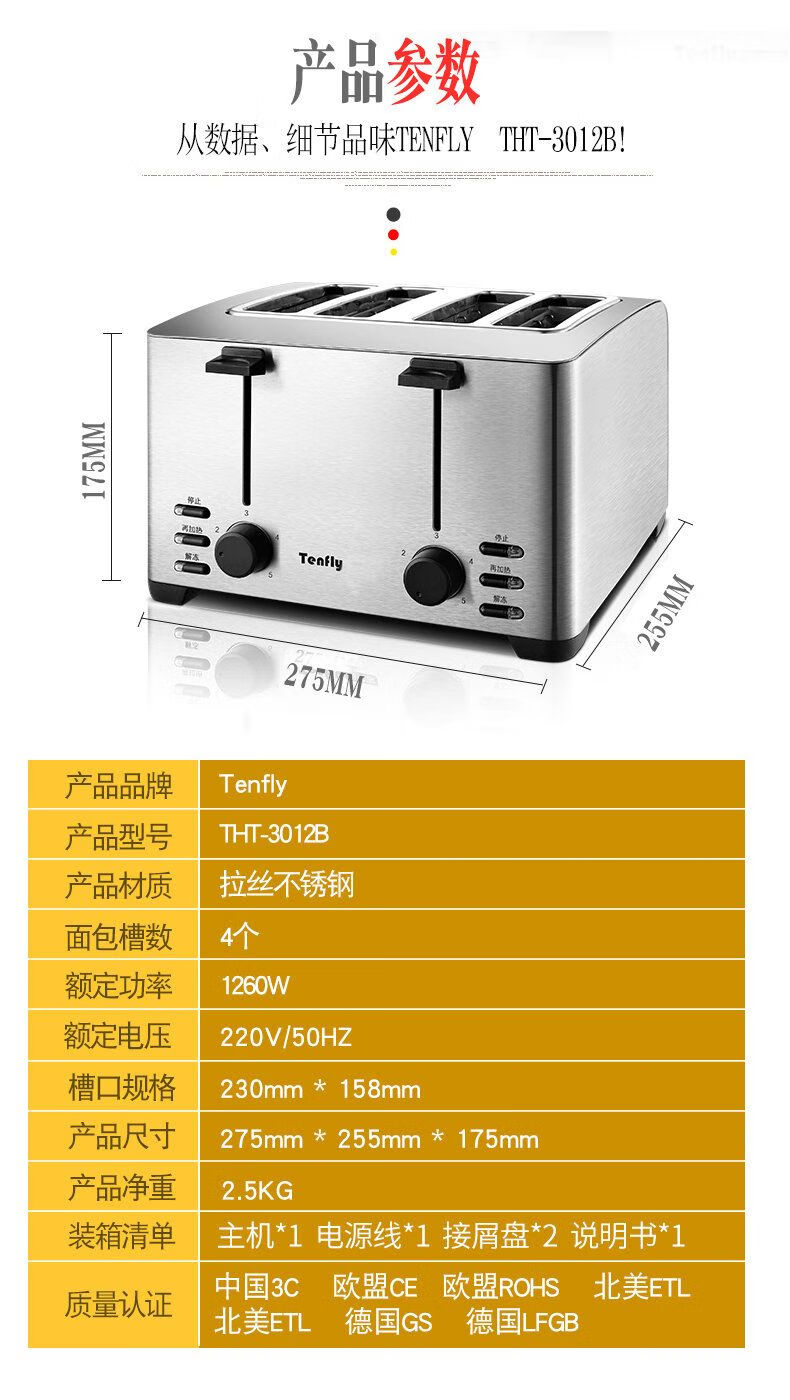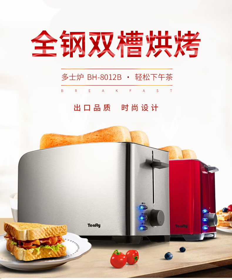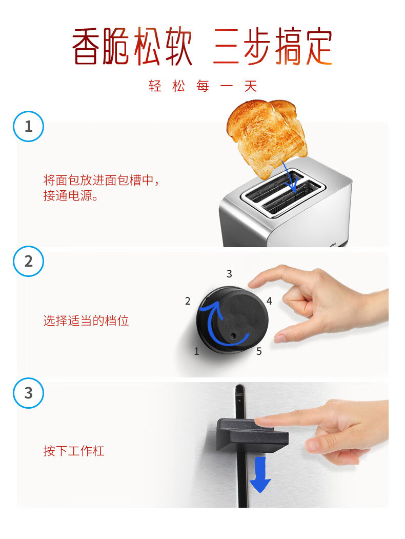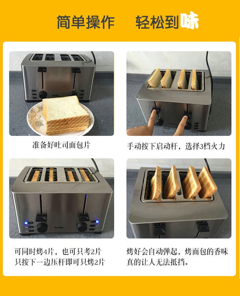 Bread machine breakfast machine Toaster Toaster Toaster Household snack machine Stainless steel body Household small fully automatic wide slot snack machine Double slot bread machine One-click defrosting-8012B