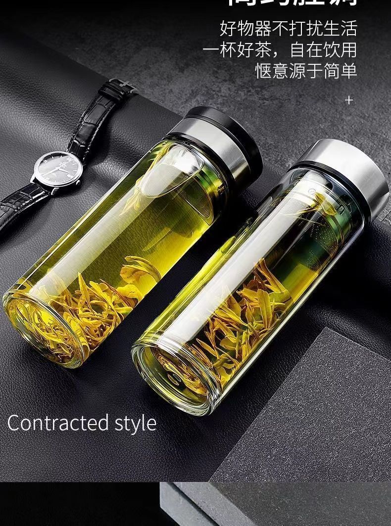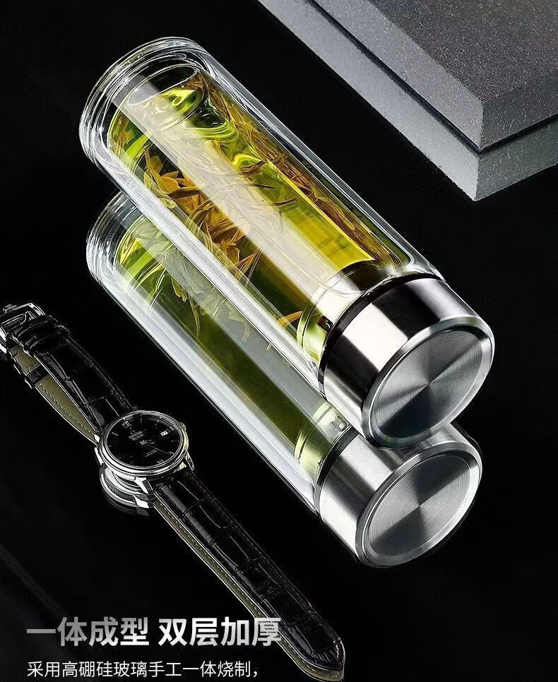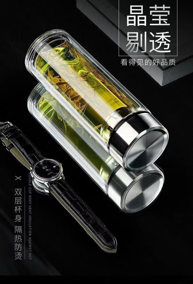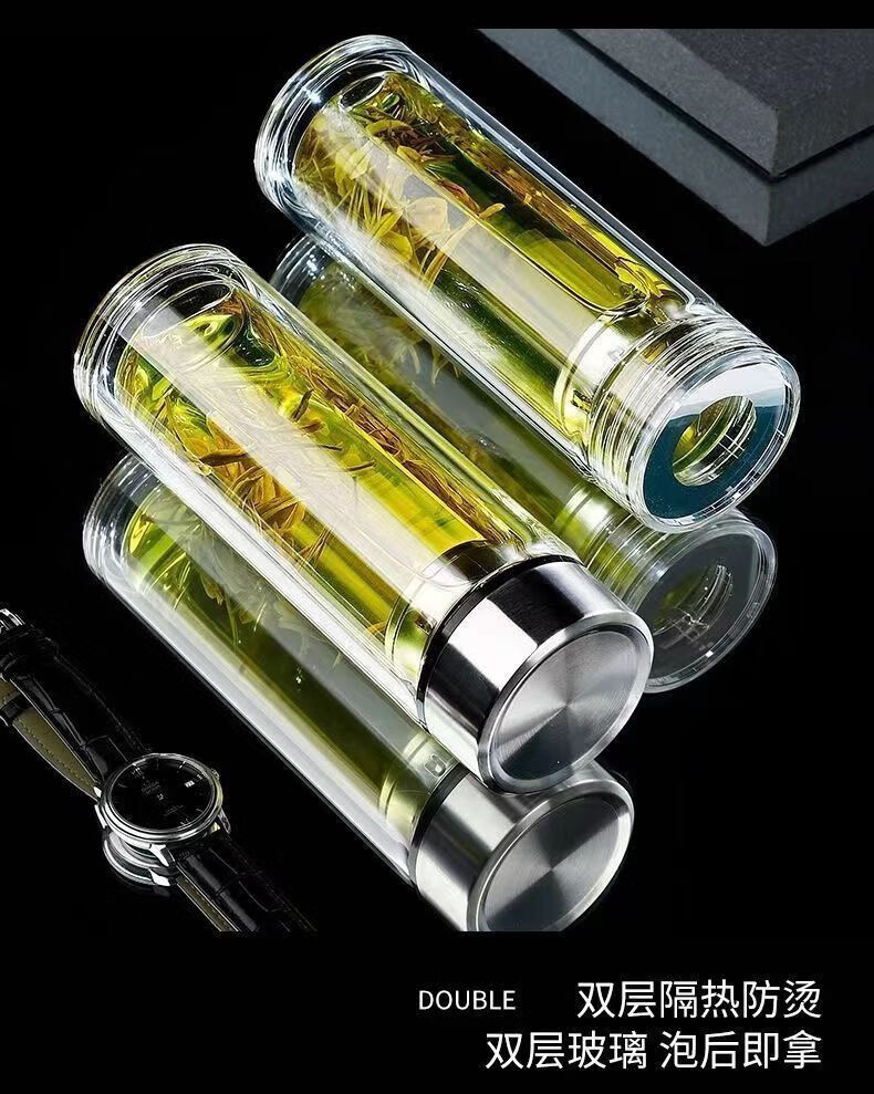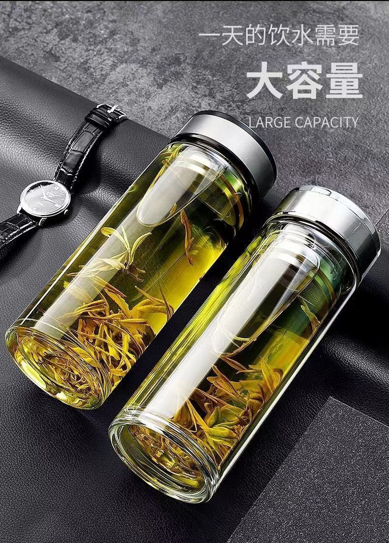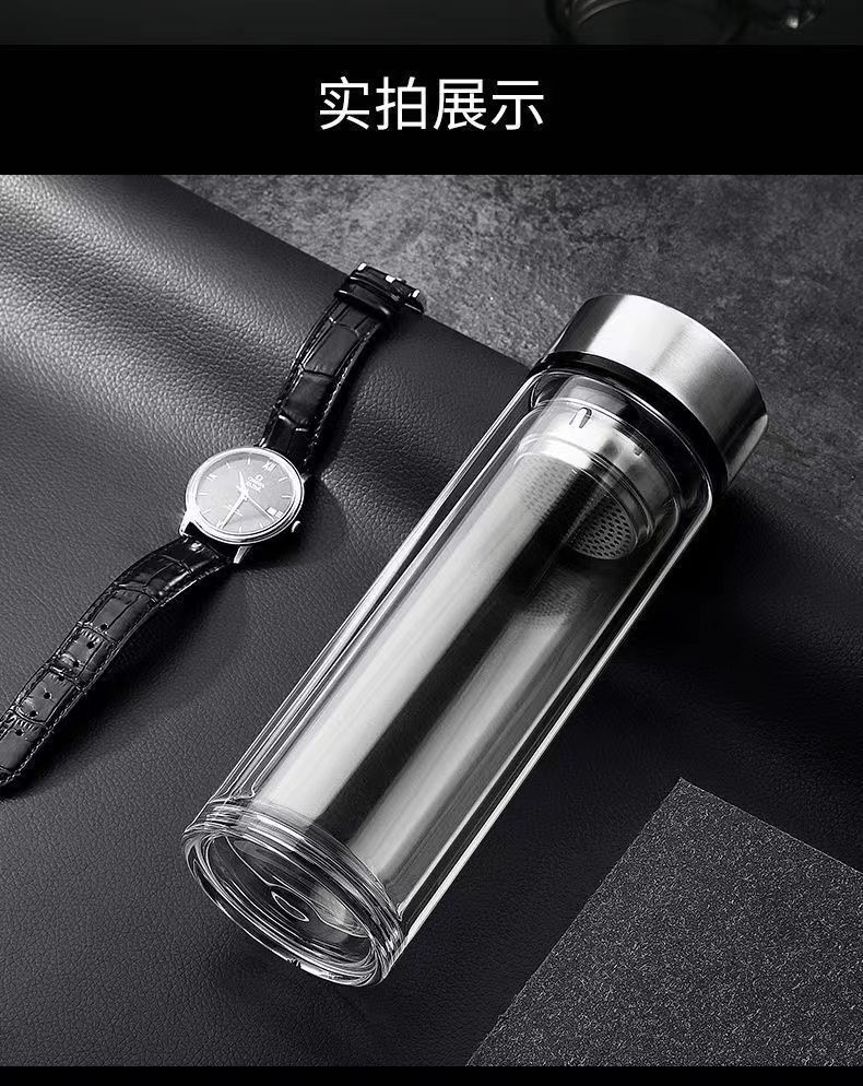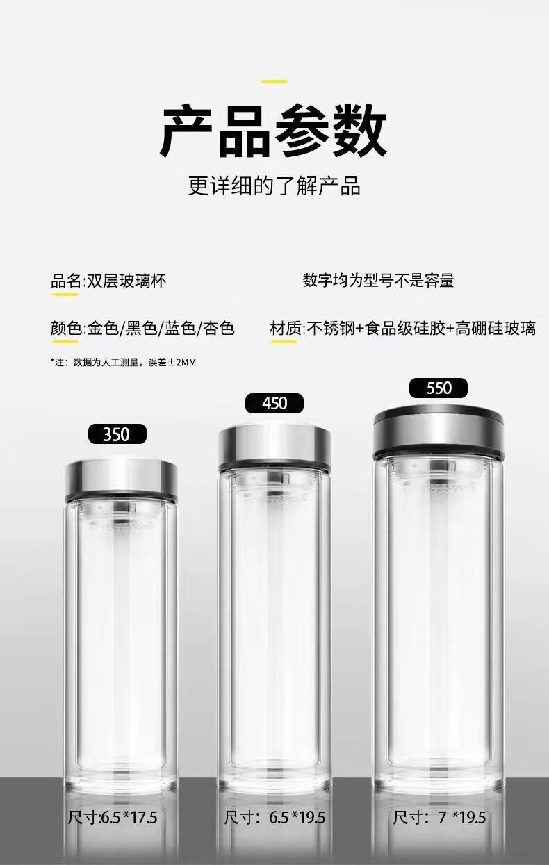 Fat Donglai's same style unbreakable tempered glass tea cup 500ml resistant to breakage and high temperature borosilicate double-layer glass cup with warranty New store opening First order discount Steel color 450-