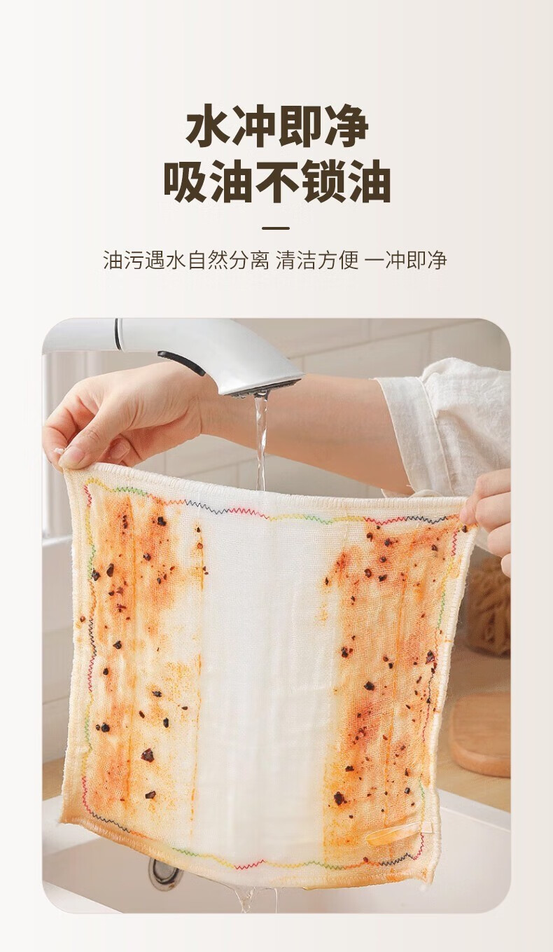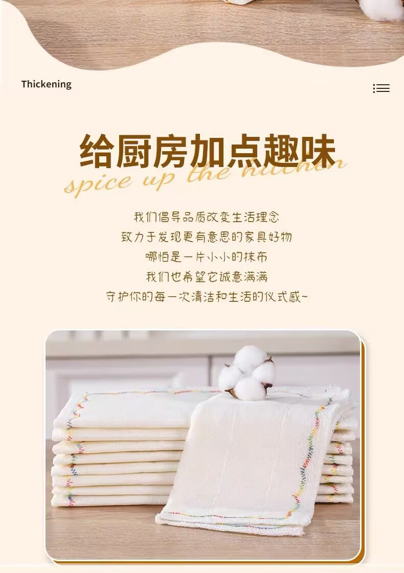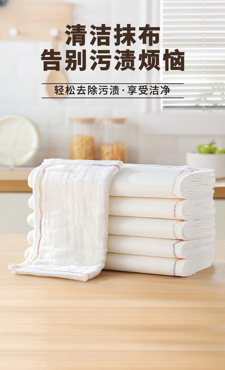 Kitchen oleophobic rag, dishwashing cloth, pure cotton yarn, water-absorbent, non-stick oil, thickened scouring pad, cleaning dish towel, 8-layer thickened 5-pack