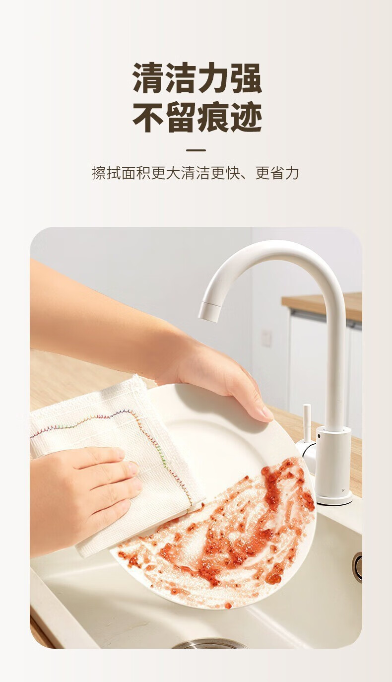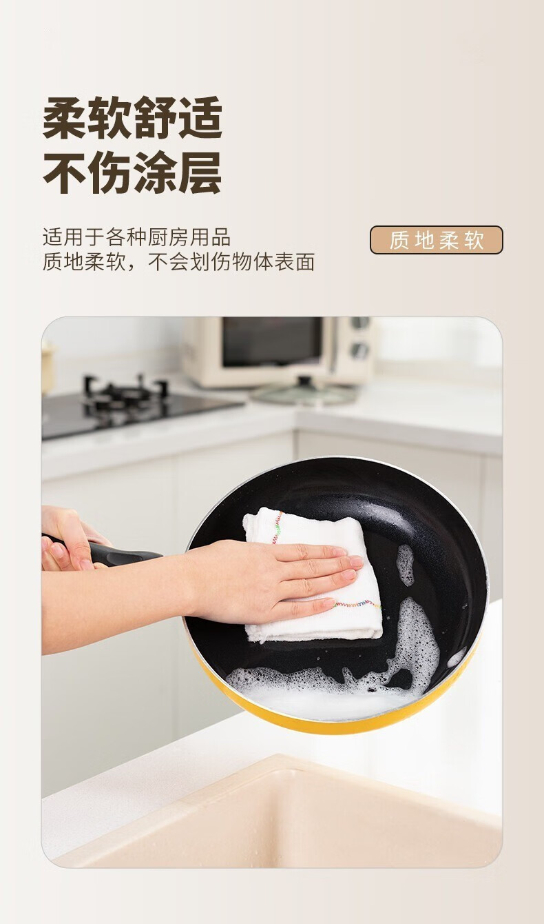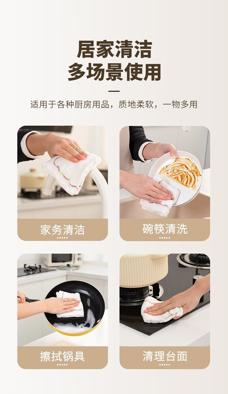 Kitchen oleophobic rag, dishwashing cloth, pure cotton yarn, water-absorbent, non-stick oil, thickened scouring pad, cleaning dish towel, 8-layer thickened 5-pack