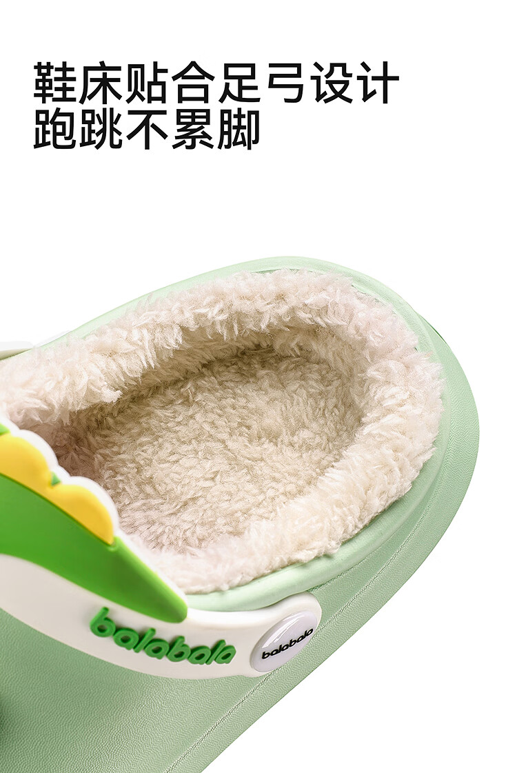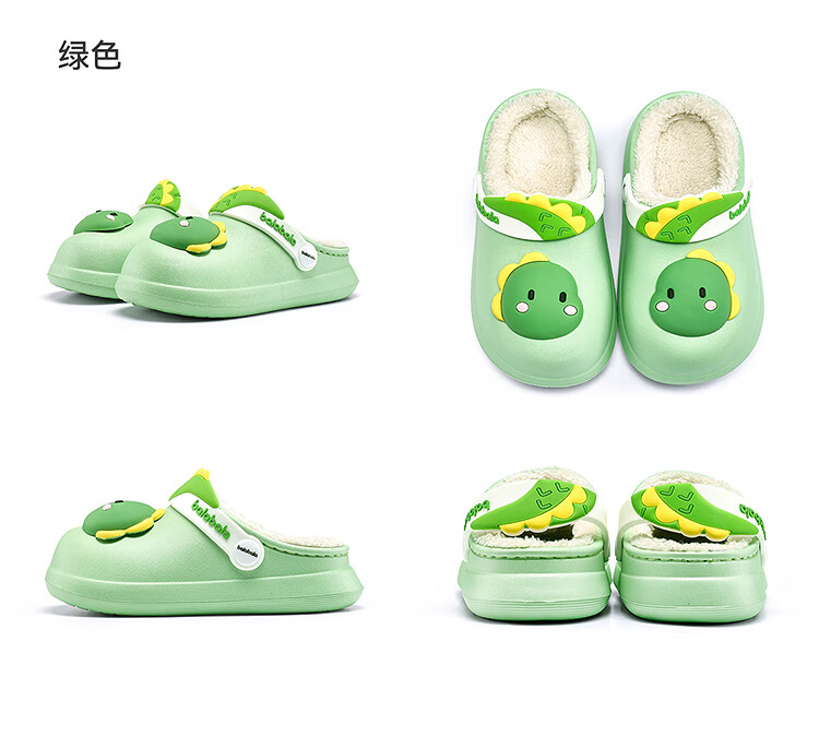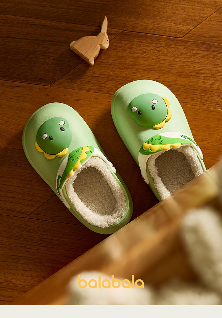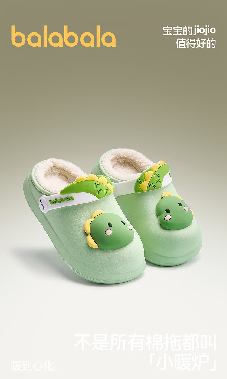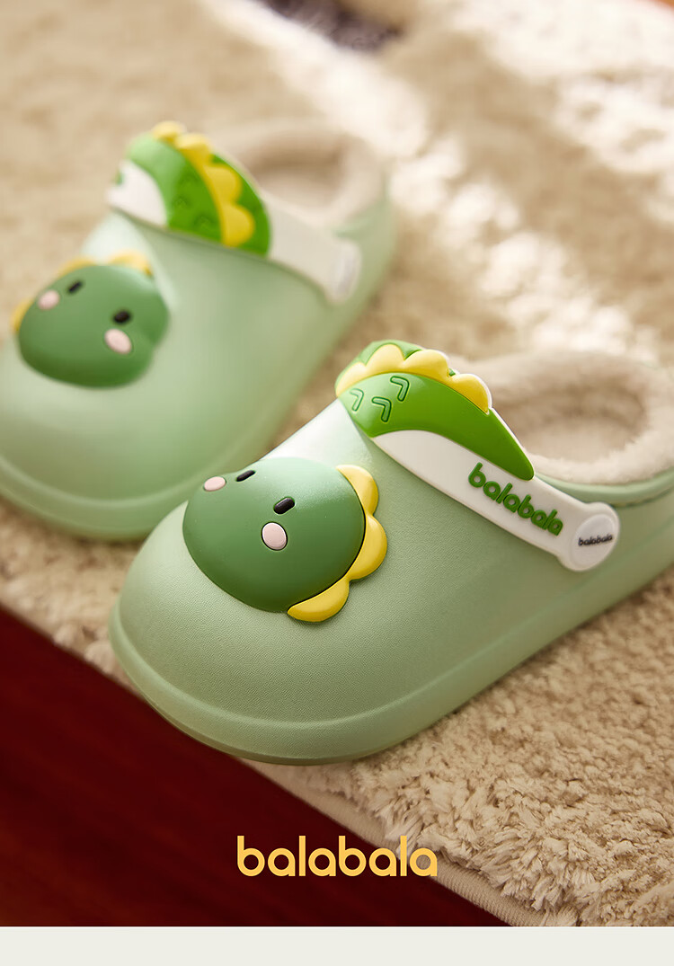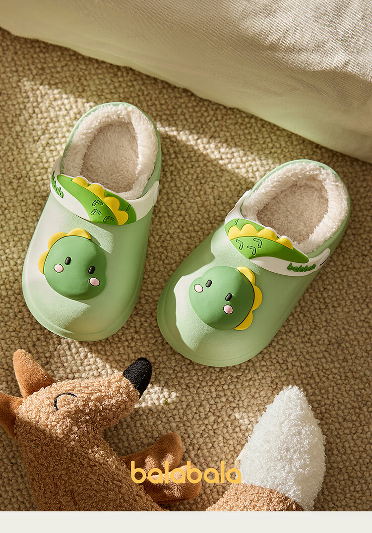 Balabala children's shoes children's slippers plus velvet indoor home shoes boys and girls animal shoes autumn and winter green tone 00344 24 (inner length 16cm recommended foot length 15cm)