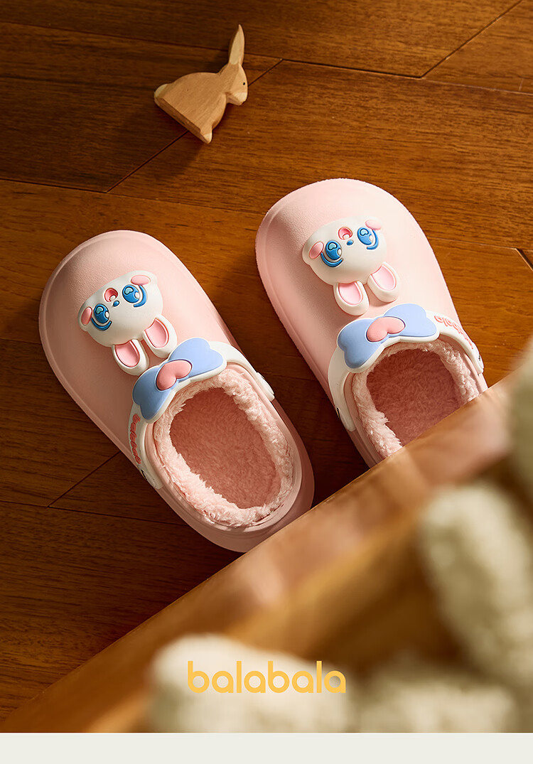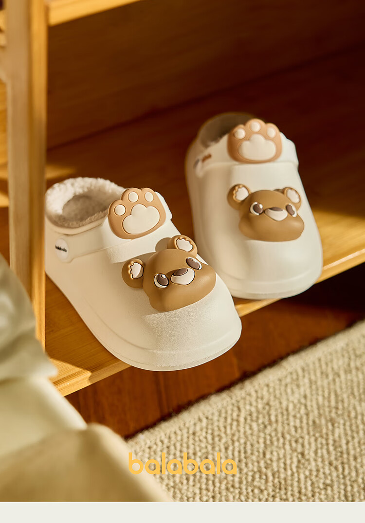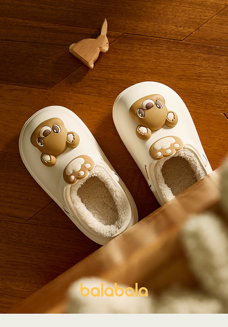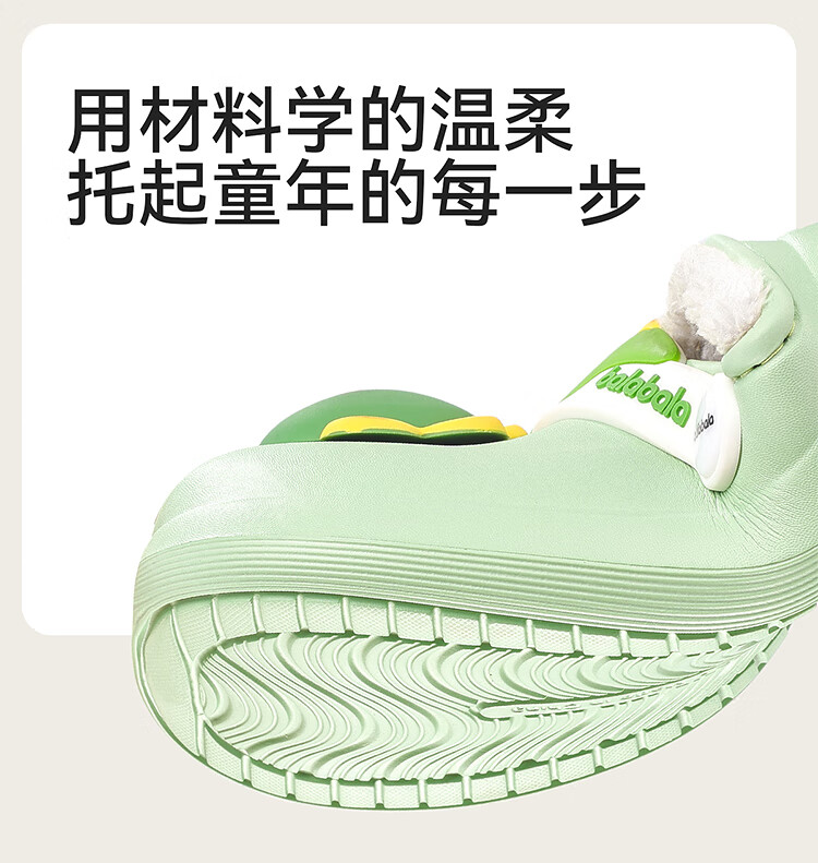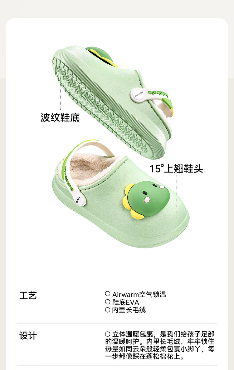 Balabala children's shoes children's slippers plus velvet indoor home shoes boys and girls animal shoes autumn and winter green tone 00344 24 (inner length 16cm recommended foot length 15cm)