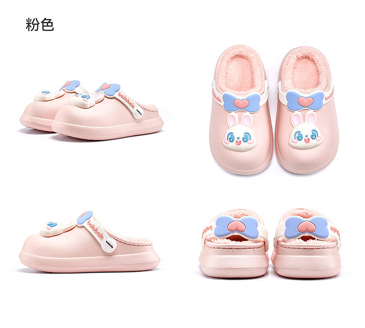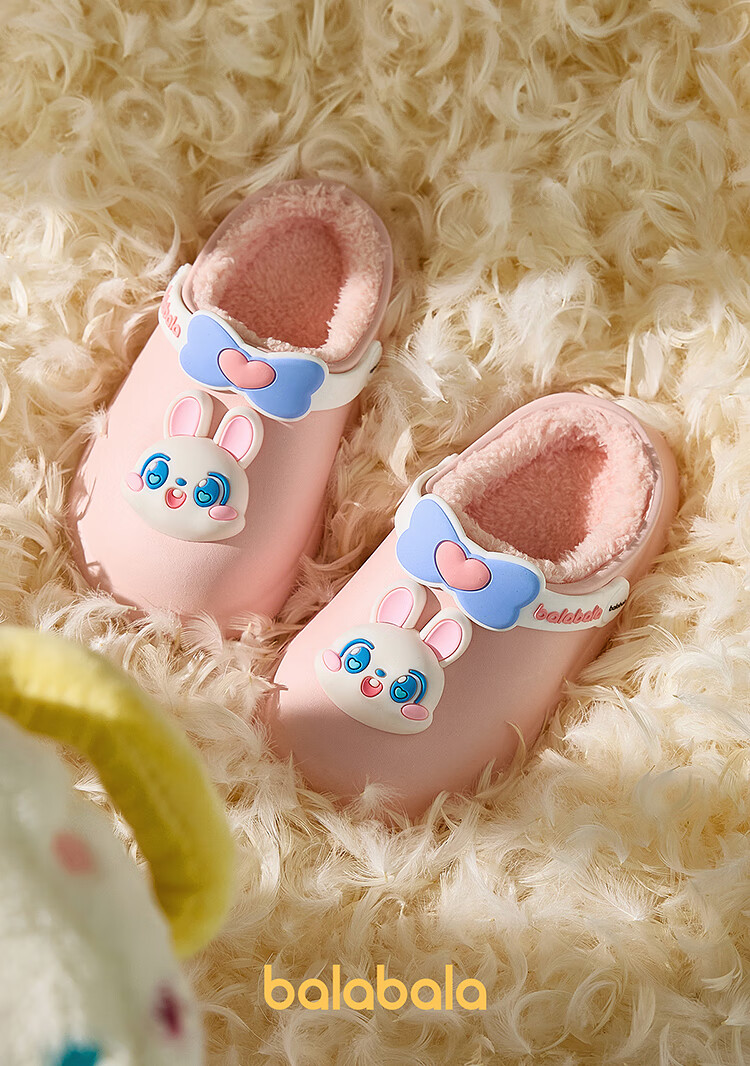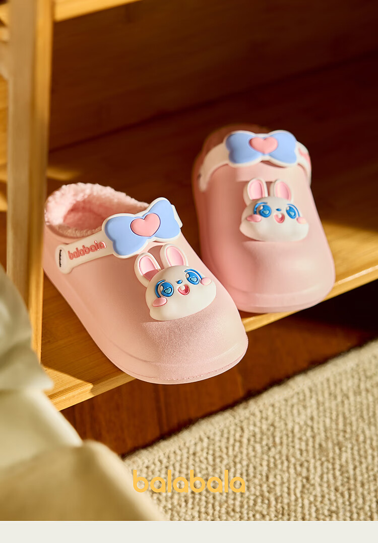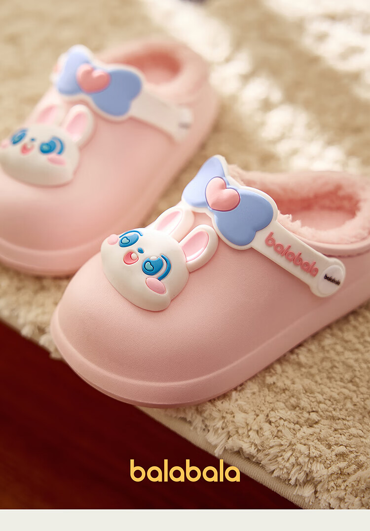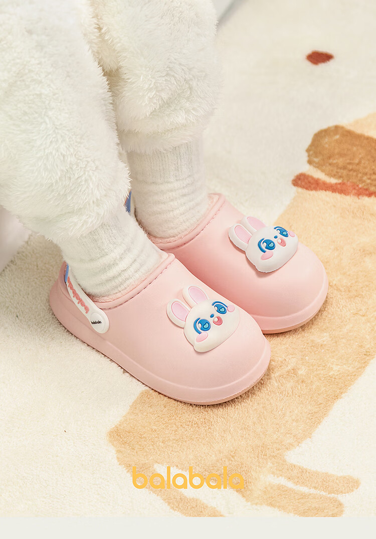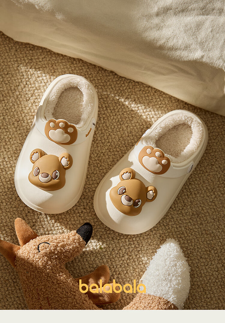 Balabala children's shoes children's slippers plus velvet indoor home shoes boys and girls animal shoes autumn and winter green tone 00344 24 (inner length 16cm recommended foot length 15cm)