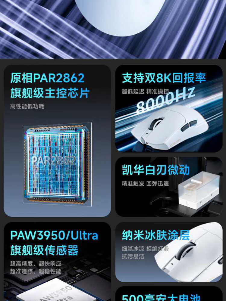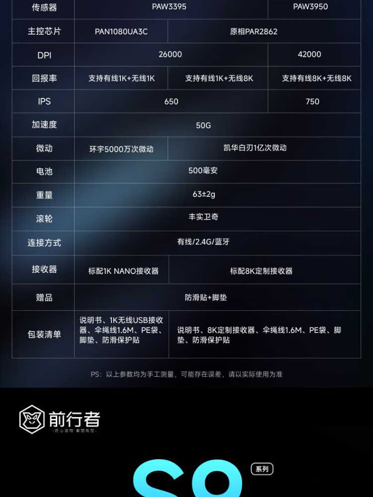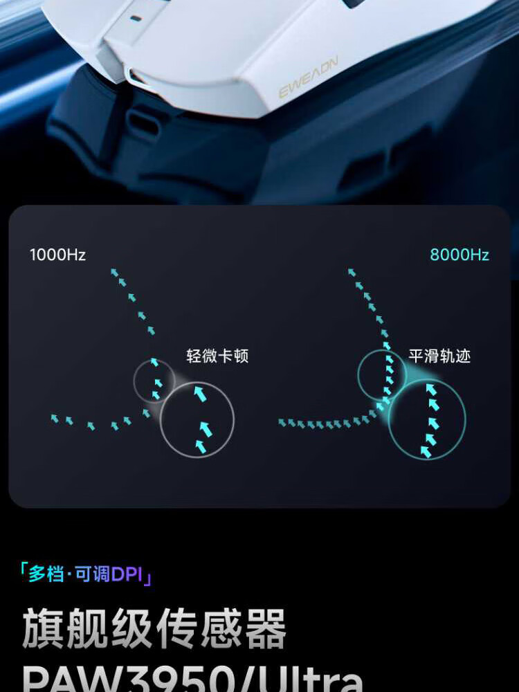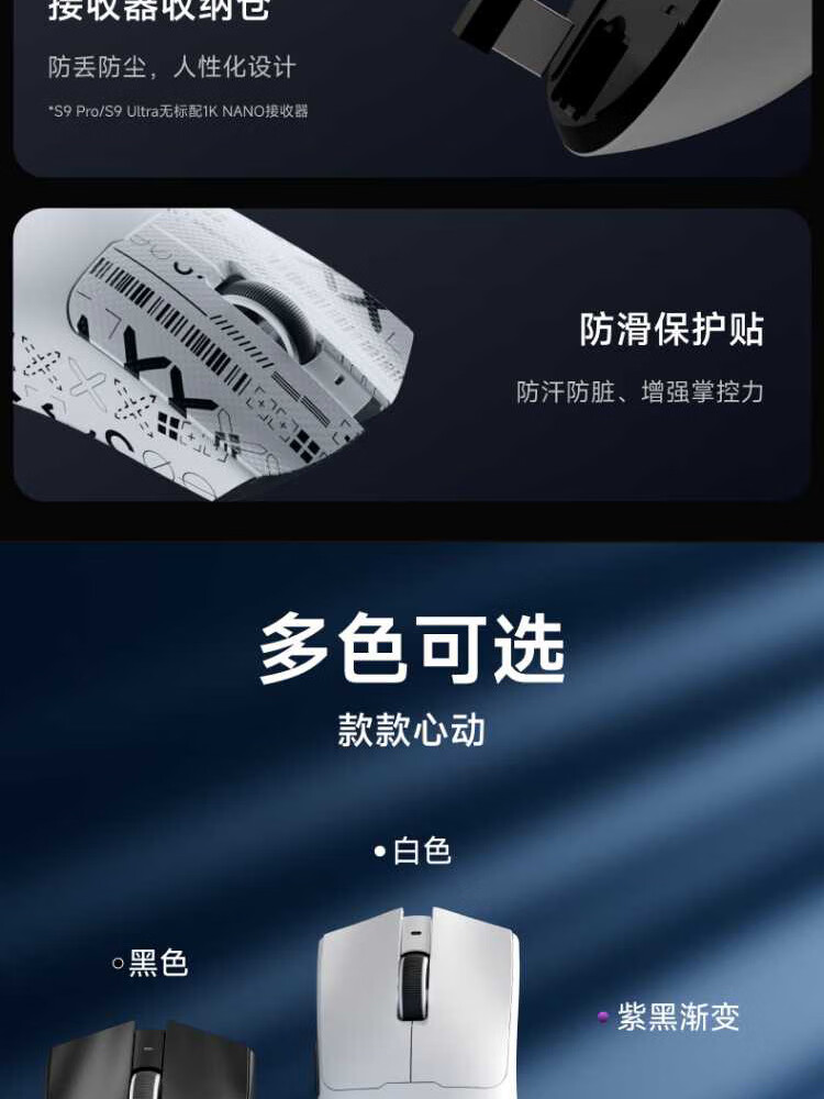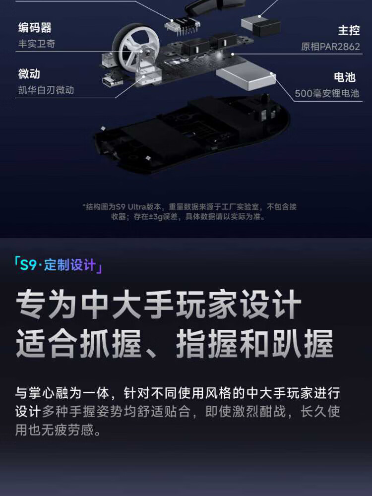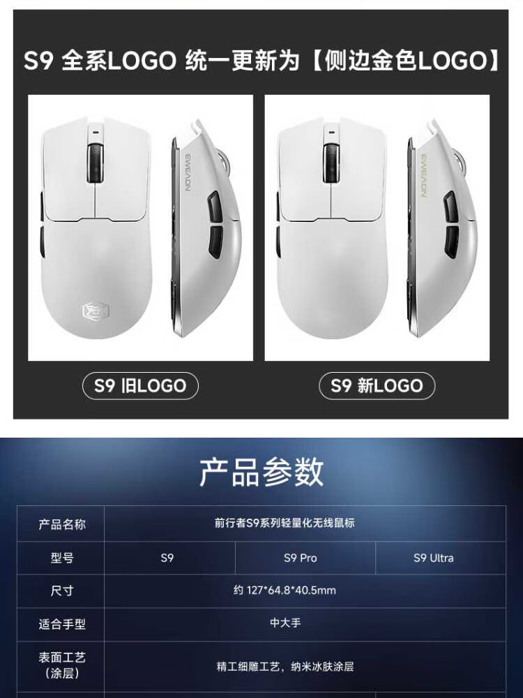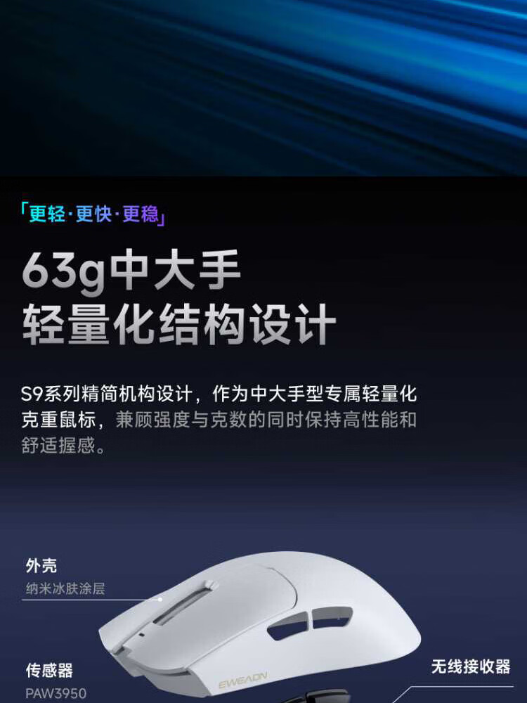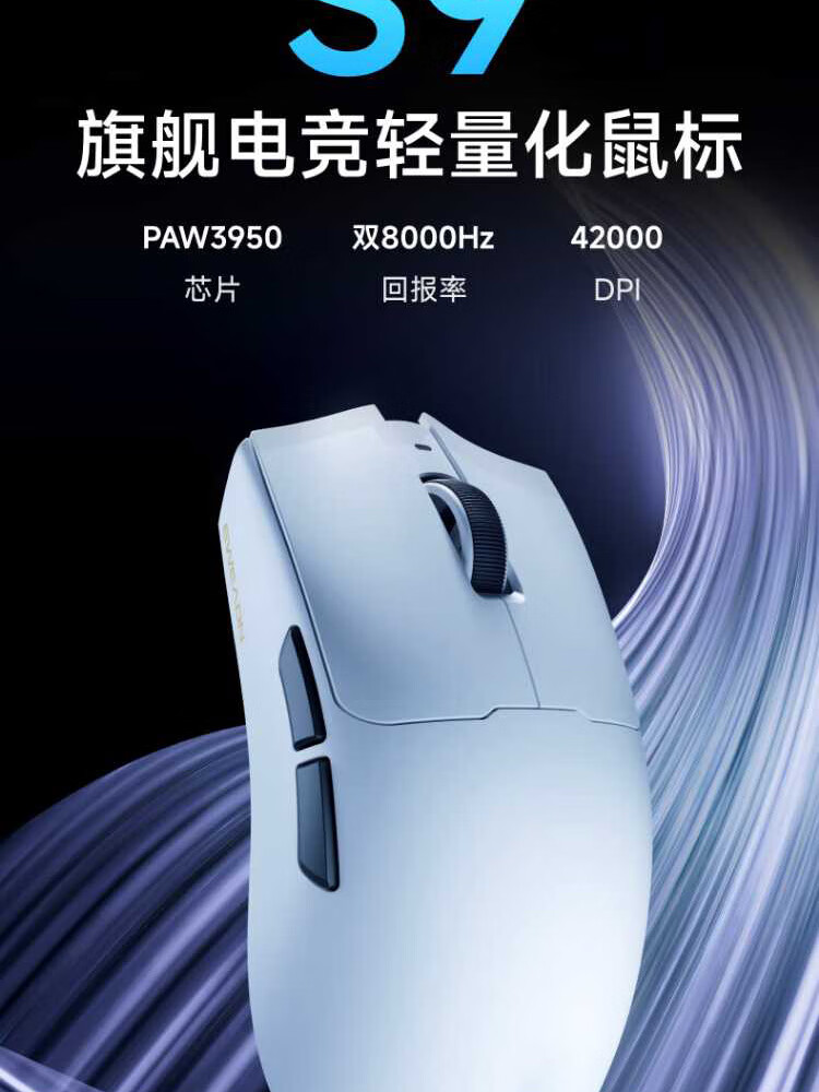 Forerunner (EWEADN) S9Pro/Ultra wireless Bluetooth wired three-mode mouse rechargeable 26000DPI gaming mouse lightweight e-sports mouse desktop computer notebook tablet universal S9Pro+ silver-three-mode PAW3395