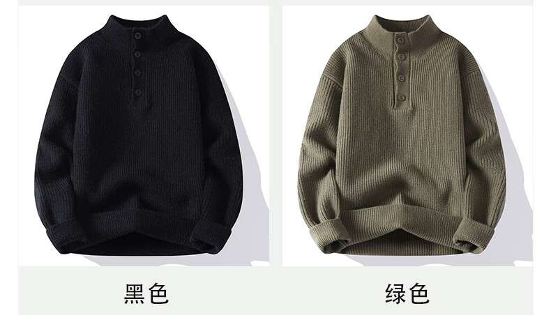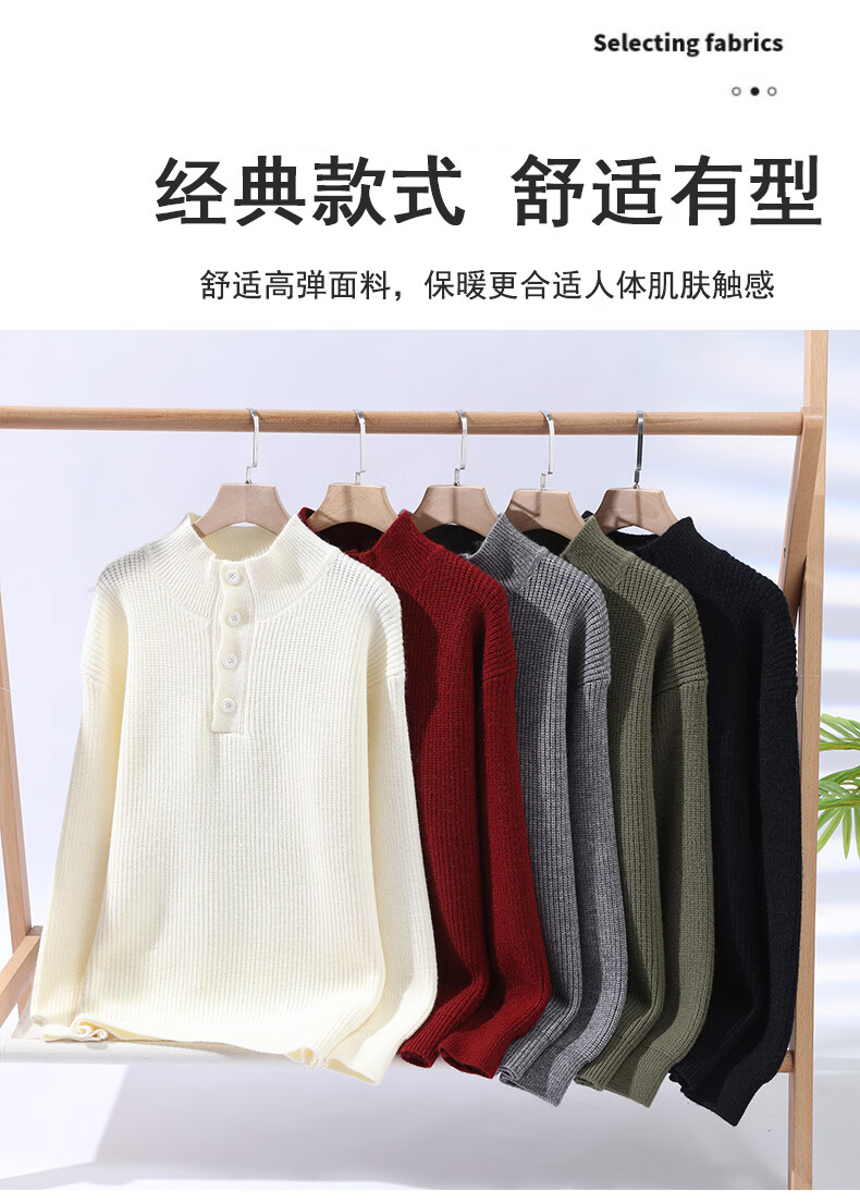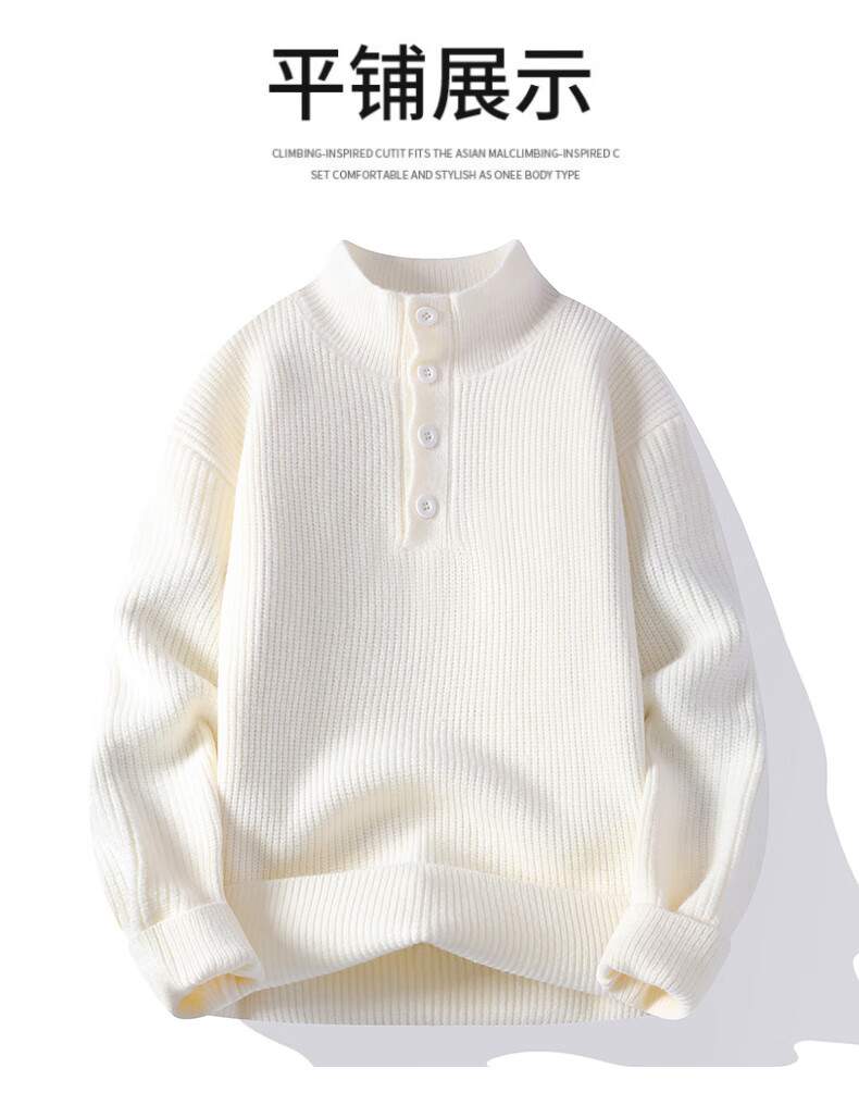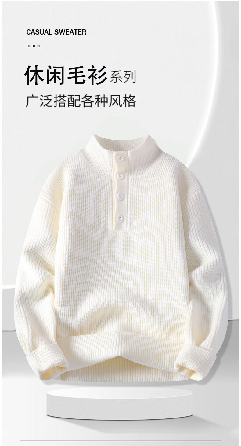 Mr. Jones Button Henry Collar Sweater Men's Loose 2025 New Autumn and Winter Thickened Warm Tops Men's Bottoming Sweater WE25661 Off-White M Approximately 95-115 Jin Jin equals 0.5 kg Can be worn