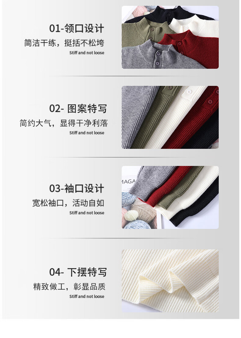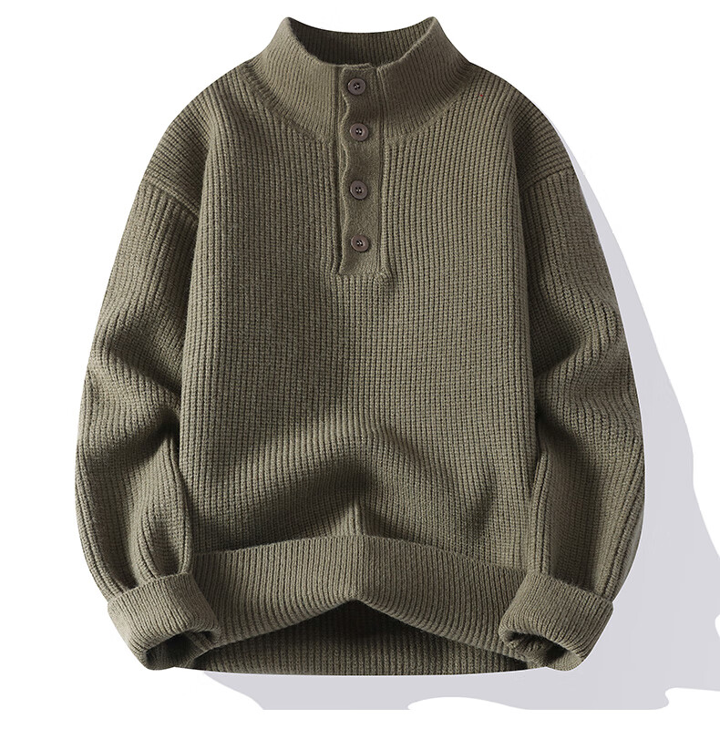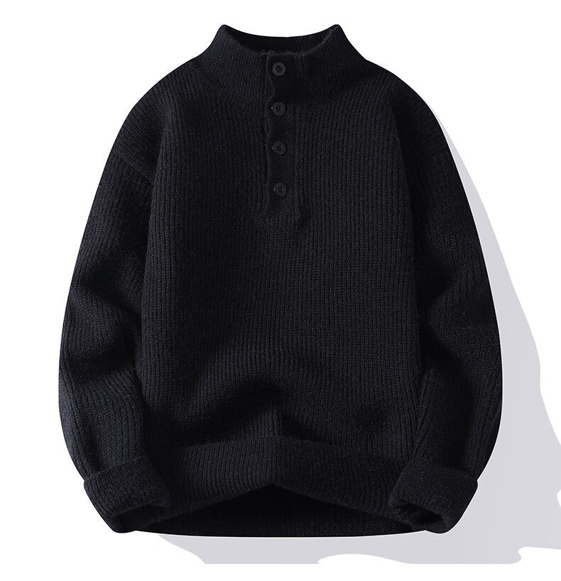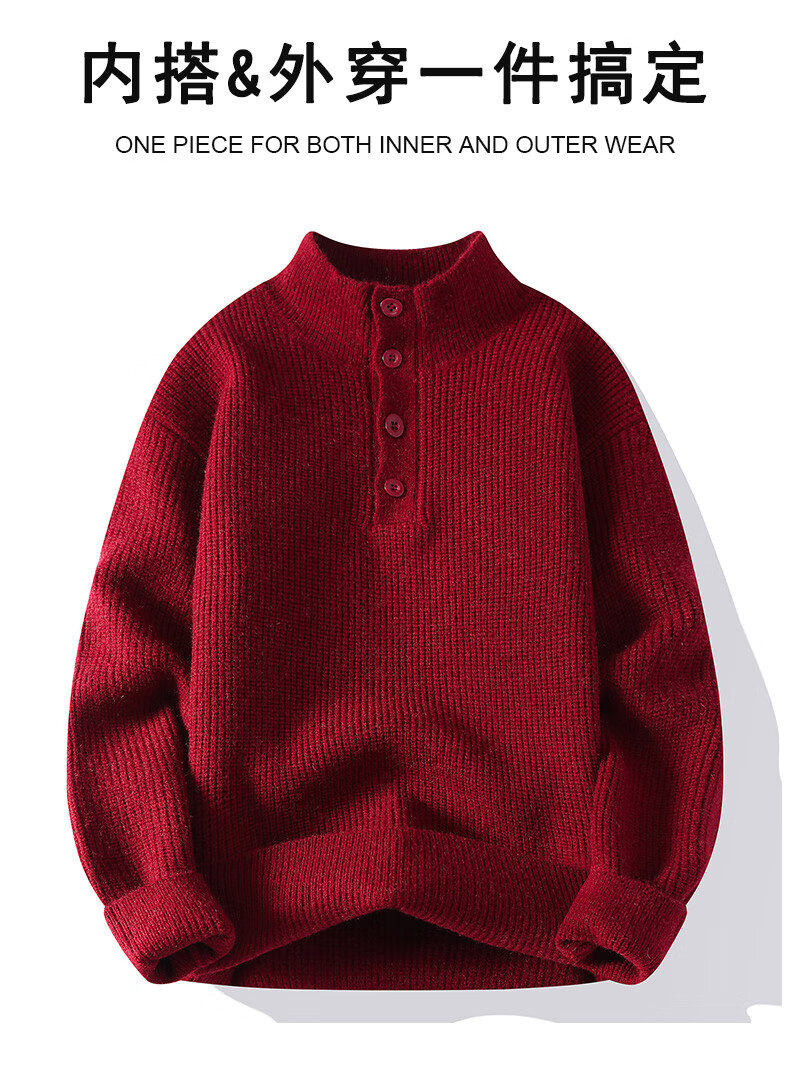 Mr. Jones Button Henry Collar Sweater Men's Loose 2025 New Autumn and Winter Thickened Warm Tops Men's Bottoming Sweater WE25661 Off-White M Approximately 95-115 Jin Jin equals 0.5 kg Can be worn