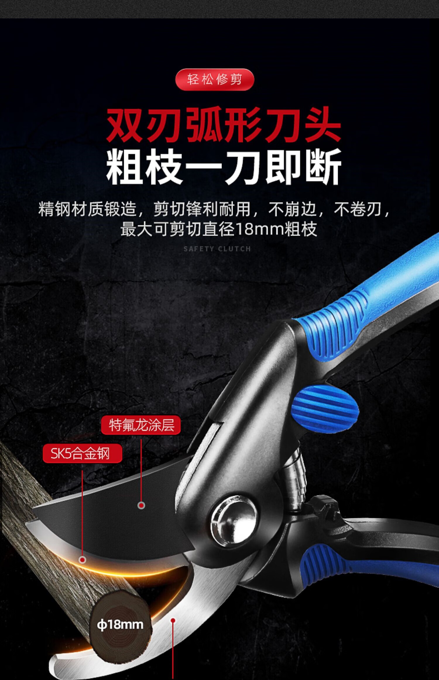 Dongcheng pruning scissors, garden flower pruning branch scissors, fruit tree scissors, thick flower scissors, gardening scissors tools, SK5 Teflon blade 8-inch pruning shears + hand saw